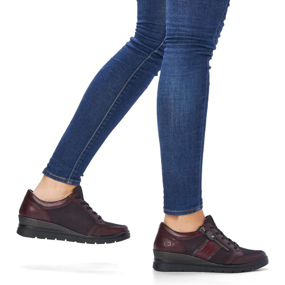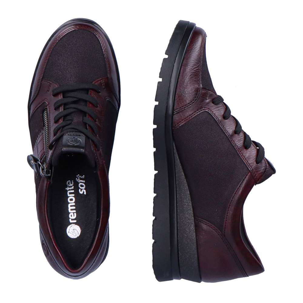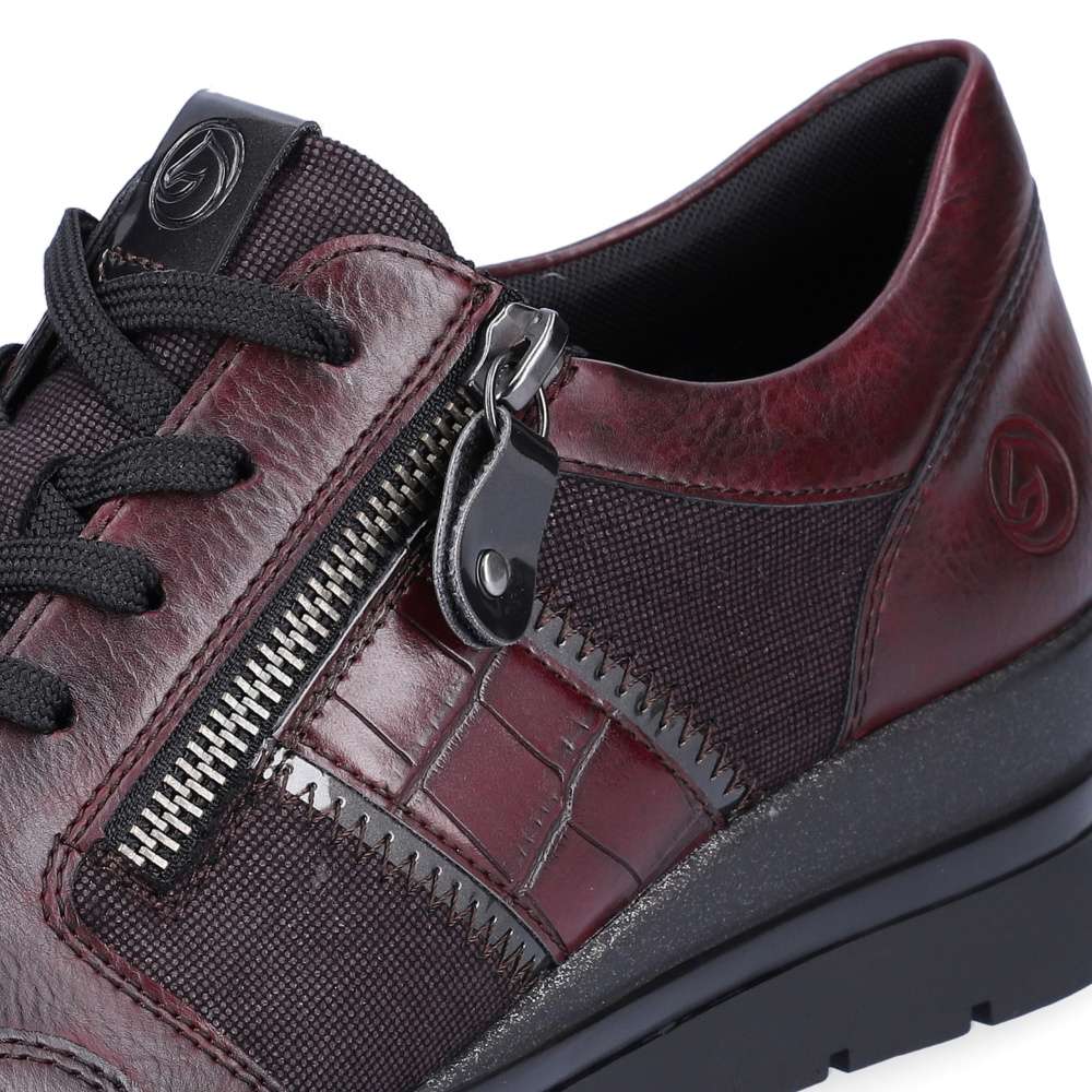 Obuv REMONTE je vyšší řadou značky RIEKER, obuv se vyznačuje kvalitou použitých materiálů. Tato dámská teniska Vás bude bavit po celý rok. Kombinovaný svršek je ideální k chůzi po městě i na procházky. Šněrování na klasické tkaničky je ozdobeno kovovým zipem, decentní zvířecí vzor s prošitím dodají botě elegantní vzhled a vyšší podrážka připomínající platformu vypadá na noze velmi efektně. Boty z řady Remonte Vám zajistí maximální komfort a pohodlí při celodenním nošení.
