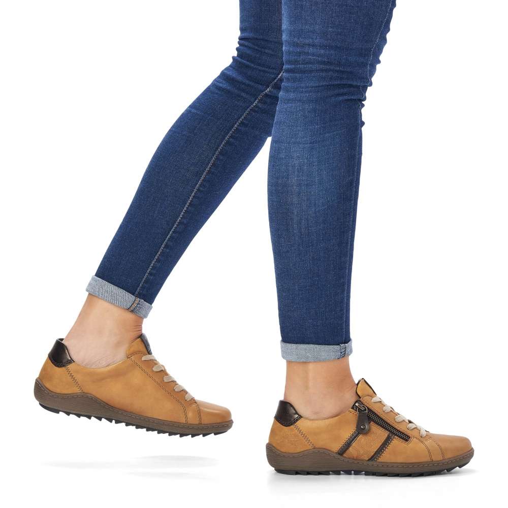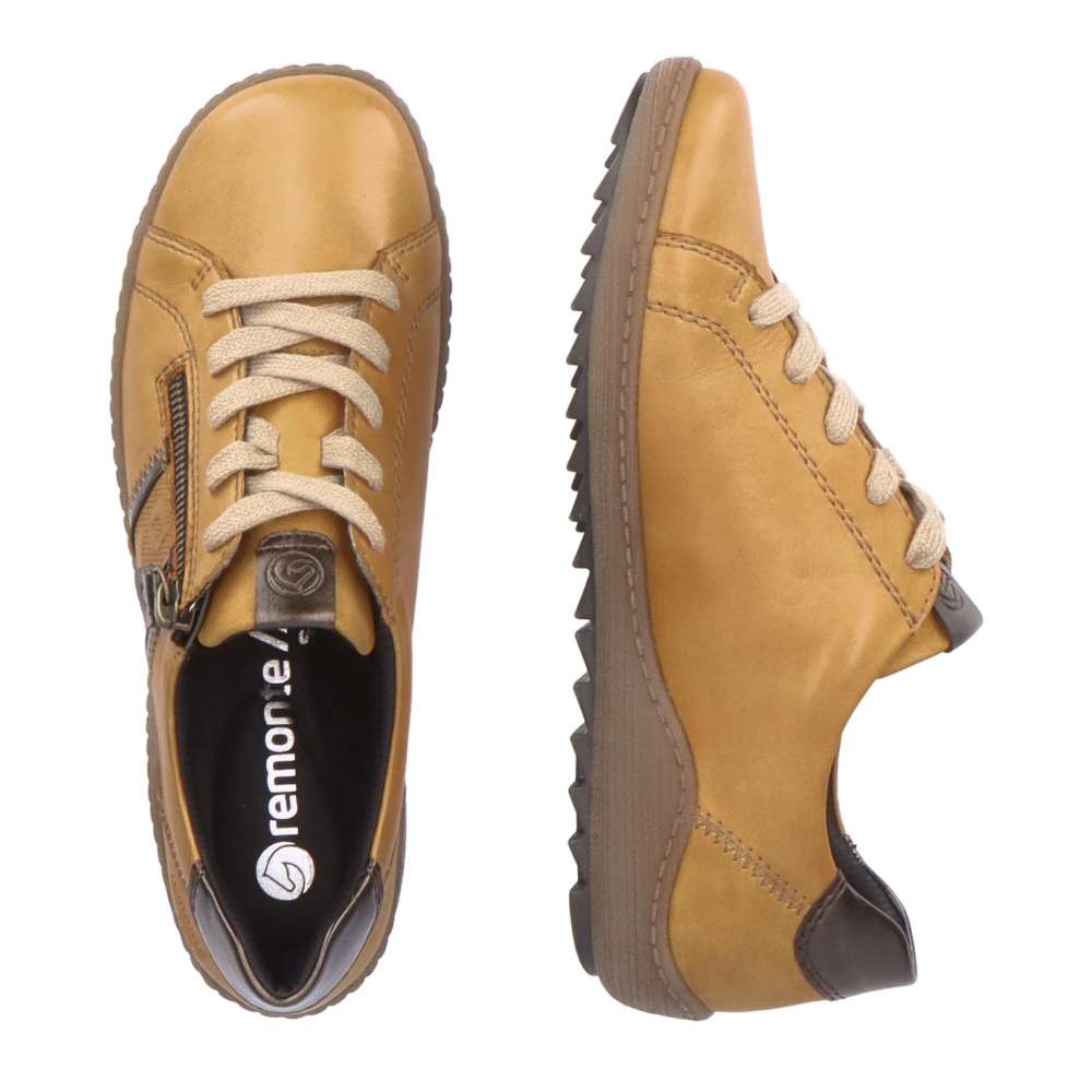 Obuv REMONTE je vyšší řadou značky RIEKER. Obuv se vyznačuje kvalitou použitých materiálů. Díky těmto koženým botkám se budete cítit velice komfortně. Šněrováním si nohu v botě utáhnete podle potřeby tak, aby se Vám v ní dobře chodilo. Na boční straně je funkční zip, díky kterému se Vám do boty bude snadněji dostávat. Odhoďte veškeré obavy z toho, co si budou říkat ostatní a vezměte si k botám cokoliv, na co máte právě náladu.