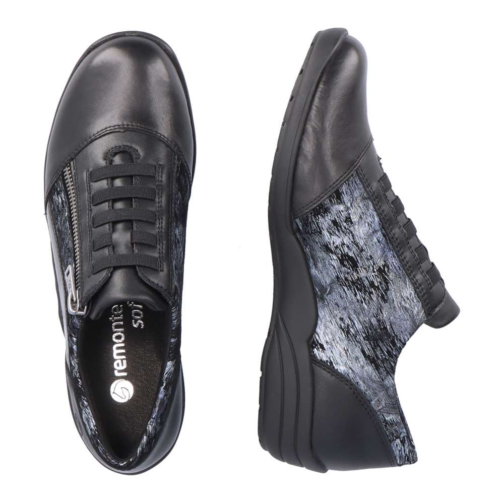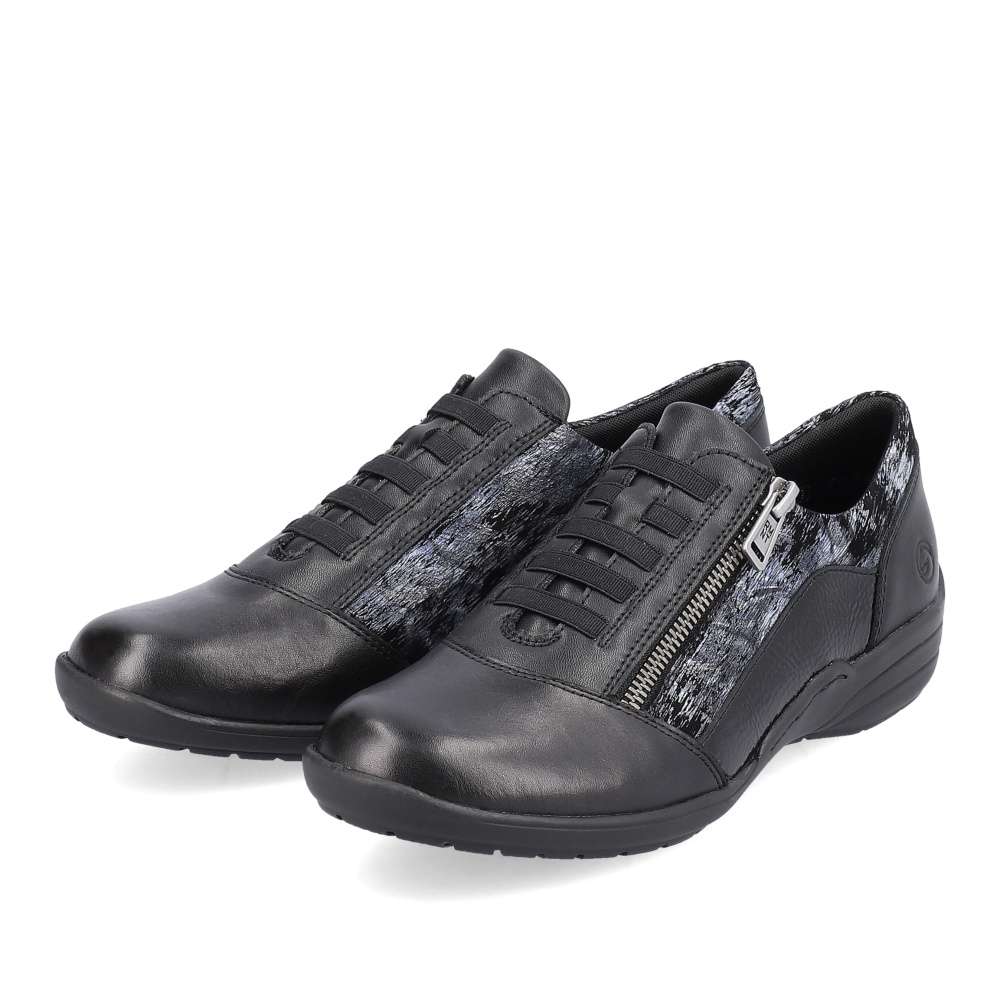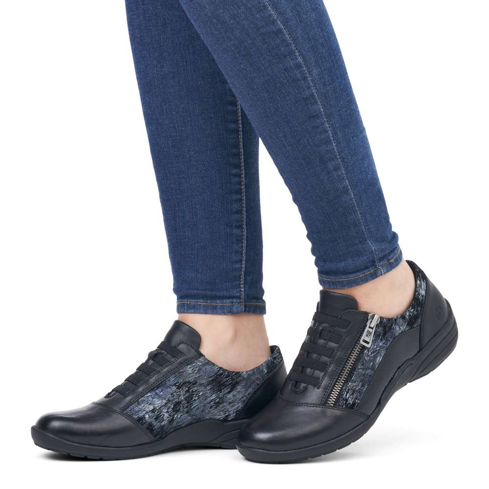 Obuv REMONTE – jedná se o vyšší řadu značky RIEKER, tato obuv se vyznačuje vynikající kombinací svrchních materiálů. Svršek tohoto velmi pohodlného modelu je designově poskládán z různě vzorovaných částí, které jsou propojeny jemným šitím. Snadné nazouvání Vám zajistí funkční postranní zip a šněrování pružnou gumičkou má zde spíše dekorativní účel. Měkká vyjímatelná stélka a vyšší podešev Vám zajistí pohodlný a jistý krok. Celkové propracování boty Vám dodá pocit lehkosti a budete se cítit skvěle na každém kroku.
