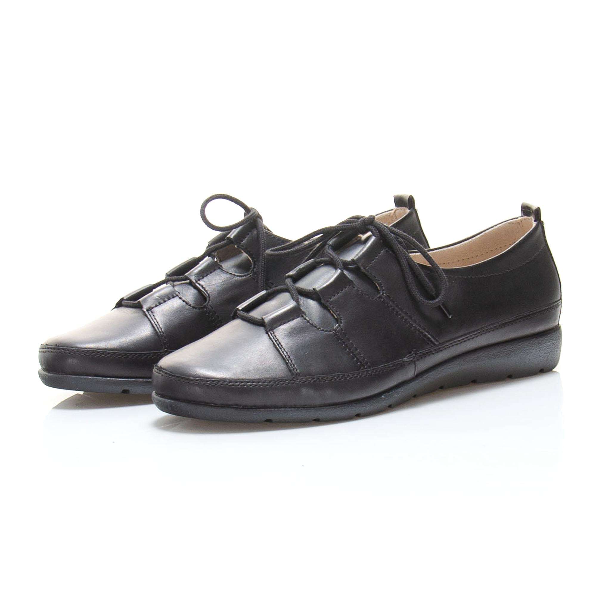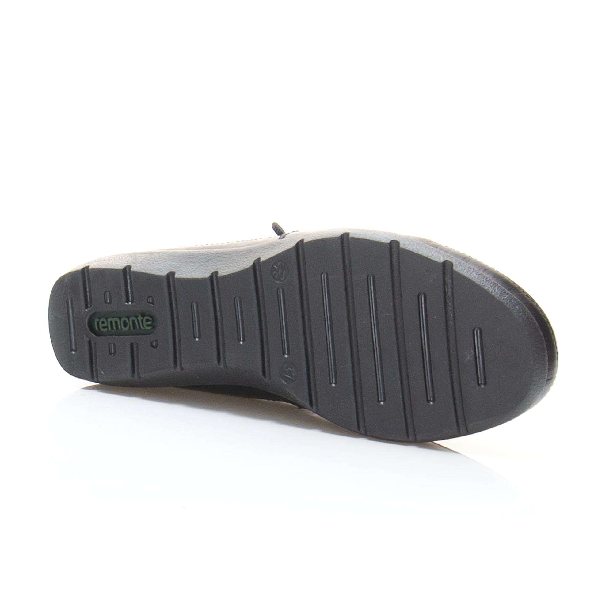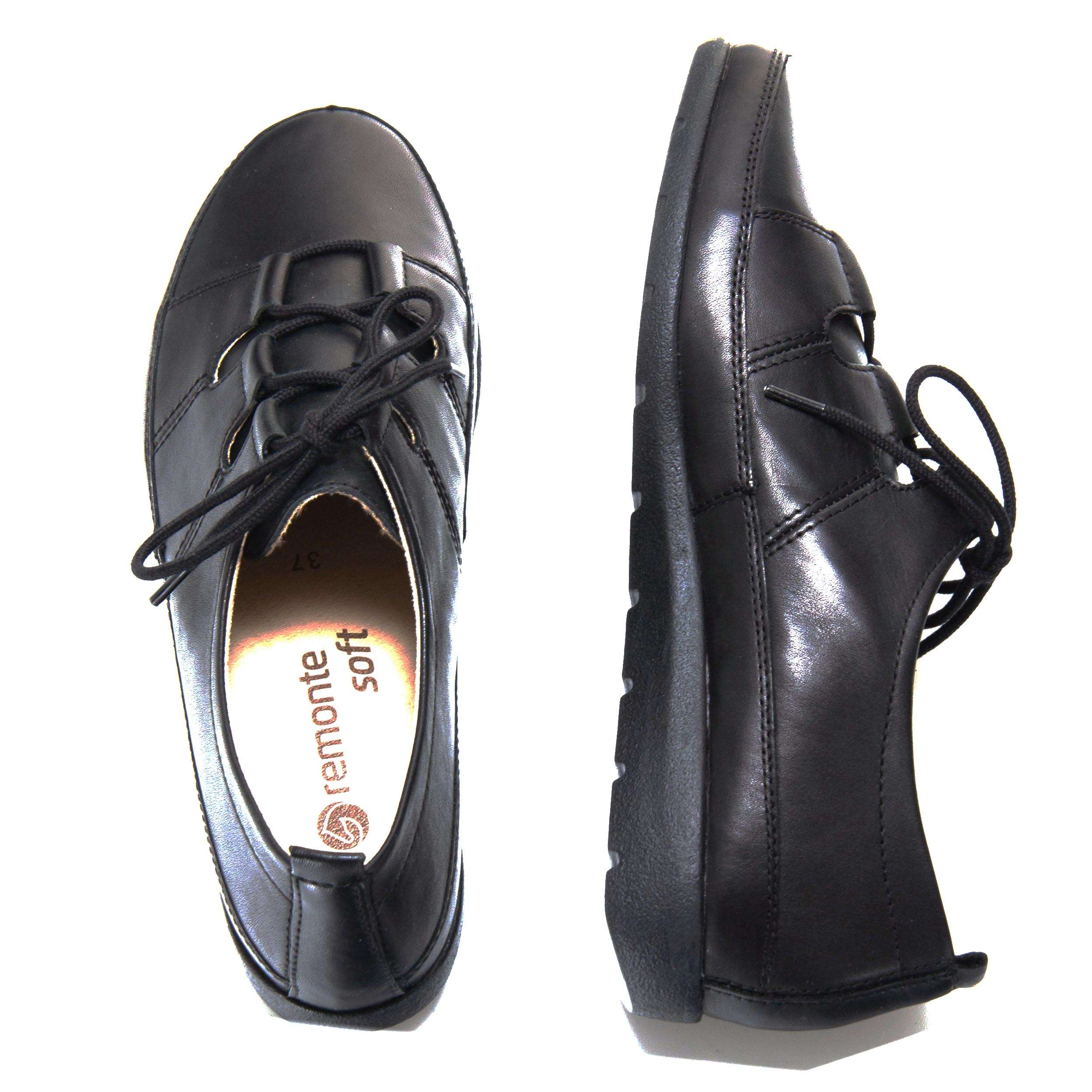 Kožené černé polobotky s důmyslně propracovaným šněrováním si nejen ulehčíte nazouvání, ale má i zdobnou funkci. Kožená stélka s technologií RemonteSoft je díky paměťové pěně měkká a dokonale se přizpůsobí noze při nášlapu na ní. Můžete si je obout do práce nebo na procházku.