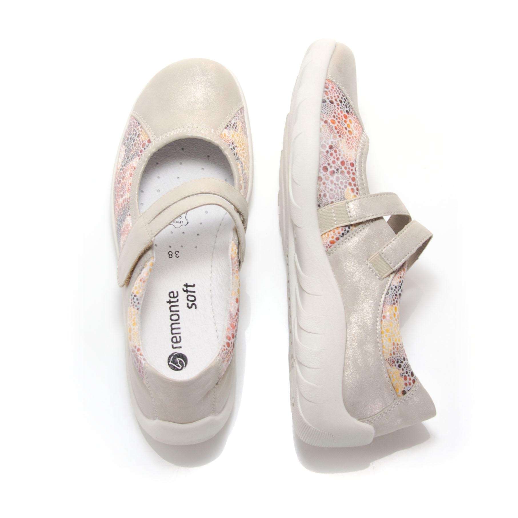 Dámská polobotka šedé barvy zdobena zlatými odlesky, značky REMONTE (jedná se o vyšší řadu značky RIEKER).