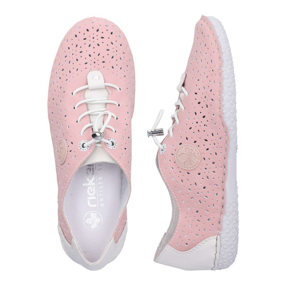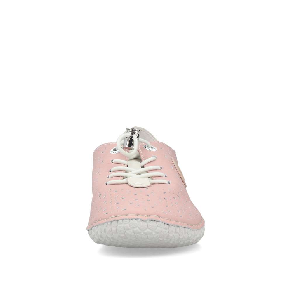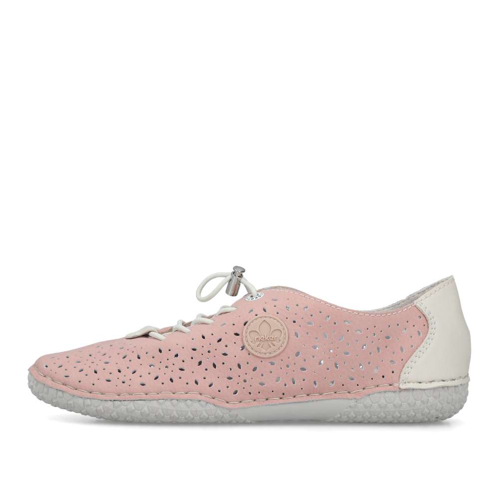 Dodejte svému kroku lehkost a přirozený pohyb s těmito dámskými botami v jemném světle růžovém odstínu. Prodyšný perforovaný svršek zajišťuje skvělou ventilaci i v teplých dnech, zatímco měkká a flexibilní podrážka podporuje přirozené odvíjení chodidla. Praktické elastické šněrování s rychloupínáním umožňuje pohodlné nazutí a kontrastní bílý detail na patě dodává botám svěží, sportovní vzhled. Ideální volba pro každodenní nošení, kdy chcete spojit komfort, volnost pohybu a moderní styl.