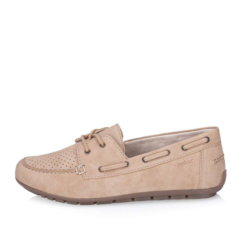 Lehká a stylová dámská obuv RIEKER představuje ideální spojení pohodlí a nadčasového designu, který se snadno kombinuje s každodenním outfitem. Svršek z měkkého materiálu je doplněn jemnou perforací a šňůrka dodává botám dynamický vzhled, přičemž umožňuje snadné přizpůsobení přesně podle vašich potřeb. Maximální pohodlí při každém kroku zajišťuje měkká, vyjímatelná stélka, kterou oceníte zejména při celodenním nošení. Flexibilní podešev se přirozeně přizpůsobuje pohybu chodidla a přispívá k lehkosti při chůzi. Tato obuv je perfektní volbou pro ženy, které hledají praktický, ale zároveň stylový kousek do svého šatníku – ideální pro běžný den ve městě i aktivní chvíle na cestách.