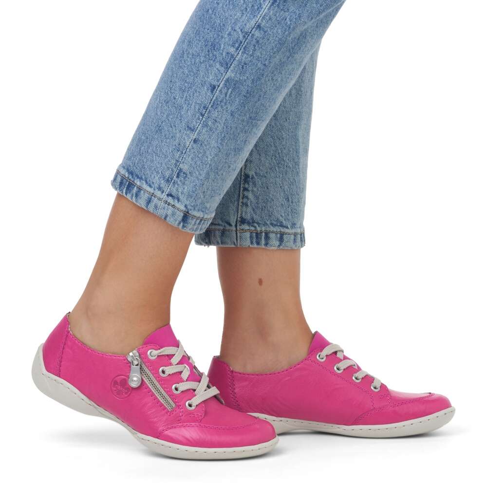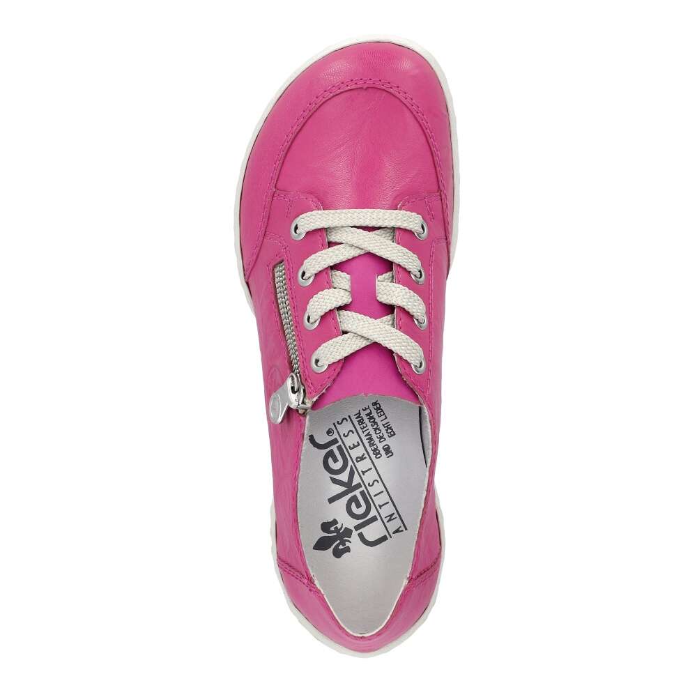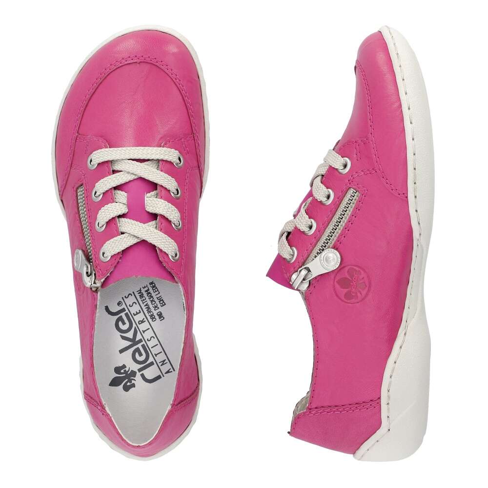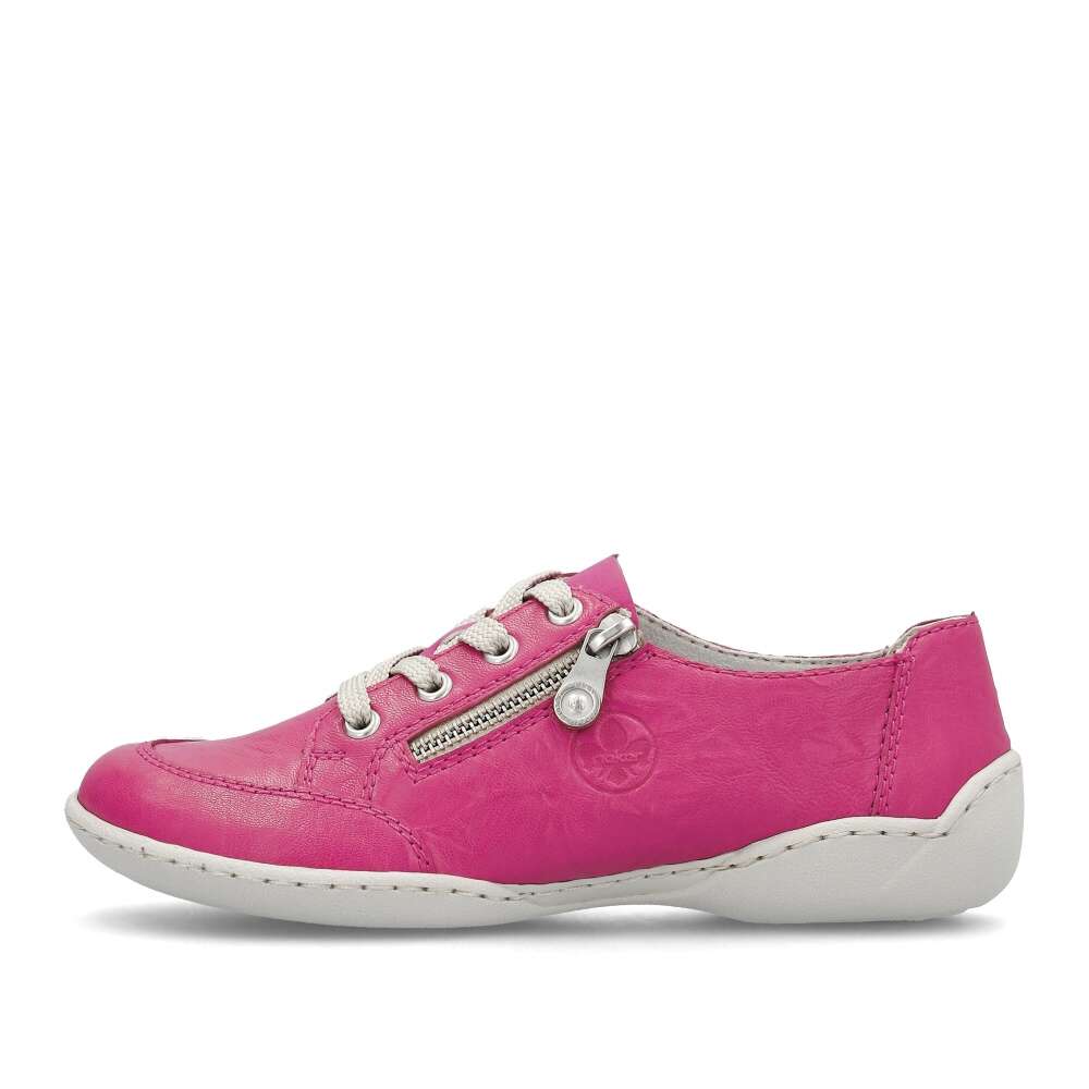 Tyto růžové kožené boty od značky RIEKER se šněrováním a zipem na nártu pro usnadnění obutí představují kombinaci stylu a pohodlí. Měkká stélka a flexibilní podešev zajišťují pohodlí a komfort během nošení. Tyto boty jsou nejen módním doplňkem, ale také praktickou obuví pro každodenní nošení. Jsou ideální volbou pro ženy, které mají v oblibě výrazné barvy ve svém šatníku. Technologie: Antistress – podešev je díky této technologii lehká, flexibilní, absorbuje nárazy při došlapu a snadno se přizpůsobí každé noze.