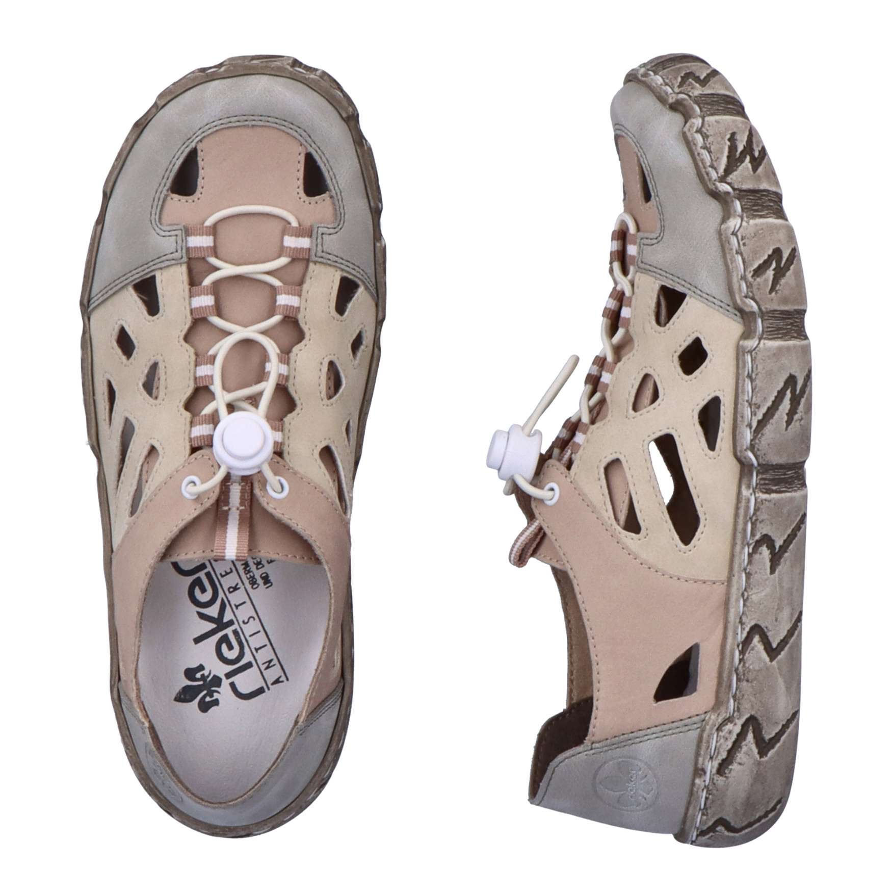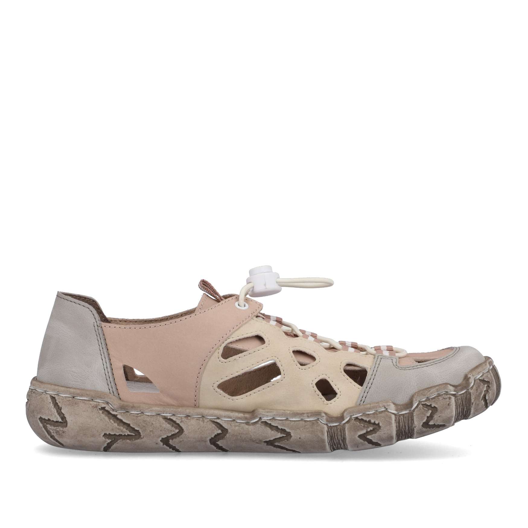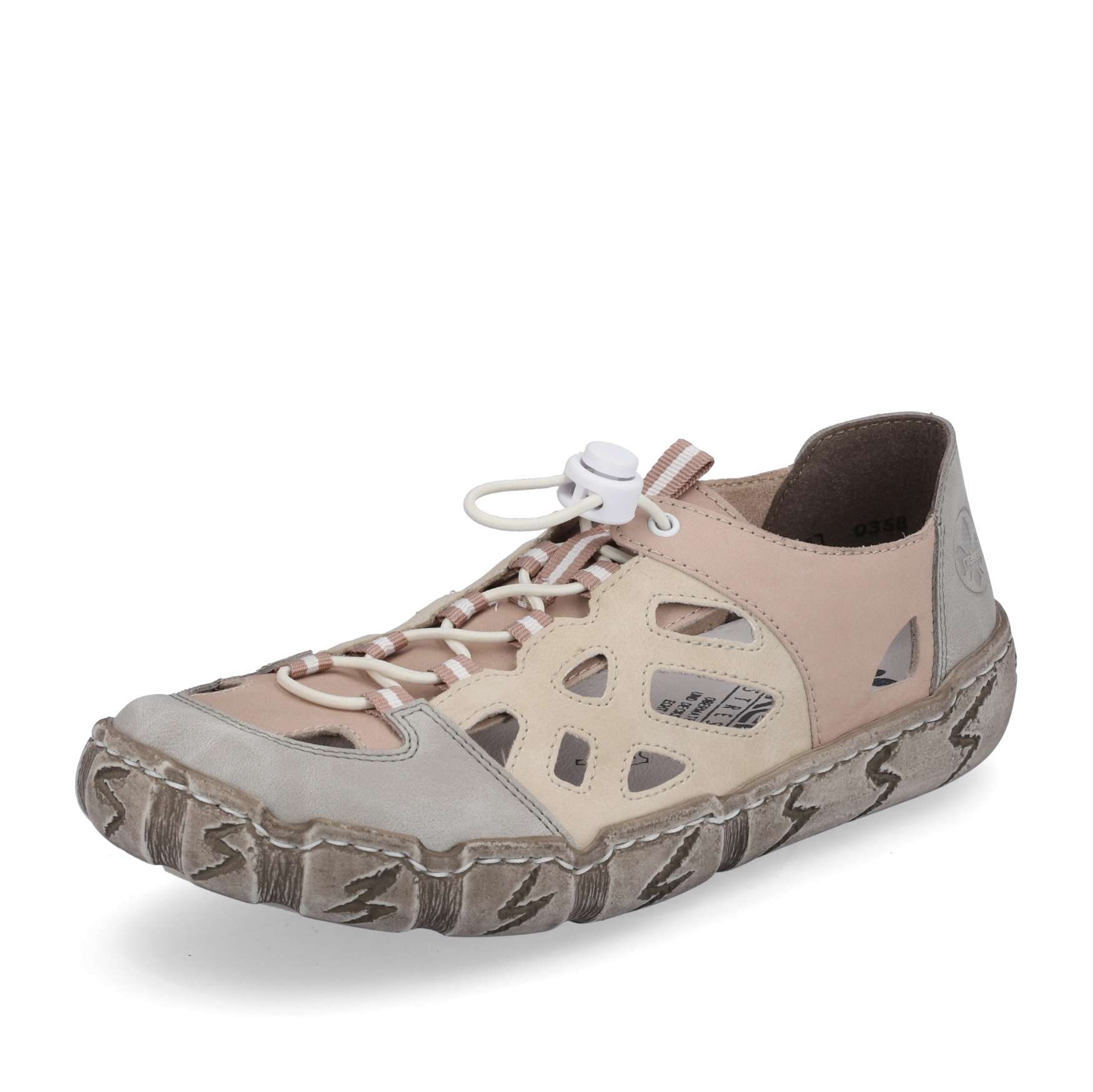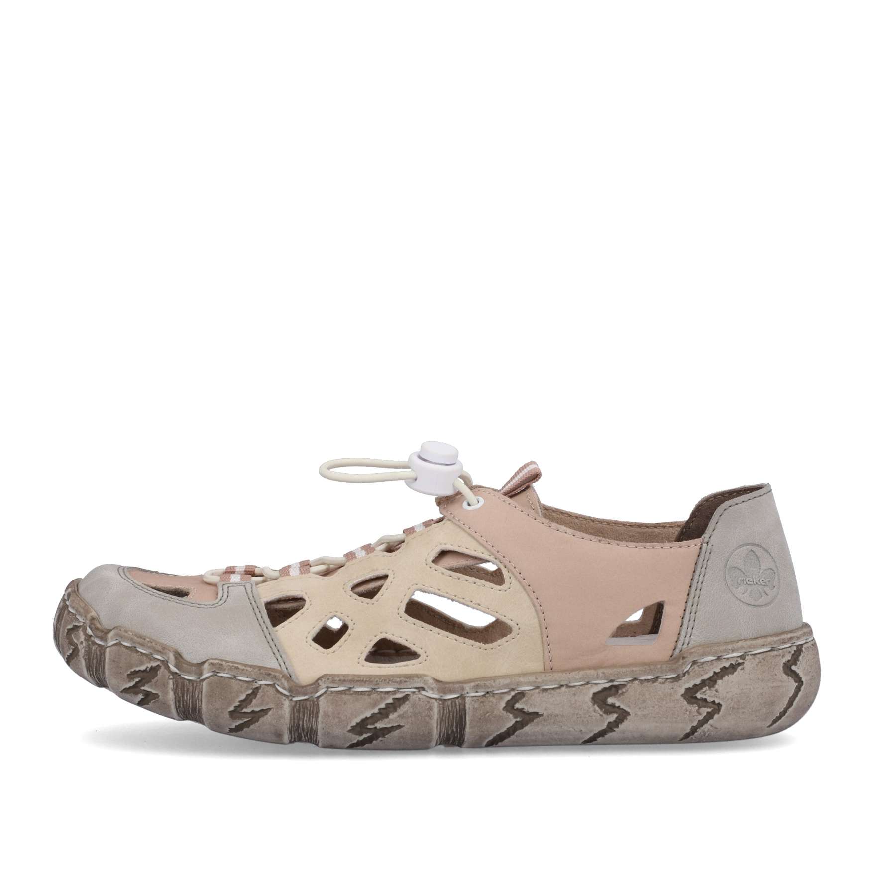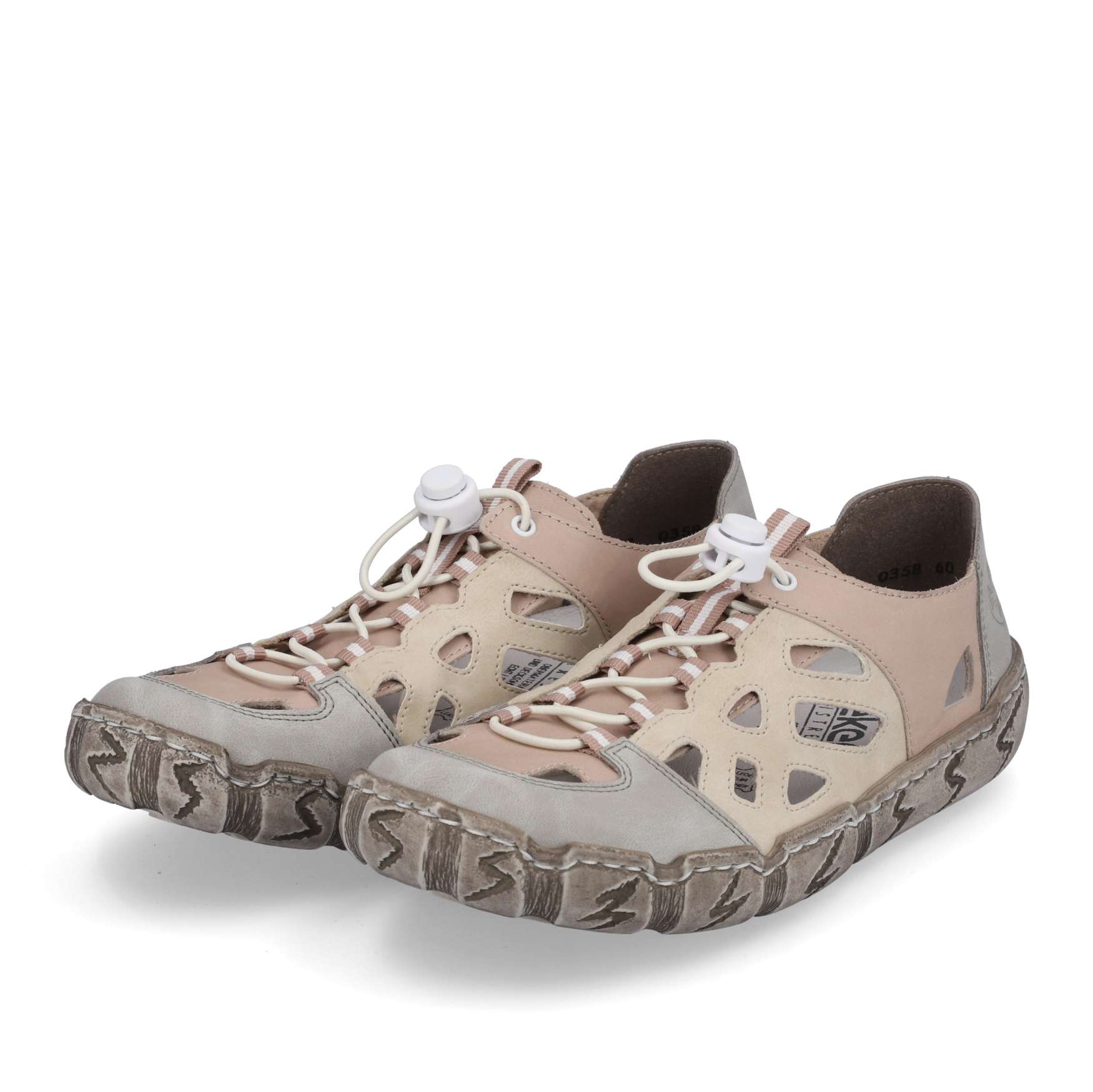 Tyto ležérní boty značky Rieker jsou originální a praktické zároveň. V teplých dnech oceníte perforaci umístěnou po svršku poskládaném z různých pastelových barev. Obutí Vám usnadní šněrování gumičkou. Odolná a lehká podrážka nabízí trvalou pohodu i během dlouhých dní ať už pracovních nebo strávených s rodinou. Technologie: Antistress - podešev je díky této technologii lehká, flexibilní, absorbuje nárazy při došlapu a snadno se přizpůsobí každé noze.