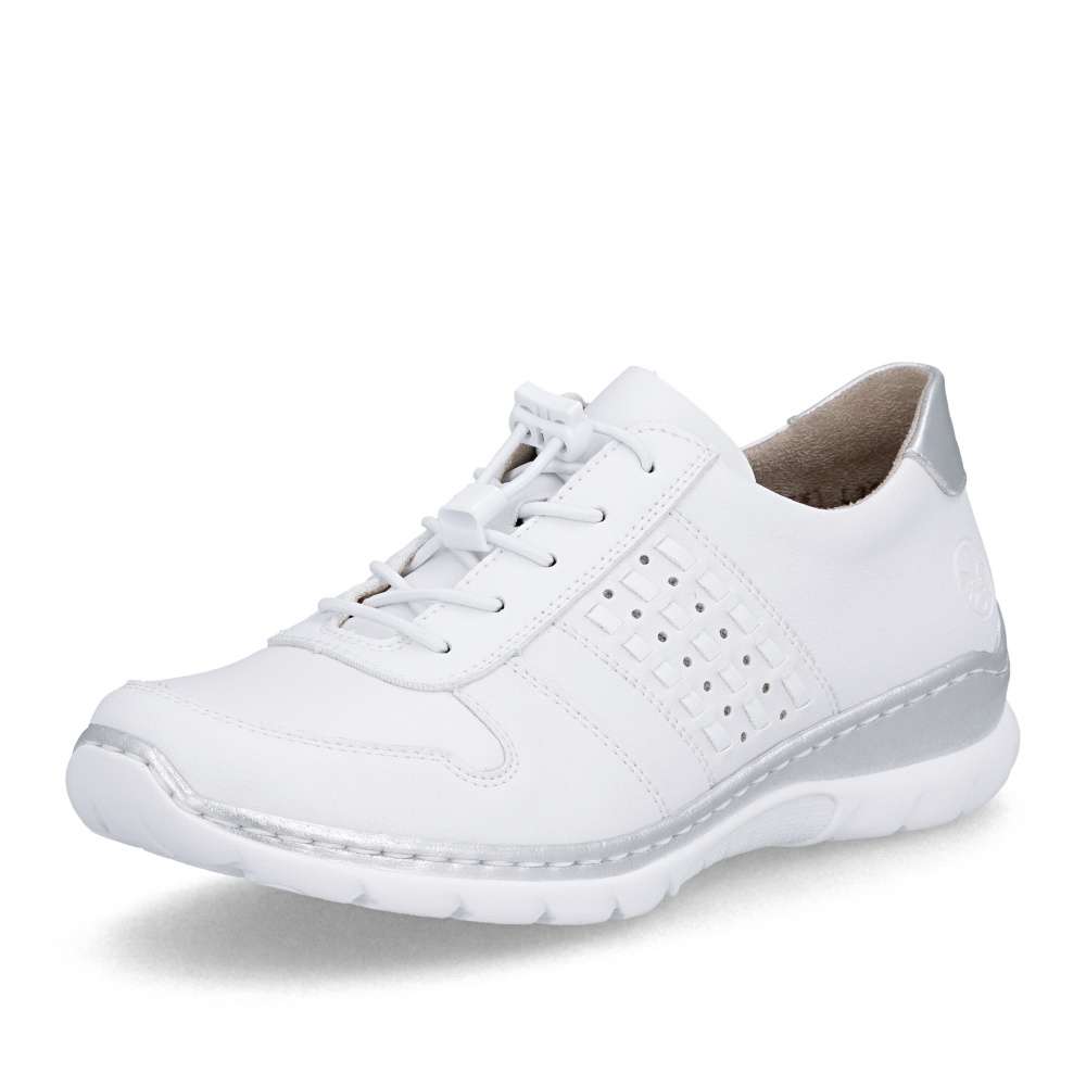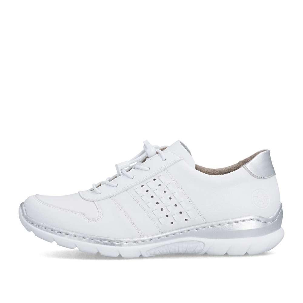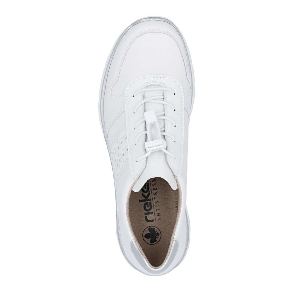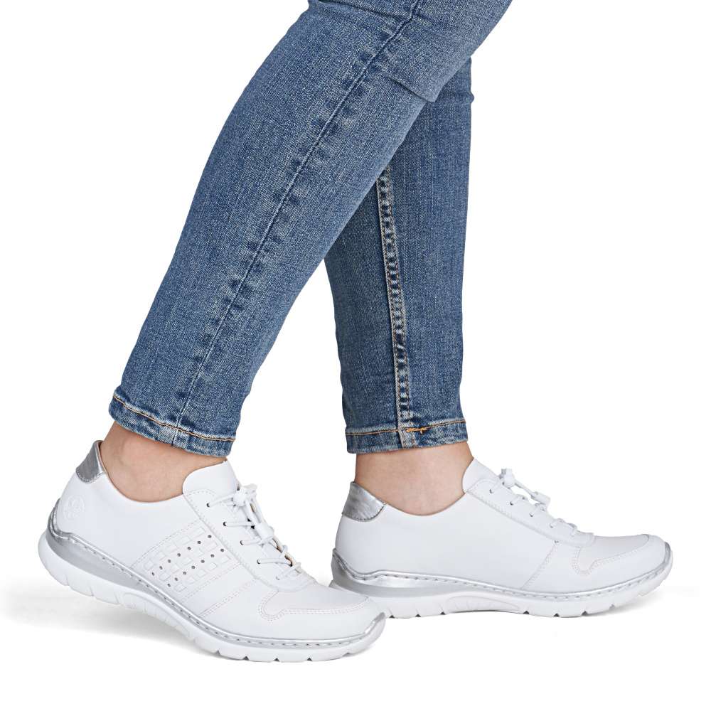 Moderní design a maximální pohodlí se pojí v těchto teniskách značky RIEKER, které jsou jako stvořené pro každodenní nošení. Bílý svršek je oživen výraznou dekorací na vnější straně, metalickými odlesky stříbrné barvy a decentním logem značky, díky čemuž boty působí stylově a zároveň nadčasově. Praktická pružná gumička se stahovacím prvkem umožňuje rychlé obutí a snadné přizpůsobení bot tvaru nohy. Uvnitř se nachází měkká stélka z paměťové pěny, která se postará o pohodlí při každém kroku a poskytne příjemný pocit po celý den. Lehká a flexibilní podešev účinně tlumí nárazy při chůzi, podporuje přirozený pohyb chodidla a snižuje únavu nohou. Díky univerzálnímu vzhledu jsou tyto tenisky RIEKER ideální volbou do práce, do města i pro volnočasové aktivity a snadno doplní každý moderní outfit.