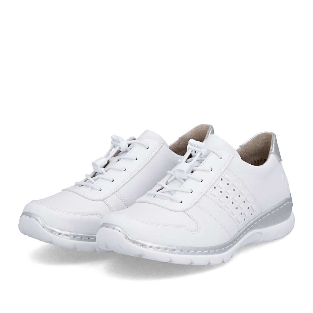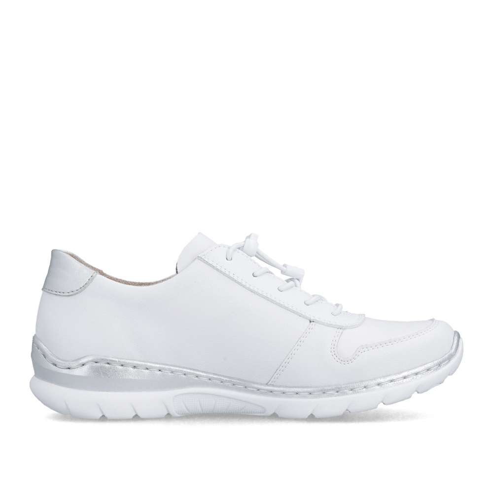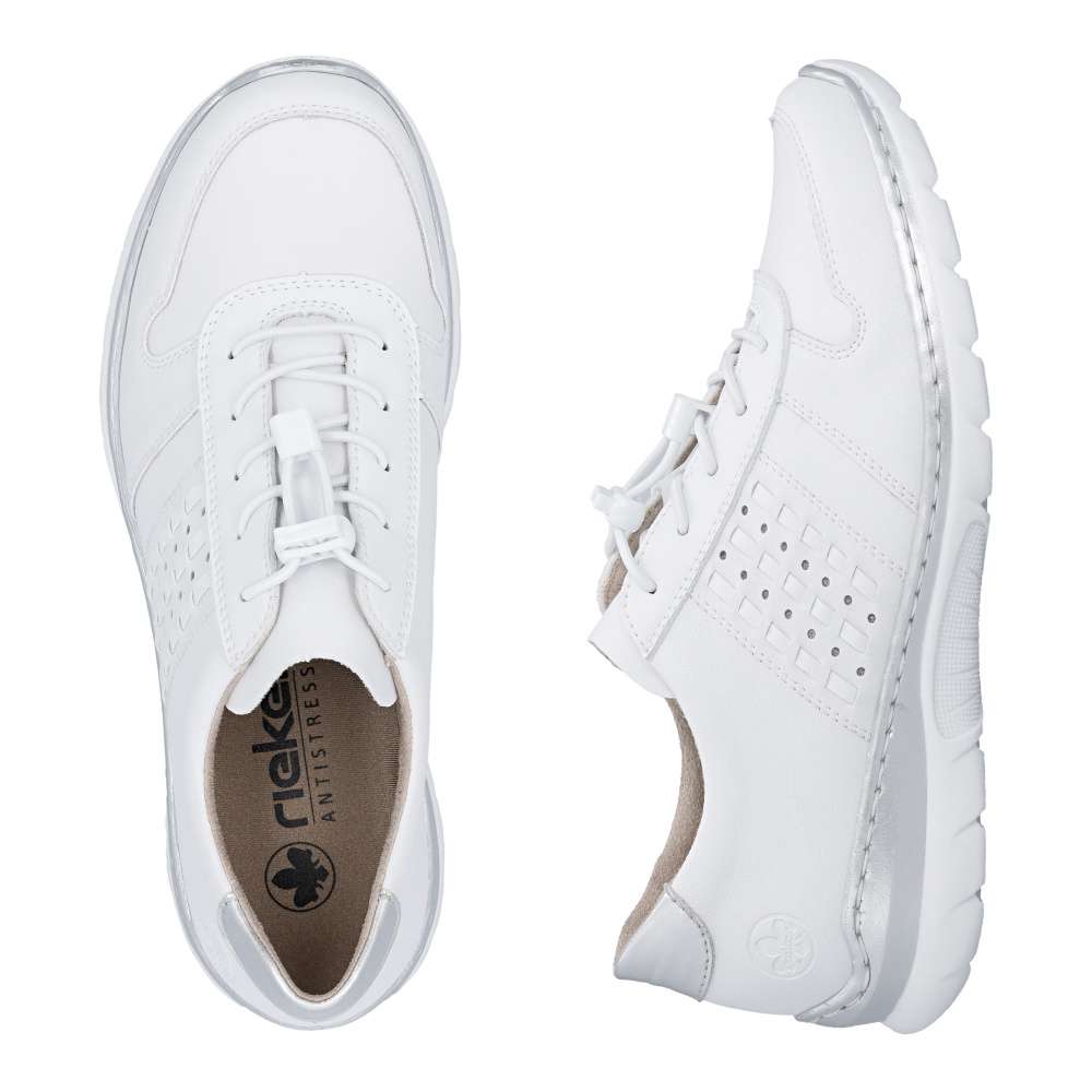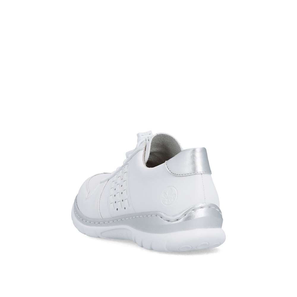 Moderní design a maximální pohodlí se pojí v těchto teniskách značky RIEKER, které jsou jako stvořené pro každodenní nošení. Bílý svršek je oživen výraznou dekorací na vnější straně, metalickými odlesky stříbrné barvy a decentním logem značky, díky čemuž boty působí stylově a zároveň nadčasově. Praktická pružná gumička se stahovacím prvkem umožňuje rychlé obutí a snadné přizpůsobení bot tvaru nohy. Uvnitř se nachází měkká stélka z paměťové pěny, která se postará o pohodlí při každém kroku a poskytne příjemný pocit po celý den. Lehká a flexibilní podešev účinně tlumí nárazy při chůzi, podporuje přirozený pohyb chodidla a snižuje únavu nohou. Díky univerzálnímu vzhledu jsou tyto tenisky RIEKER ideální volbou do práce, do města i pro volnočasové aktivity a snadno doplní každý moderní outfit.
