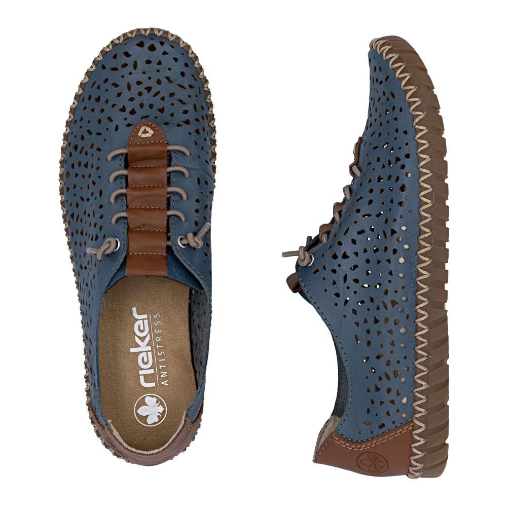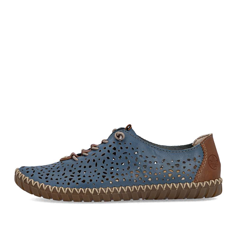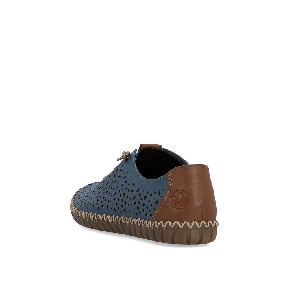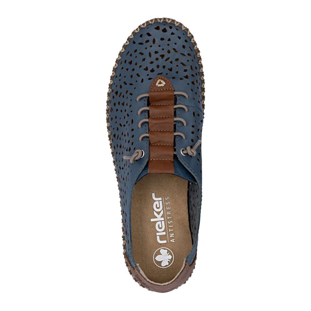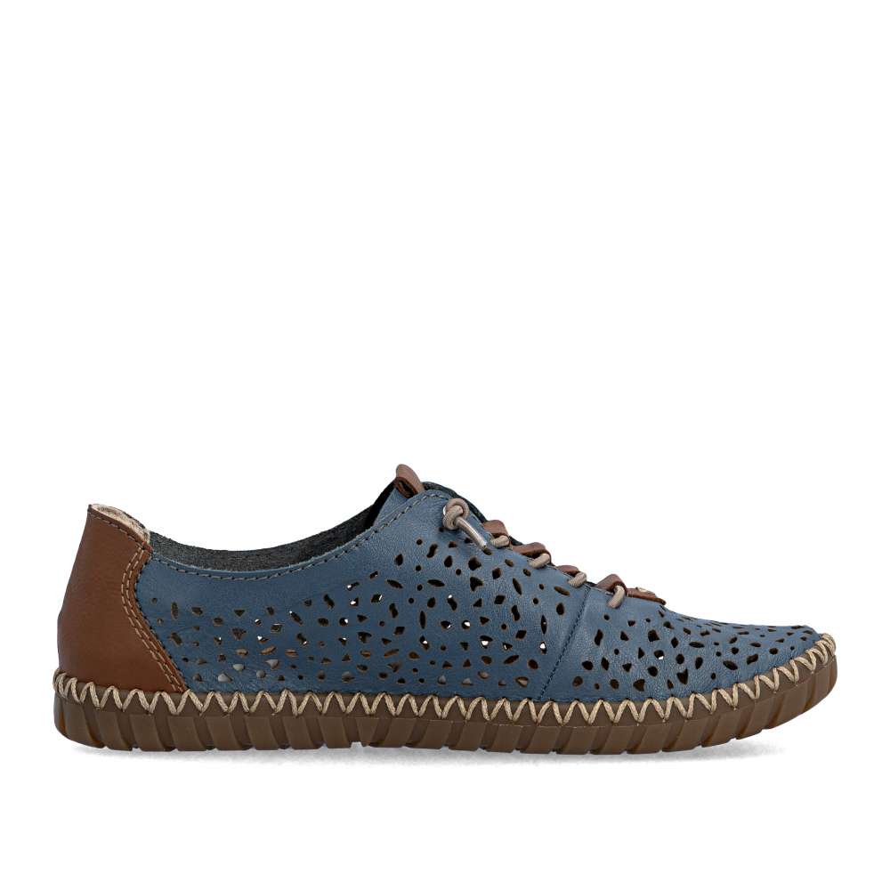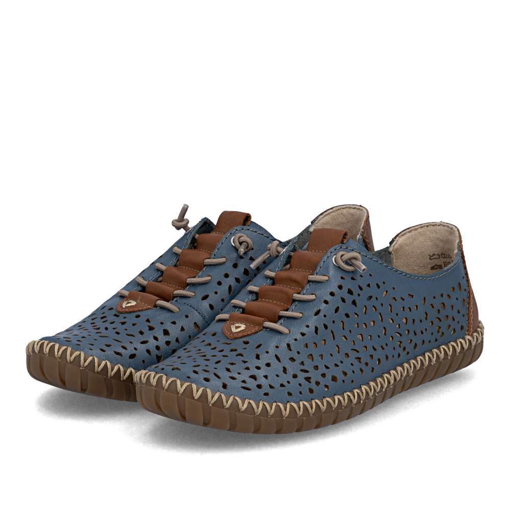 Nepřehlédnutelný design bot RIEKER osloví každou ženu s vytříbeným smyslem pro módu. Modrý svršek s jemnou perforací působí elegantně a vzdušně, zatímco hnědé kontrastní aplikace dodávají modelu módní charakter. Praktická pružná gumička namísto šněrování zajišťuje komfortní obutí a dokonalé přizpůsobení chodidlu. Vyjímatelná, textilní stélka poskytuje pohodlí i při celodenním nošení, zatímco flexibilní podešev efektivně tlumí nárazy při chůzi. Tyto polobotky jsou ideální volba pro ženy, které si potrpí na styl, kvalitu a bezkonkurenční komfort.