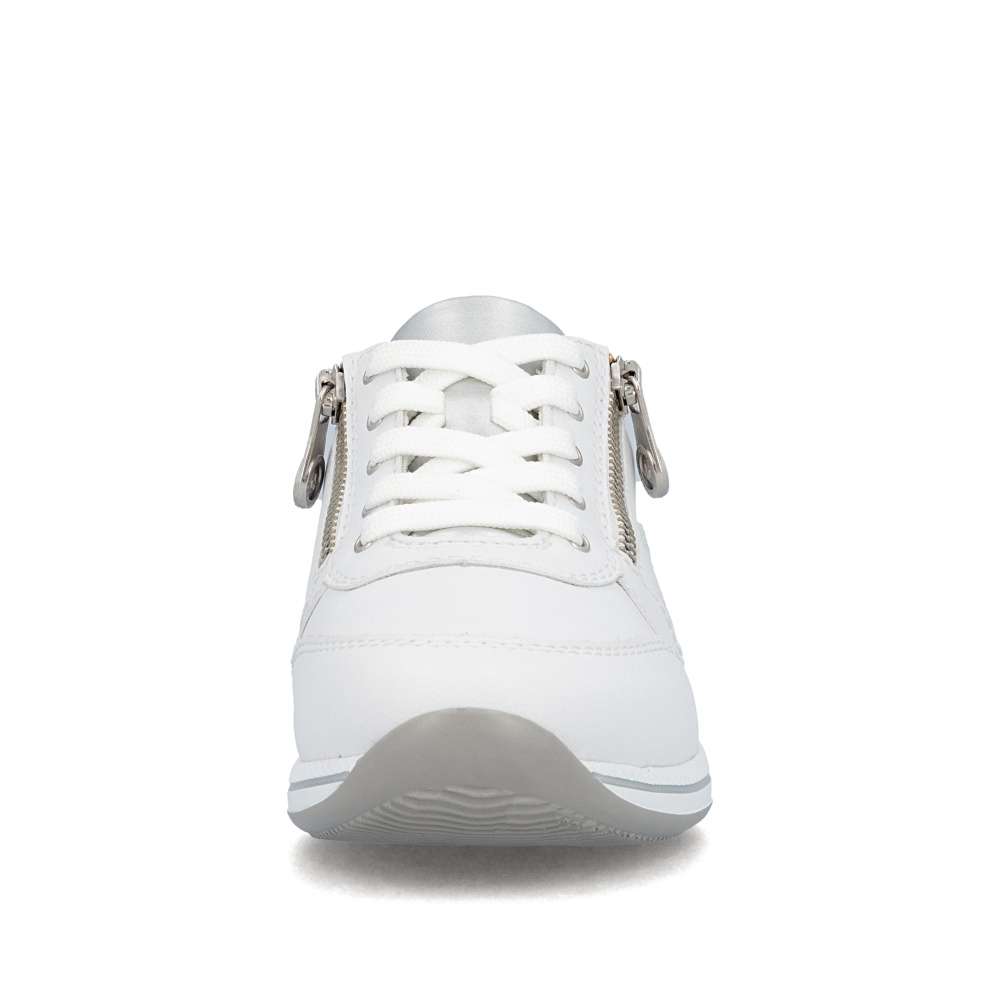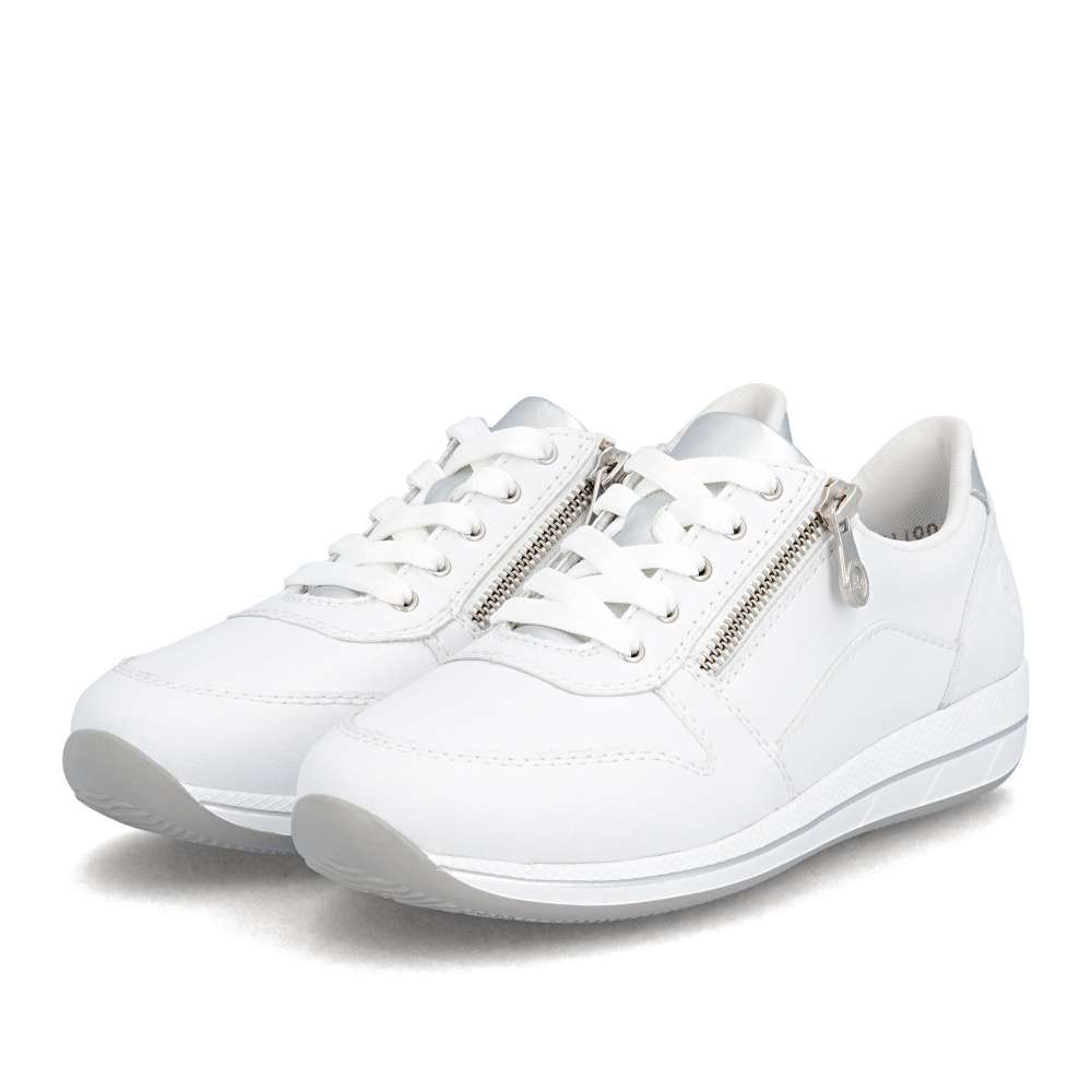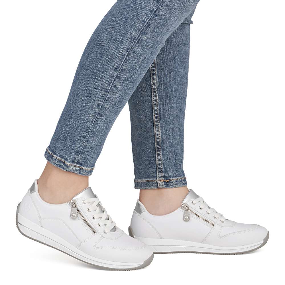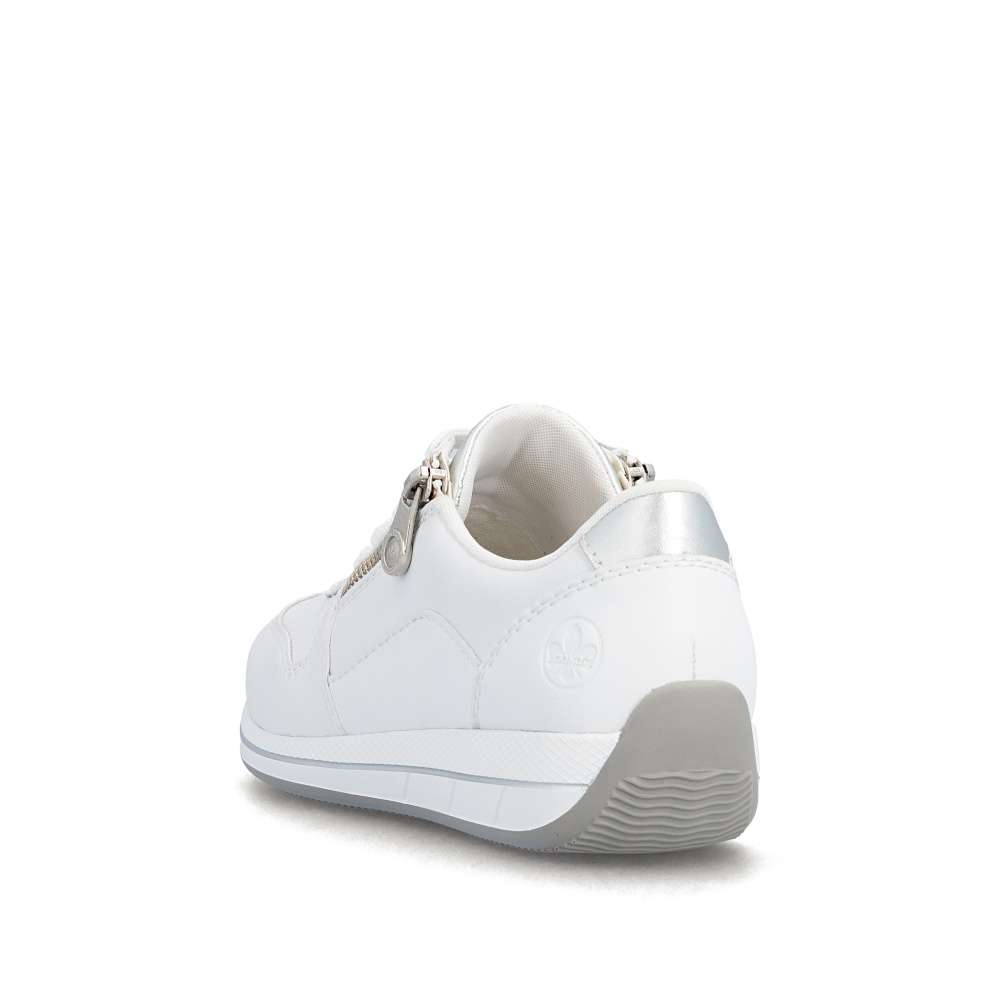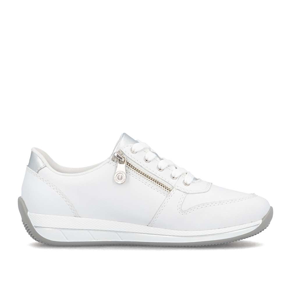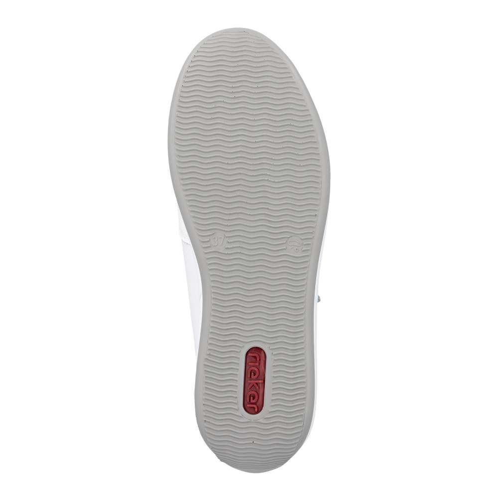 Detailní informace Tyto tenisky RIEKER kombinují univerzální vzhled s moderním designem a funkčností, což ocení každý, kdo hledá komfortní řešení pro každodenní nošení. Bílý svršek působí sofistikovaně a je doplněn lesklou aplikací na patě a pod šněrováním, decentní logo značky dodává obuvi punc originality originální. Jemné detaily a propracované linie podtrhují kvalitu zpracování a dodávají botám nadčasový styl. Kombinace šněrování a zipu na nártu umožňuje snadné obouvání a přesné přizpůsobení boty tvaru nohy, čímž zajišťuje stabilitu a komfort při každém kroku. Vyjímatelná kožená stélka přináší pohodlí, které oceníte při celodenním nošení, a spolu s flexibilní podrážkou tlumící nárazy vytváří dokonalý komfort při nošení. Tyto tenisky jsou ideální volbou pro každodenní aktivity - ať už do práce, do města, na procházku nebo volný čas.