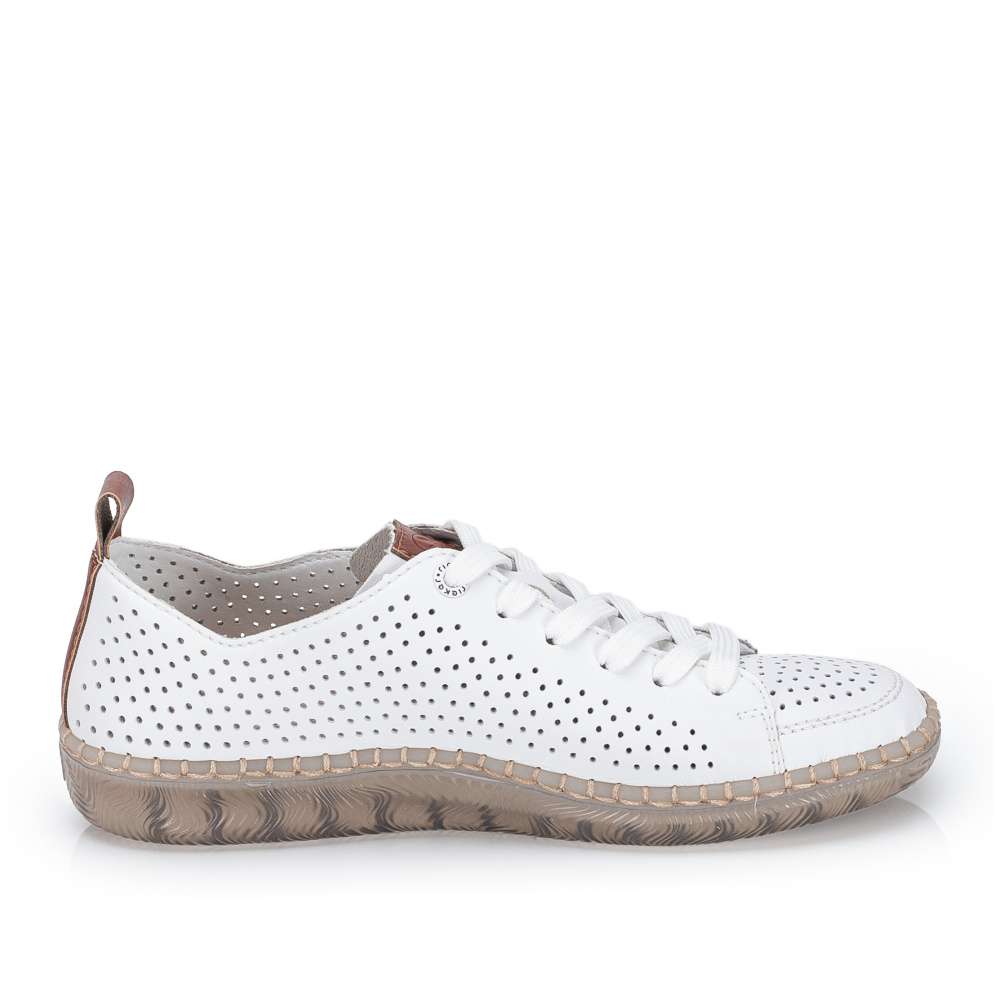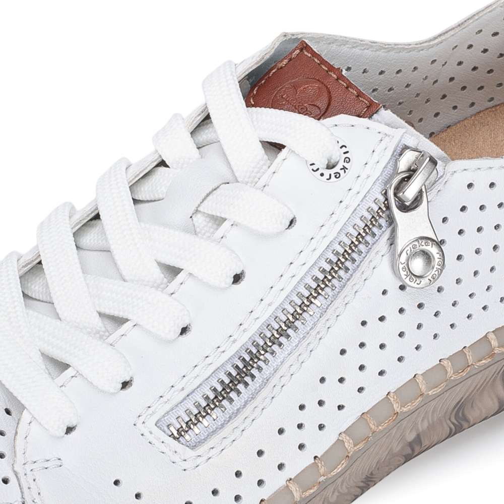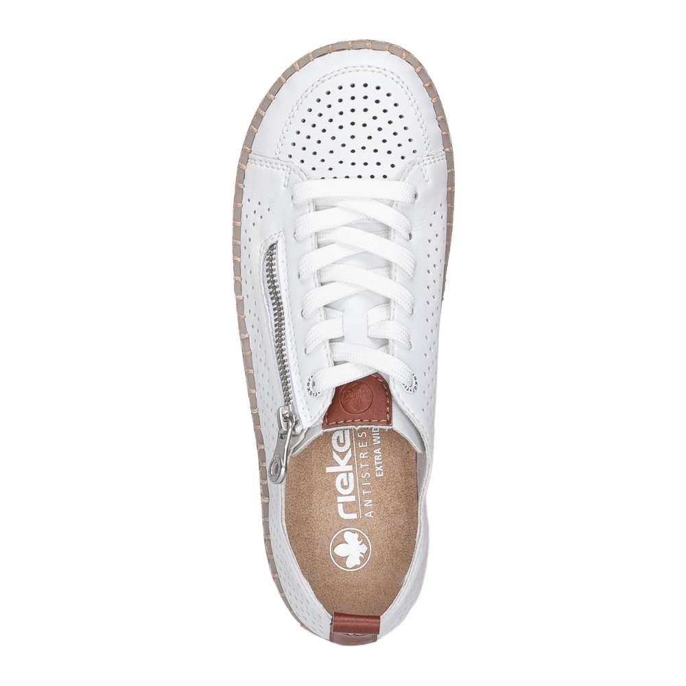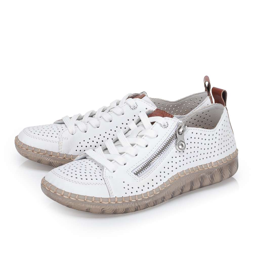 Maximální pohodlí a moderní vzhled – to vše nabízí tyto nadčasové tenisky RIEKER. Univerzální design je obohacen o praktické detaily, které zvyšují komfort při nošení. Svršek obuvi je perforován a doplněn o hnědé části, funkční zip a šněrování. Měkká vyjímatelná stélka poskytuje pohodlí po celý den a díky širšímu střihu se budete cítit pohodlně na každém kroku. Lehká podešev s technologií tlumení nárazů šetří klouby a zpříjemňuje každý krok. Tyto boty jsou ideální volbou pro ženy, které nechtějí dělat kompromisy mezi stylem a pohodlím.