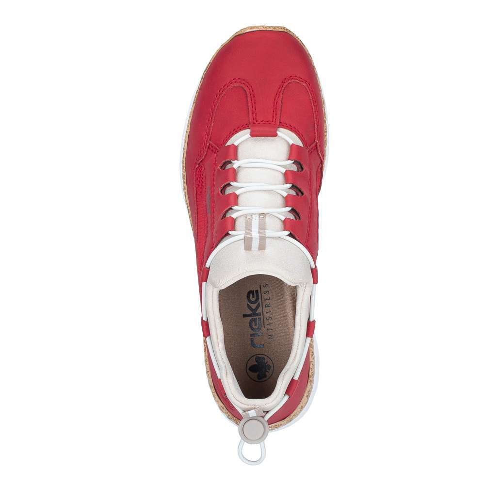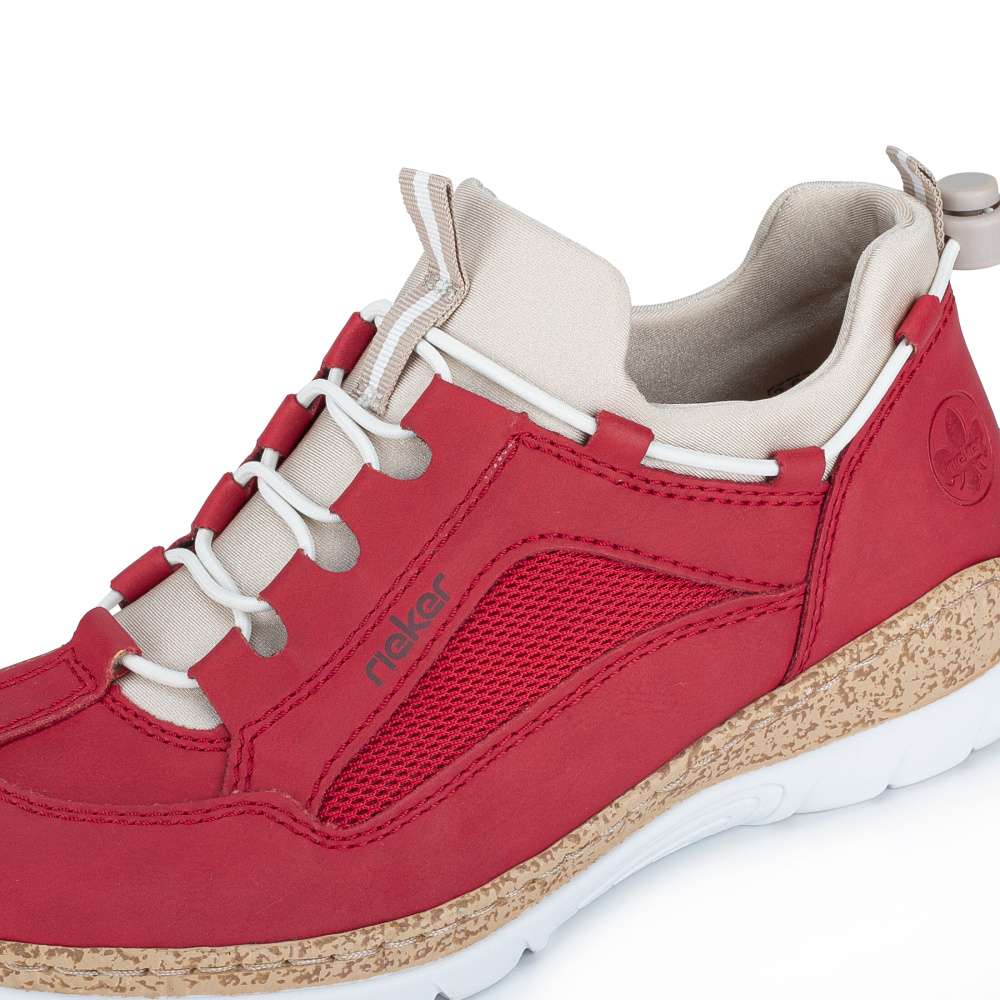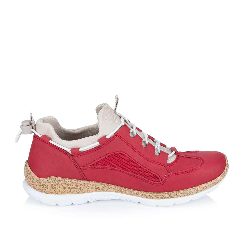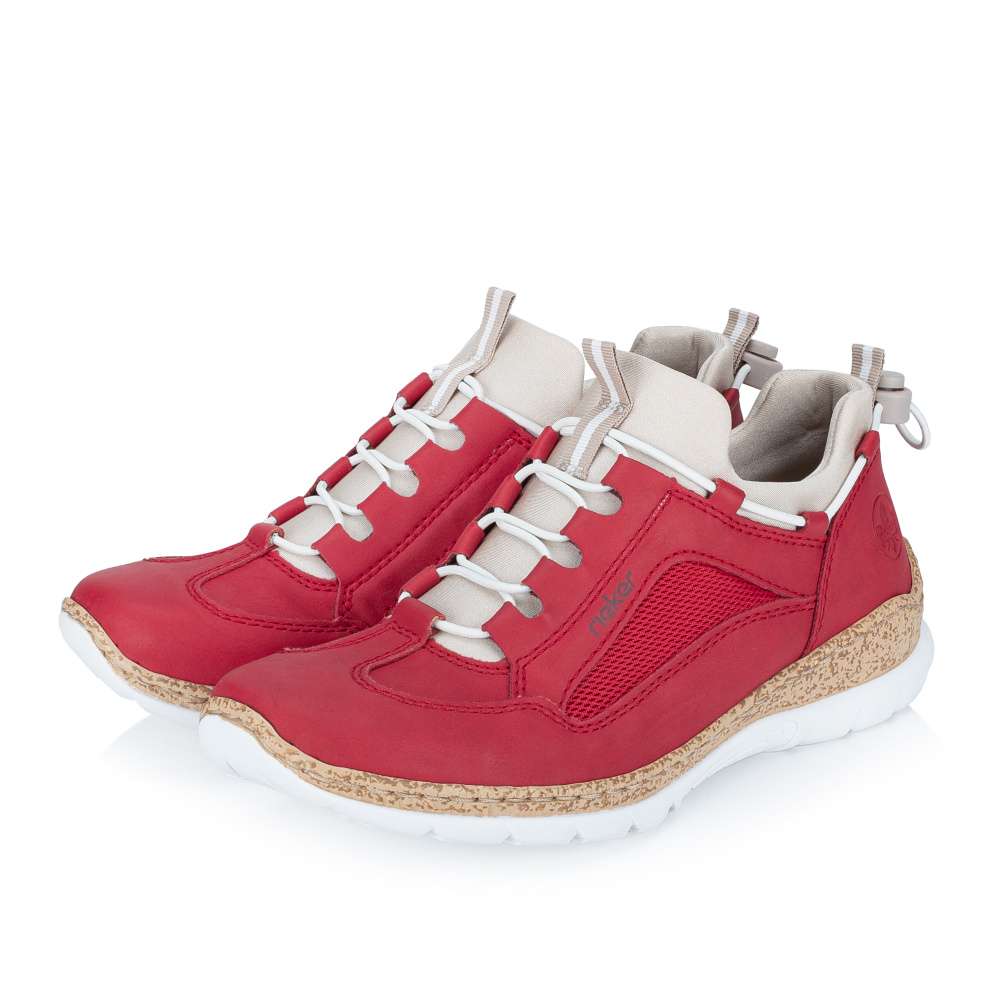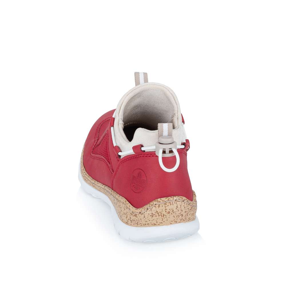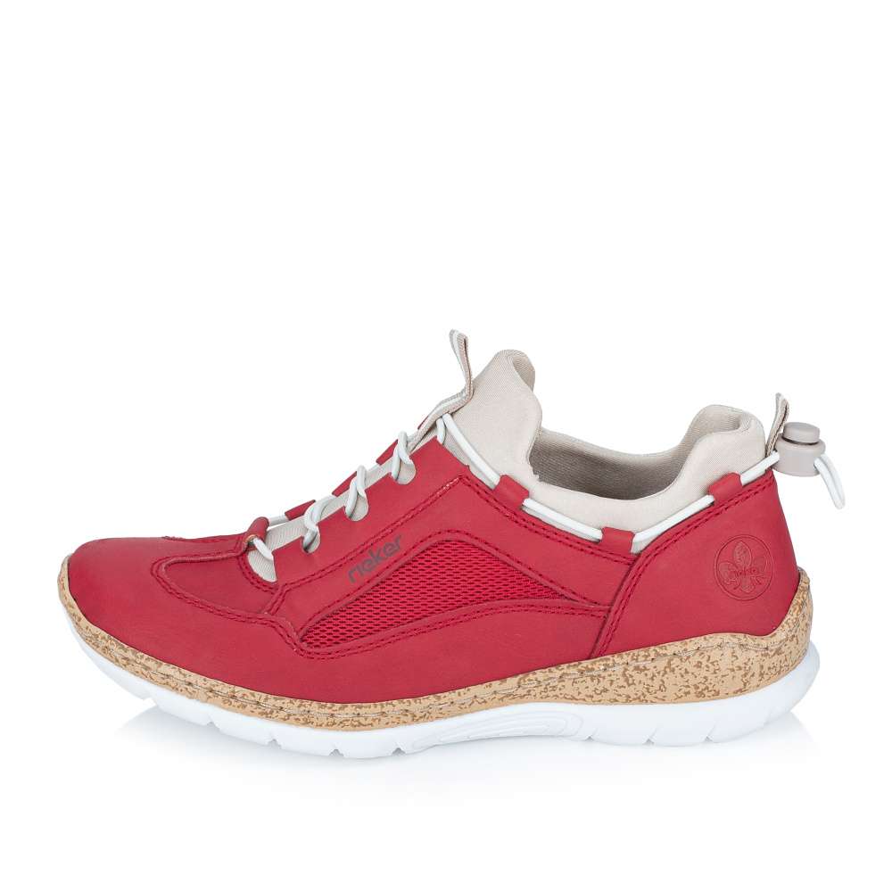 Sportovní elegance je synonymem těchto bot RIEKER, červený svršek zdobený jemným prošíváním, vytlačeným logem a doplněný o světlý pružný materiál, který Vám usnadní obouvání. Dokonale si obuv přizpůsobíte šněrováním pomocí gumičky, kterou lze utáhnout a vytvořit si dokonalé pohodlí. Unikátní textilní stélka z paměťové pěny změkčí došlap a přizpůsobí se tvaru Vašeho chodidla. Podešev vyrobená s technologií Antistress je díky ní lehká a flexibilní. Tento model skvěle oživí Vaše oblečení jak do práce, tak na pochůzky městem. Technologie: MemoSoft – unikátní stélka z paměťové pěny, která změkčuje došlap, ale také se maximálně přizpůsobí tvaru Vašeho chodidla. Antistress – díky čtyřem antistresovým vlastnostem – lehkosti, pružnosti, prostornosti a vynikající absorpci nárazů – vám boty RIEKER nabídnou komfortnější chůzi.
