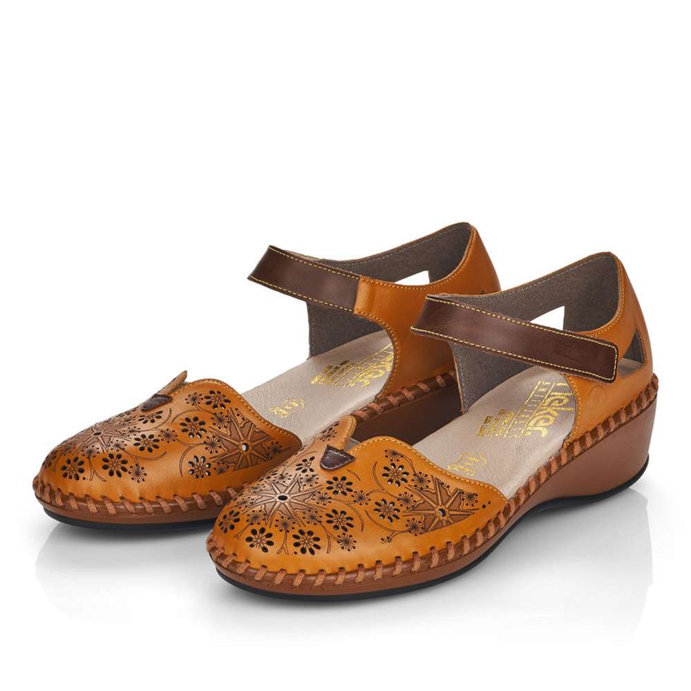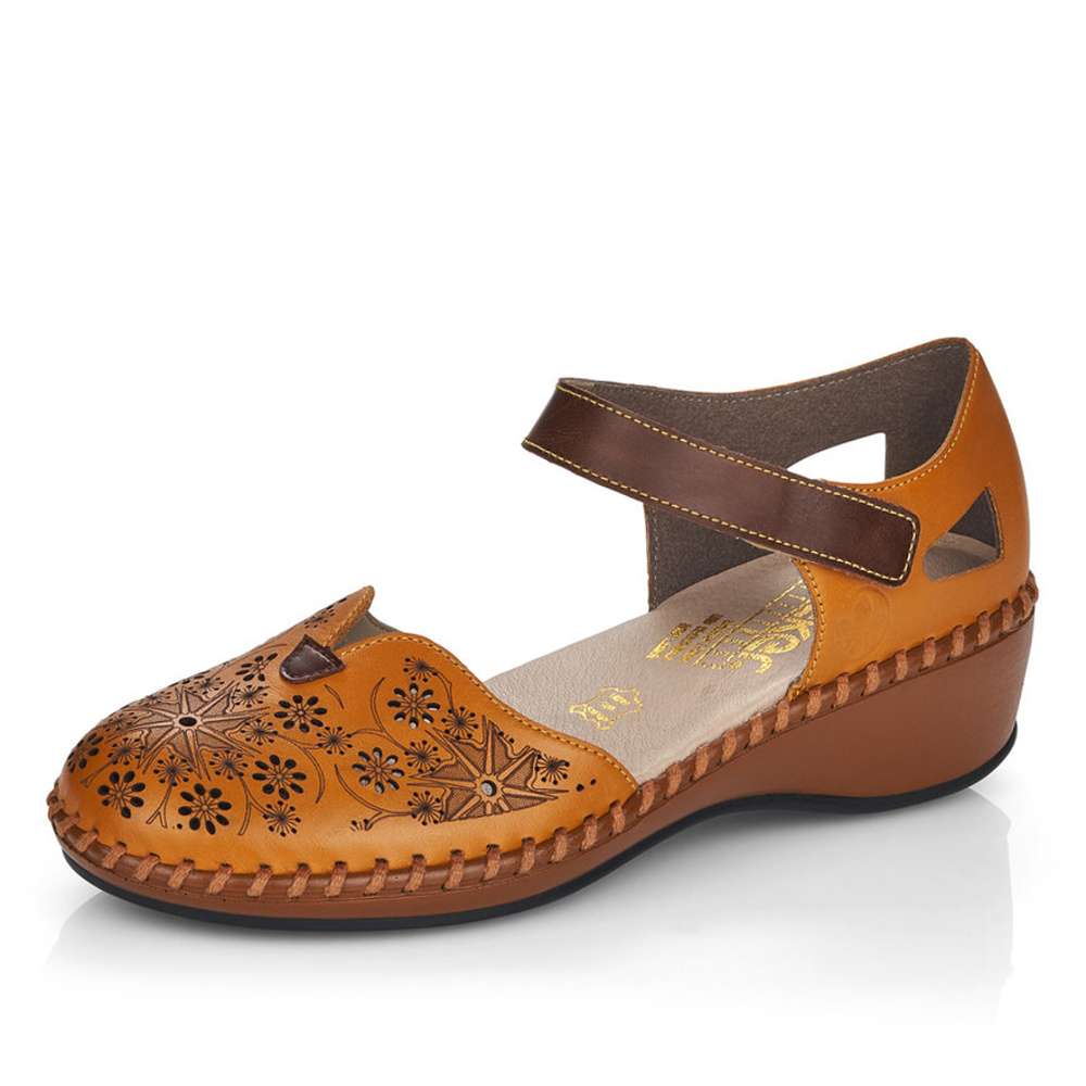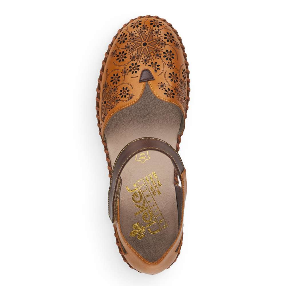 Dámské sandály se zdobnou povrchovou perforací, značky RIEKER.