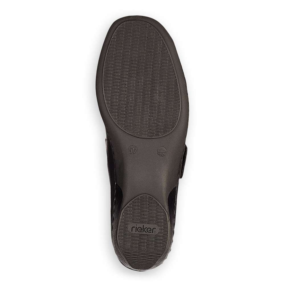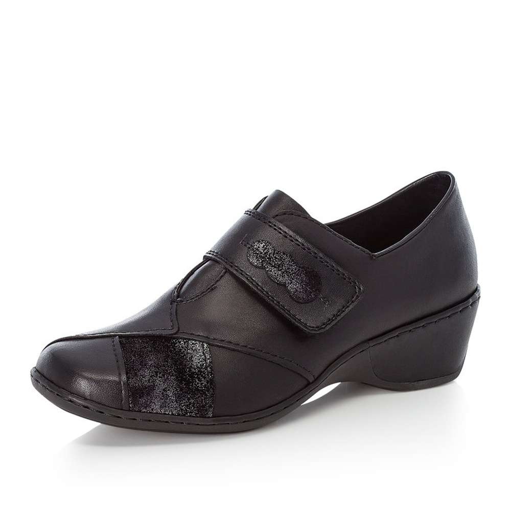 Tato dámská obuv od značky Rieker je trefa do černého. Kožený svršek je moderně zdoben v oblasti nártu, který je dominantou celé boty. Uzavírání na suchý zip Vám ušetří spoustu času a zajistí, že Vám botka perfektně padne. Menší vyvýšení podešvi v oblasti paty dodává botě na eleganci. Díky měkké stélce bude pohodlný každý Váš krok, ať už se vydáte na nákup či na oslavu. Technologie: Antistress – podešev je díky této technologii lehká, flexibilní, absorbuje nárazy při došlapu a snadno se přizpůsobí každé noze.