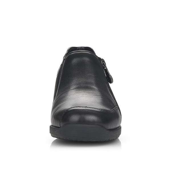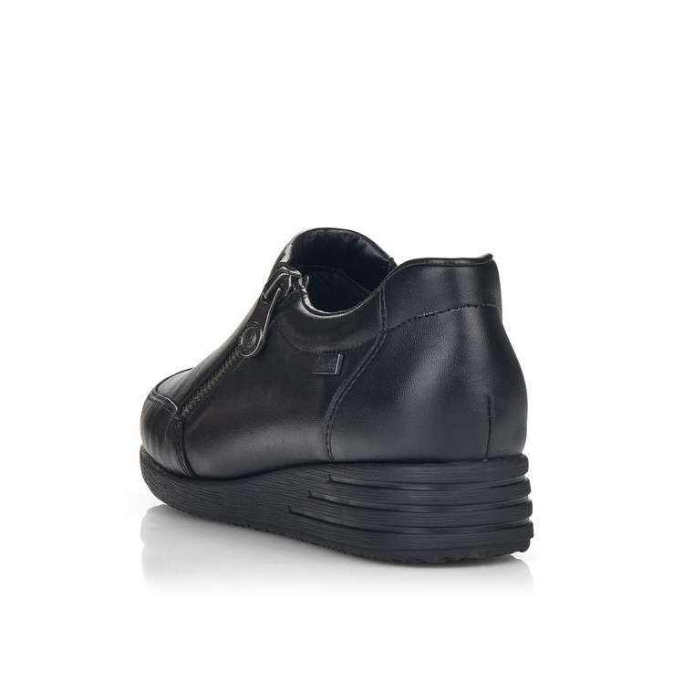 Hladký kožený svršek je zdobný jemným prošíváním, které na obuvi vytváří zajímavé linie. Snadno si obuv nazujete díky funkčnímu zipu a všité pružné gumičce umístěné na vnitřní straně obuvi. Membrána Rieker TEX se postará o nepromokavost přesto o prodyšnost obuvi.