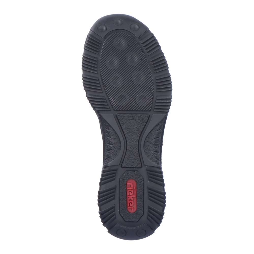Každá žena si zaslouží kvalitní obuv. Tato dámská obuv značky RIEKER je přesně tím pravým pro Vás. Díky pružné gumce v oblasti svršku si můžete nohu zpevnit tak, aby s Vám v ní dobře chodilo. Velkou výhodou je elastická část v oblasti horního okraje, díky které se Vám do boty bude snadněji dostávat. Na boku se nachází dekorační zip. Na boční straně se nachází logo značky. K botám se rozhodně hodí jak kalhoty, tak sukně. Technologie: Antistress – podešev je díky této technologii lehká, flexibilní, absorbuje nárazy při došlapu a snadno se přizpůsobí každé noze. MemoSoft – unikátní stélka z paměťové pěny, která změkčuje došlap, ale také se maximálně přizpůsobí tvaru Vašeho chodidla.