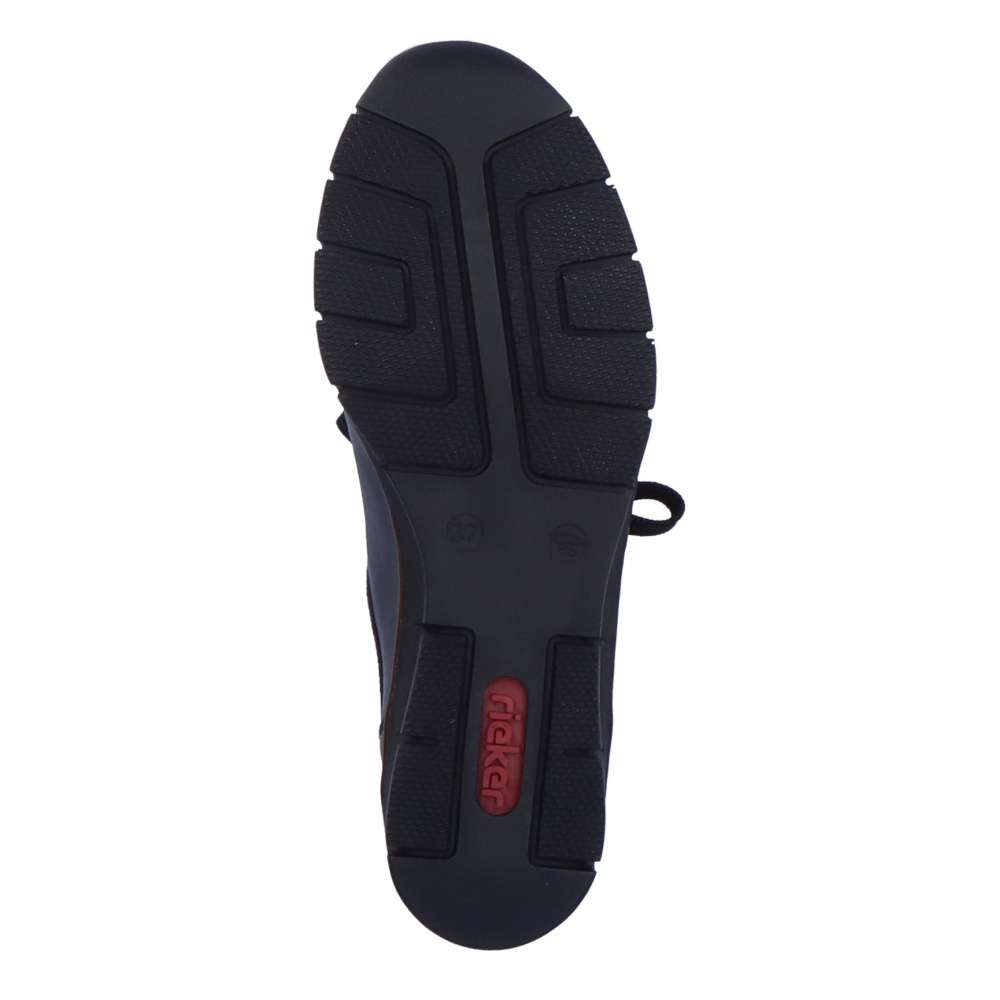 Těmto trendy teniskám od značky Rieker zkrátka nejde odolat. Kožený svršek v černé barvě je zdoben logem značky na vnější straně. Šněrování na tkaničky je obohaceno i o zip, který krásně koresponduje se zlatými prvky. Lehce vyvýšená podešev v oblasti paty dodává tenisce na eleganci. Měkká stélka slibuje pohodlí na každém kroku. Ať už vyrazíte za prací či zábavou, budete vypadat famózně. Technologie: Antistress – podešev je díky této technologii lehká, flexibilní, absorbuje nárazy při došlapu a snadno se přizpůsobí každé noze.