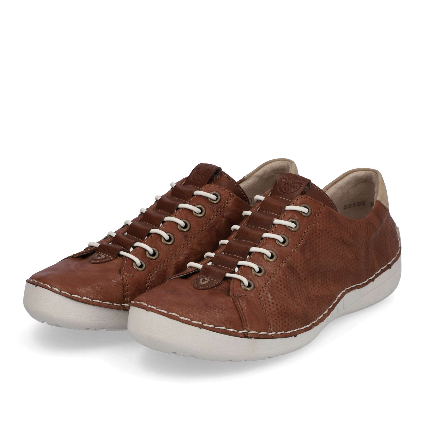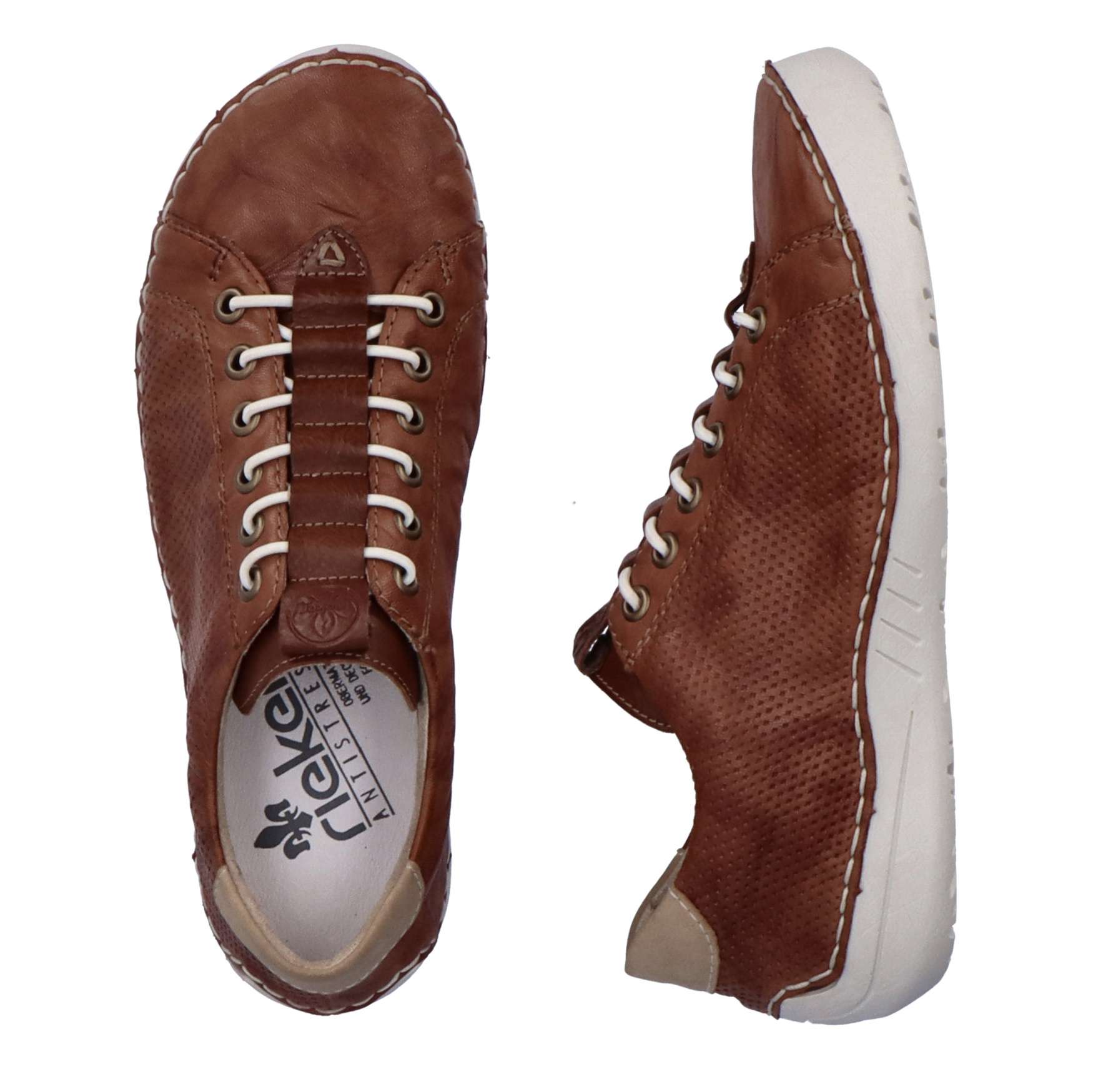 Těmito dámskými teniskami značky Rieker neuděláte krok vedle. Svršek je vkusně zdoben vytlačenými tečkami na vnější straně a logem značky na patě a jazyku. Obuv stačí nazout a můžete vyrazit. Pružné prvky v oblasti nártu zajistí, že Vám obuv perfektně sedne. S měkkou stélkou se budete cítit pohodlně po celý den, ať už ho strávíte jakkoli. Technologie: Antistress – podešev je díky této technologii lehká, flexibilní, absorbuje nárazy při došlapu a snadno se přizpůsobí každé noze.