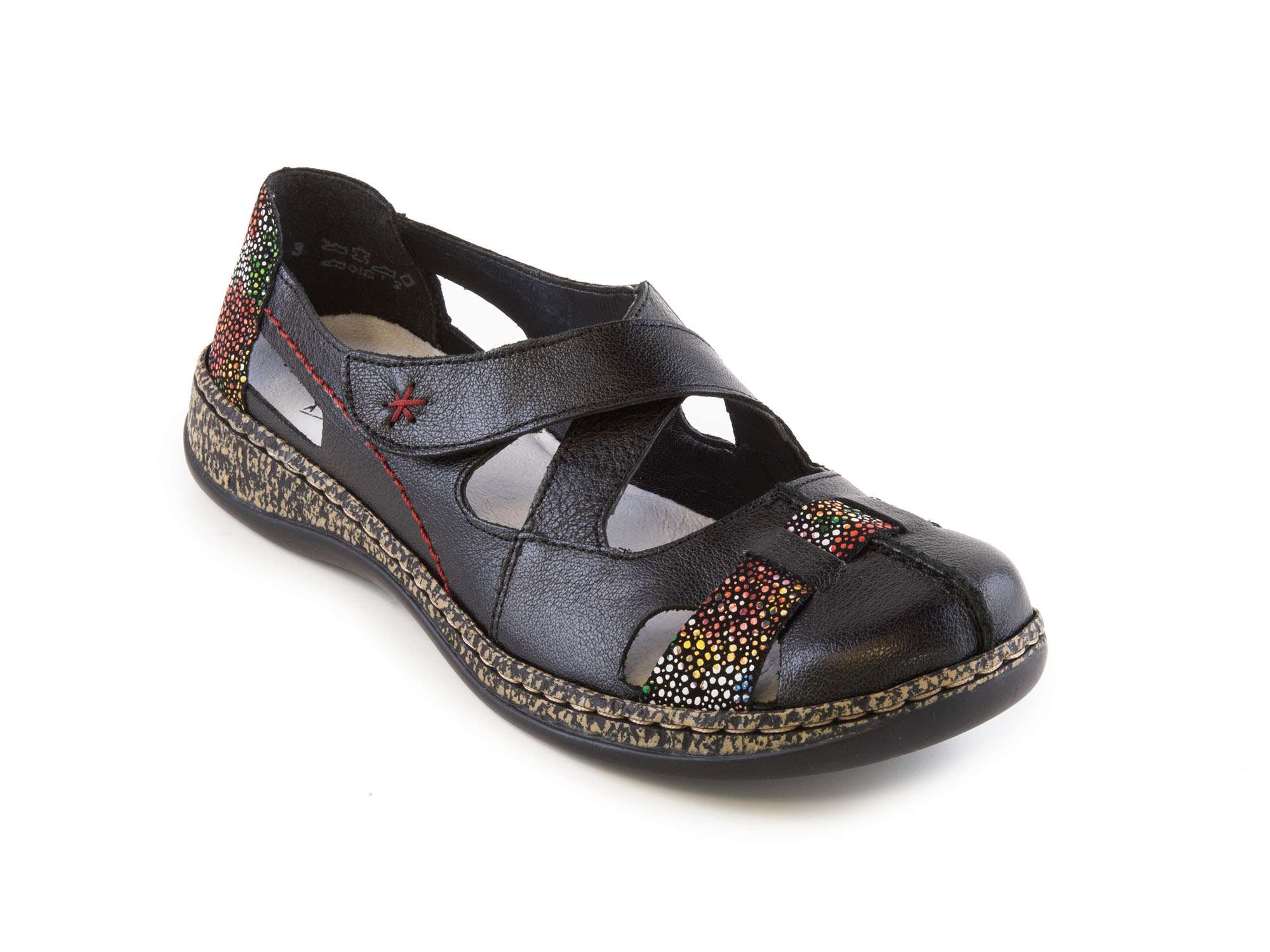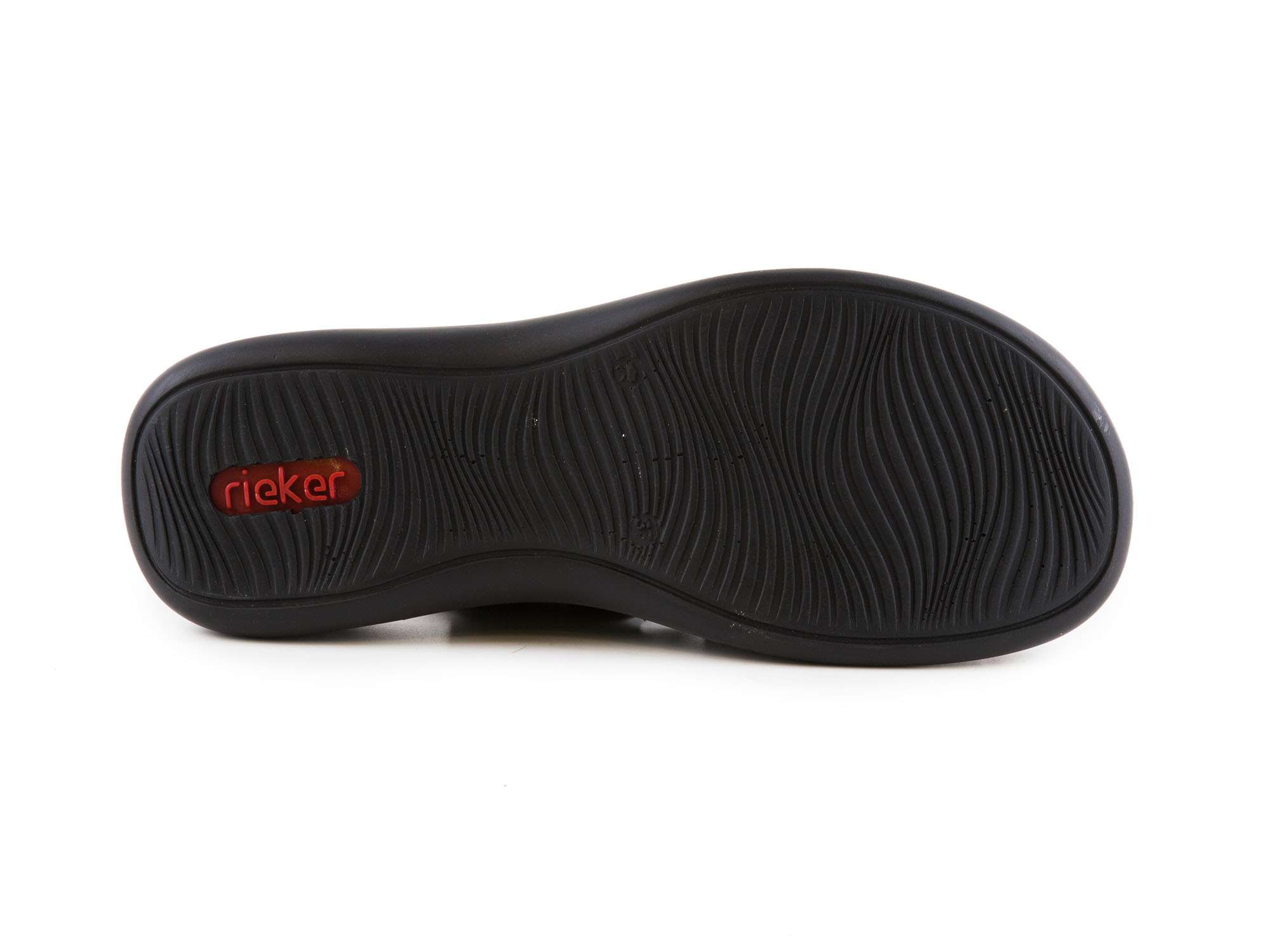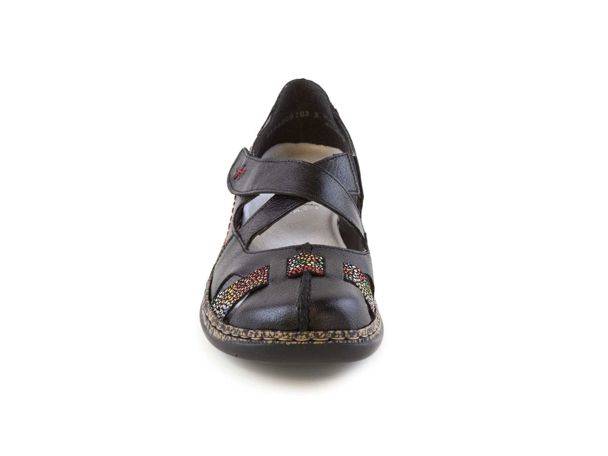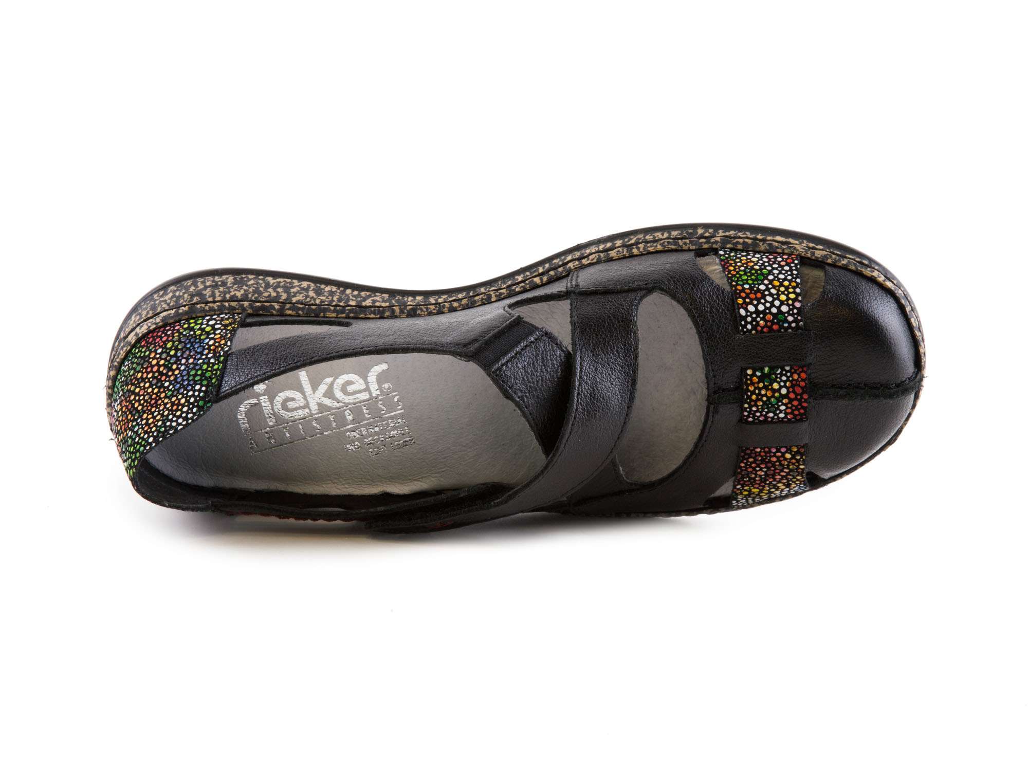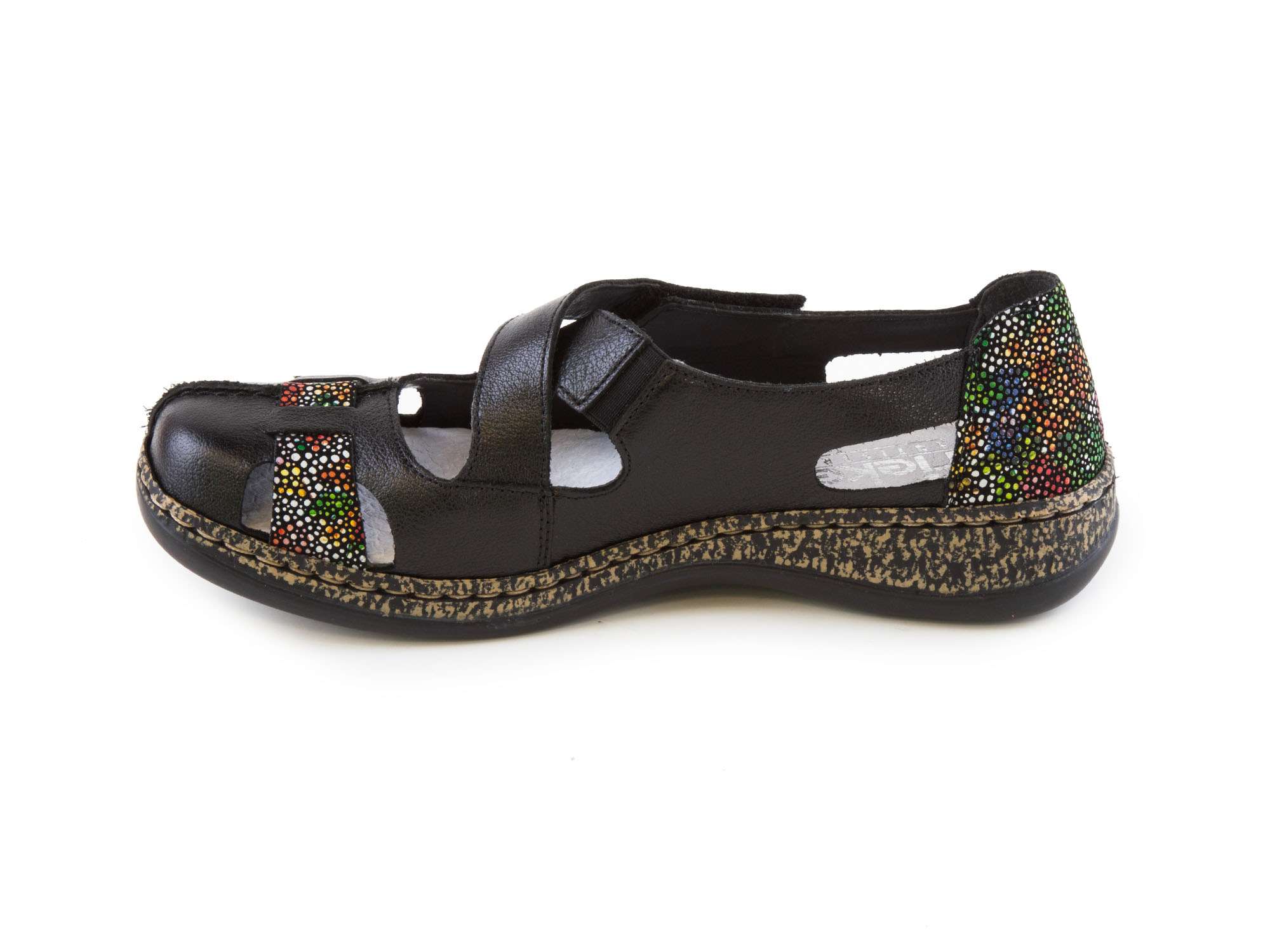 Dámské jarní/letní nazouváky [slovnik=4]šíře G[/] s pásky se zapínáním na suchý zip a s pohodlnou vyměkčenou stélkou v černé barvě značky Rieker.