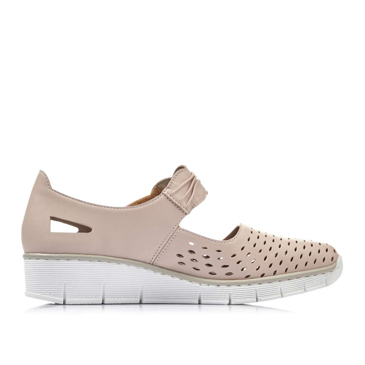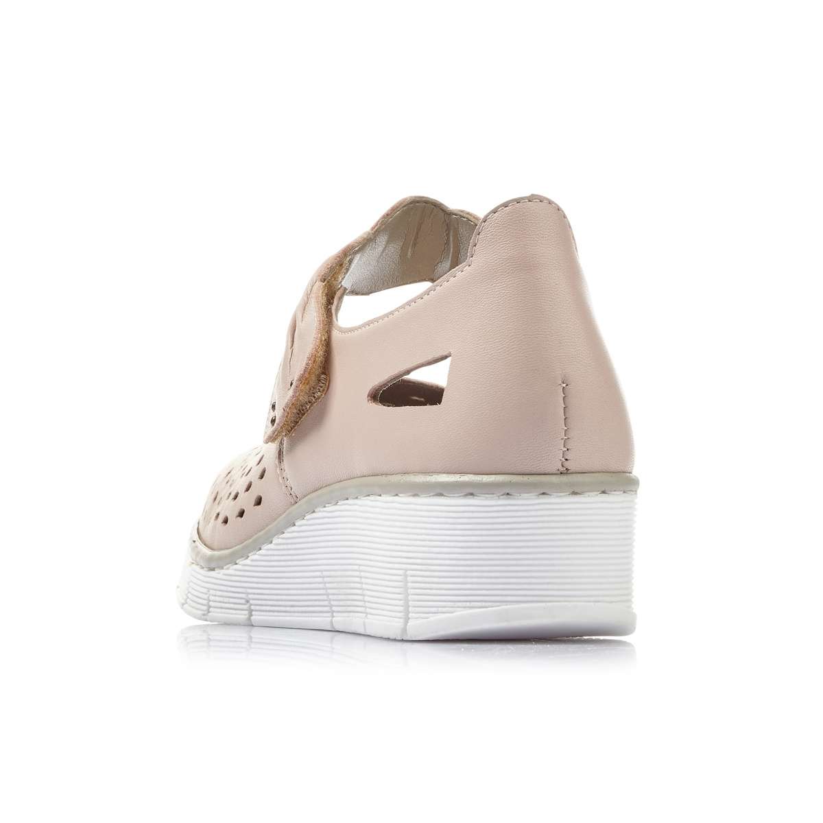 Dámské kožené polobotky s perforováním s páskem na suchý zip, značky RIEKER.