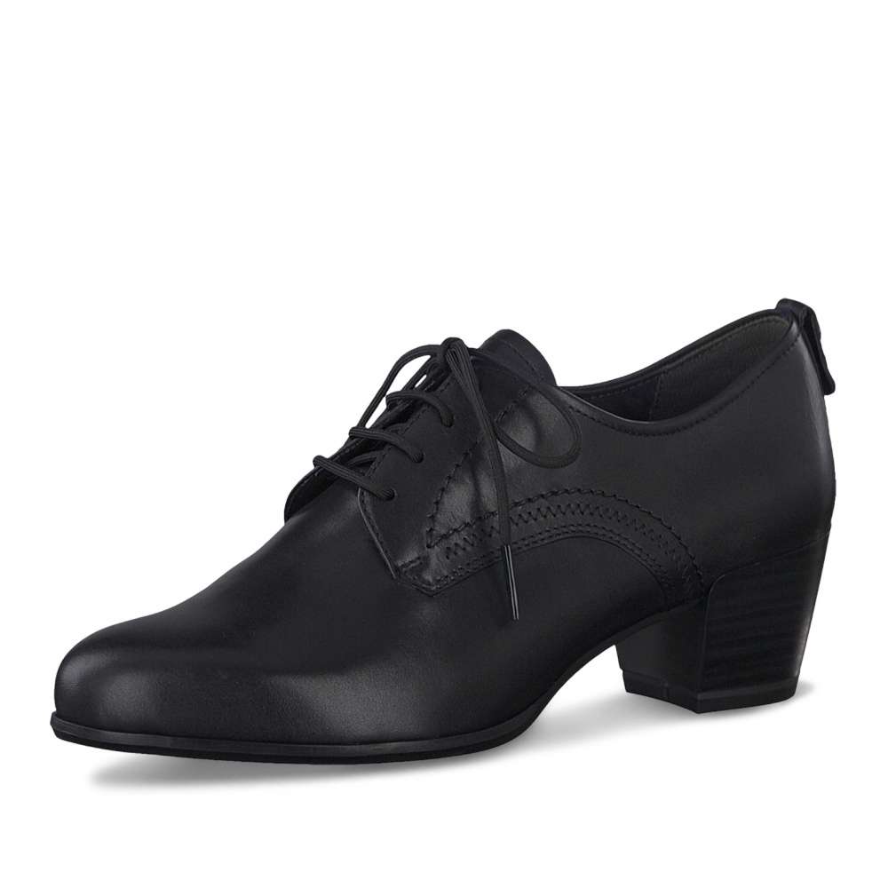 Představujeme Vám model značky Tamaris. Svršek polobotky je vyrobený z kvalitní, hladké kůže a střih polobotky je derbový se zdobným je šitím. Uzavírání je řešeno pomocí tkaniček na nártu.