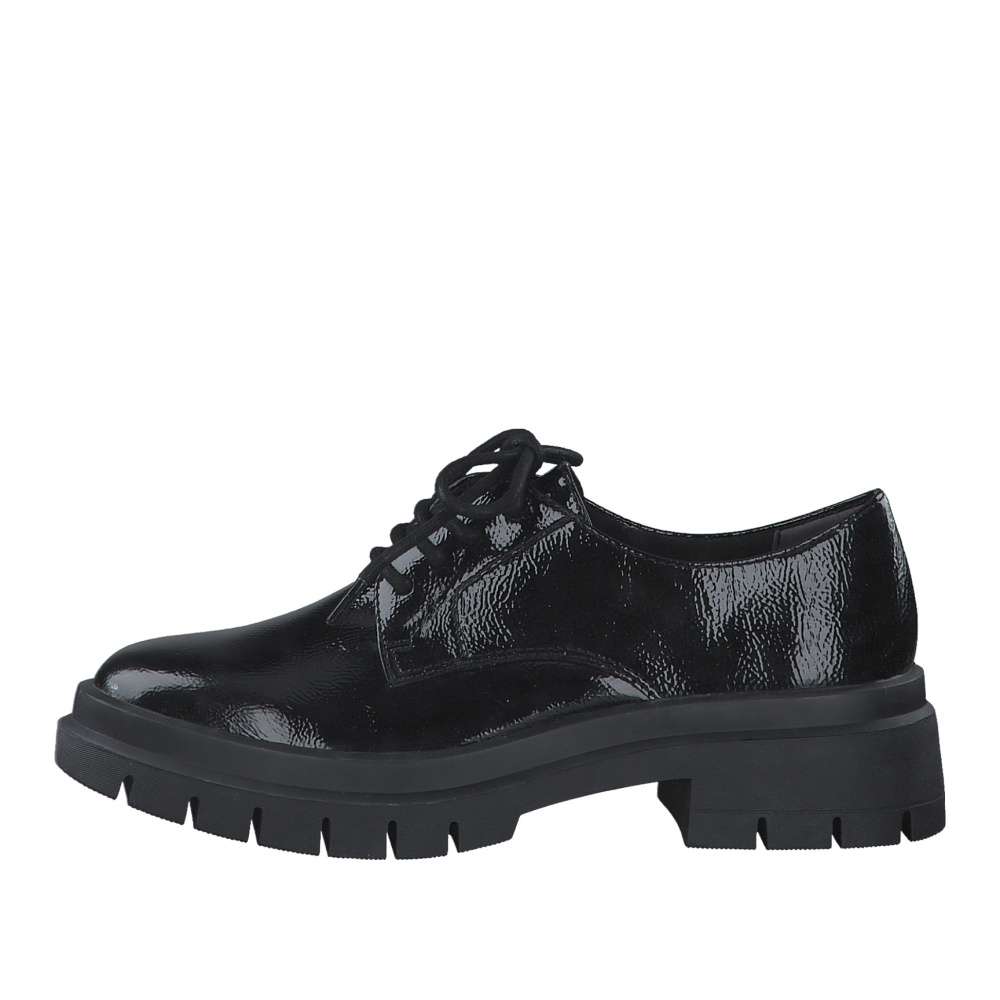 Nosíte ráda výrazné boty, které zaujmou na první pohled? Pak Vás jistě osloví tyto polobotky TAMARIS. Jde o hladkou a lesklou moderní obuv, která má po stranách decentní prošití a podešev je vysoká cca 3,5 cm. Díky šněrování si boty utáhnete podle potřeby a příjemně měkká a kožená stélka zajistí pohodlí pro každodenní nošení. Tak co, vyzkoušíte je?