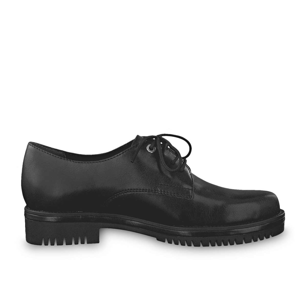 Dámská polobotka černé barvy s TouchIt stélkou, značky TAMARIS. Podešev Podešev je vyrobena z velmi kvalitního syntetického mateirálu. Podpatek je vysoký cca 3,5 cm. Svršek Dámská moderní obuv se šněrováním, lakovaným povrchem a nízkým podpatkem. Klasický, ale přesvědčivý vzhled zaručeně upoutá pozornost Vašeho okolí. Šněrováním si optimálně upravíte polobotku přímo na Vaši nohu a stélka Touch It Vám navíc zajistí dokonalé pohodlí na každém kroku. Boty mají výraznou podešev s decentním zdobením v podobě jemných třpytivých puntíků. Tento model nejen doplňuje Váš outfit, on ho vytváří. Stélka Stélka TOUCH IT – je vyrobena z paměťové pěny, jež se dokonale přizpůsobí vaší noze. Technologie: Touch It
