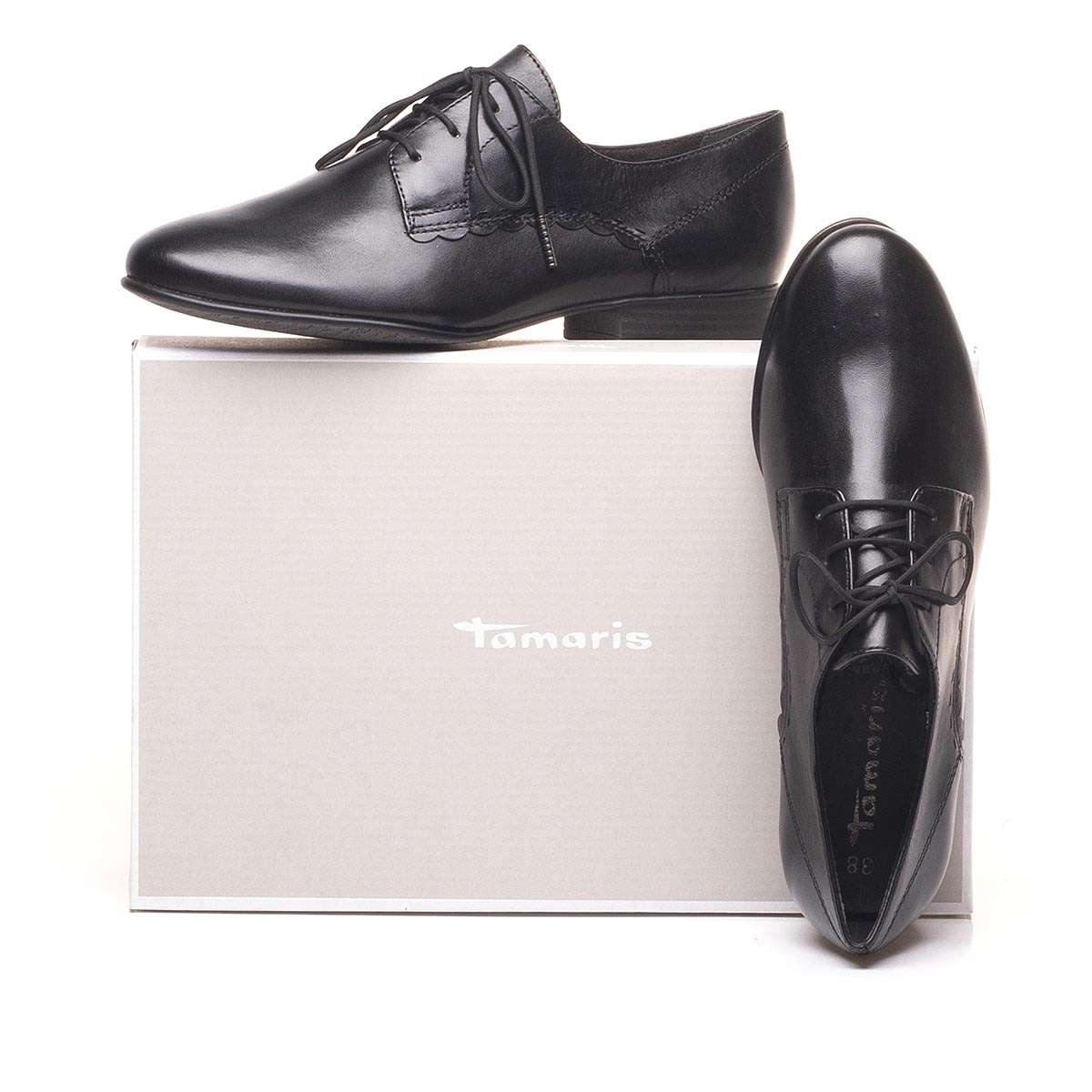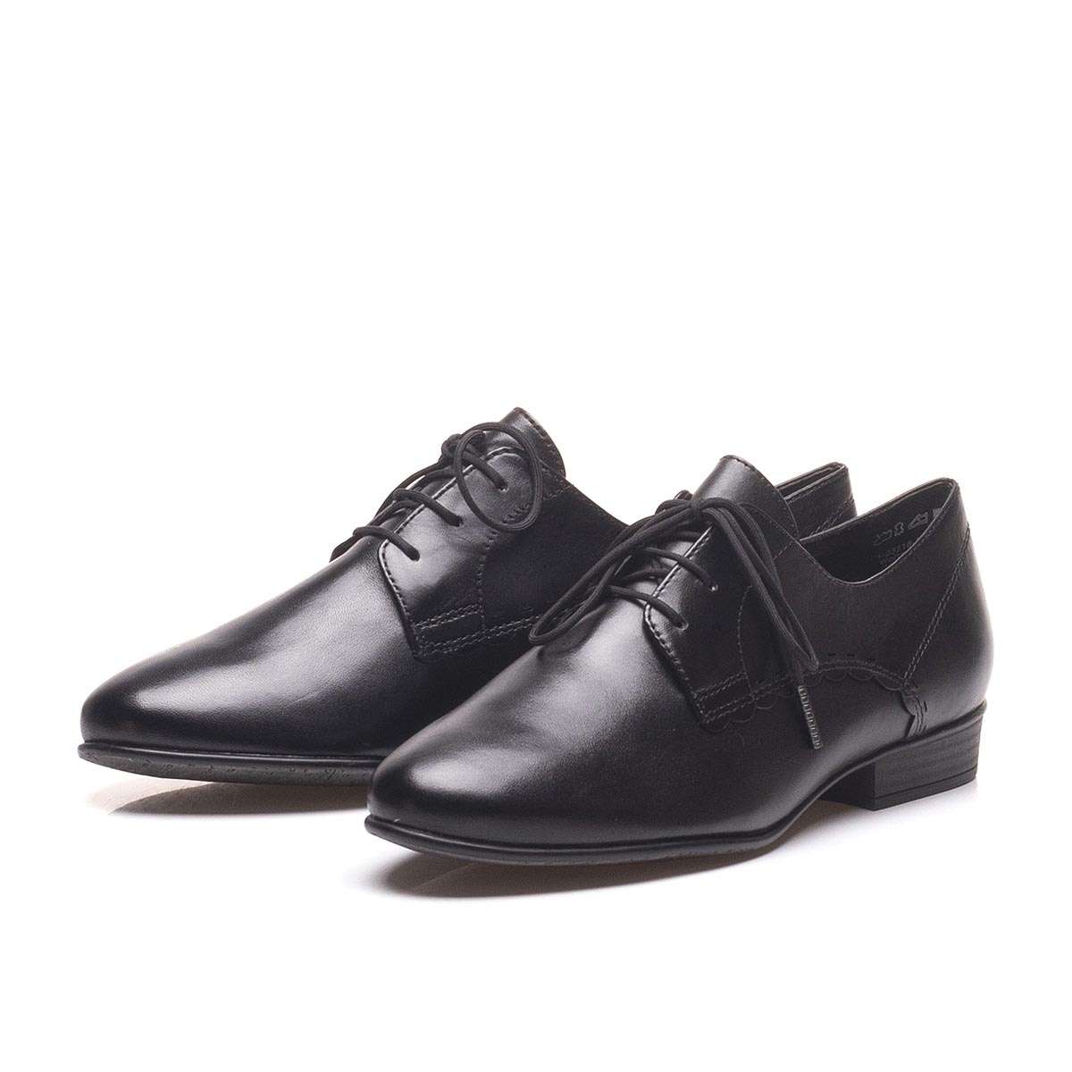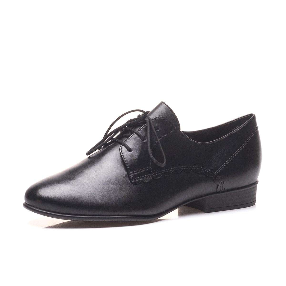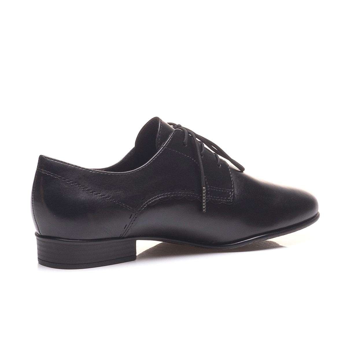 Tyto černé dámské polobotky šité z pravé kůže budou ideálním doplňkem Vašeho jarního i podzimního outfitu. Mají hladký svršek s užší kulatou špičkou a zdobným šitím kolem nártu.