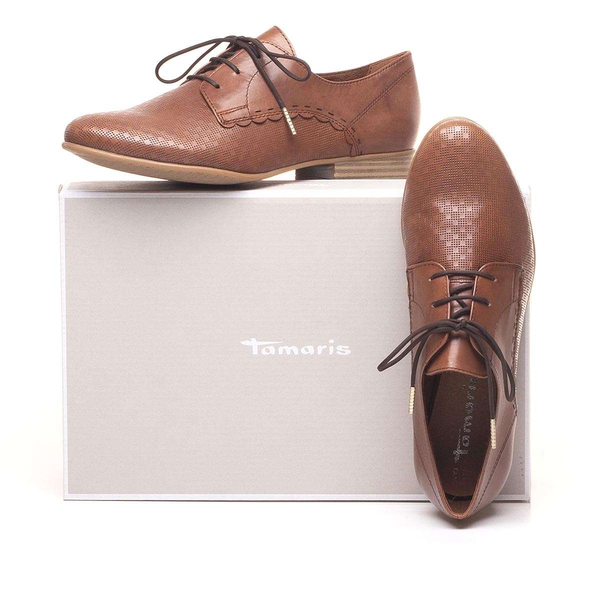 Hnědé dámské kožené polobotky, značky TAMARIS.