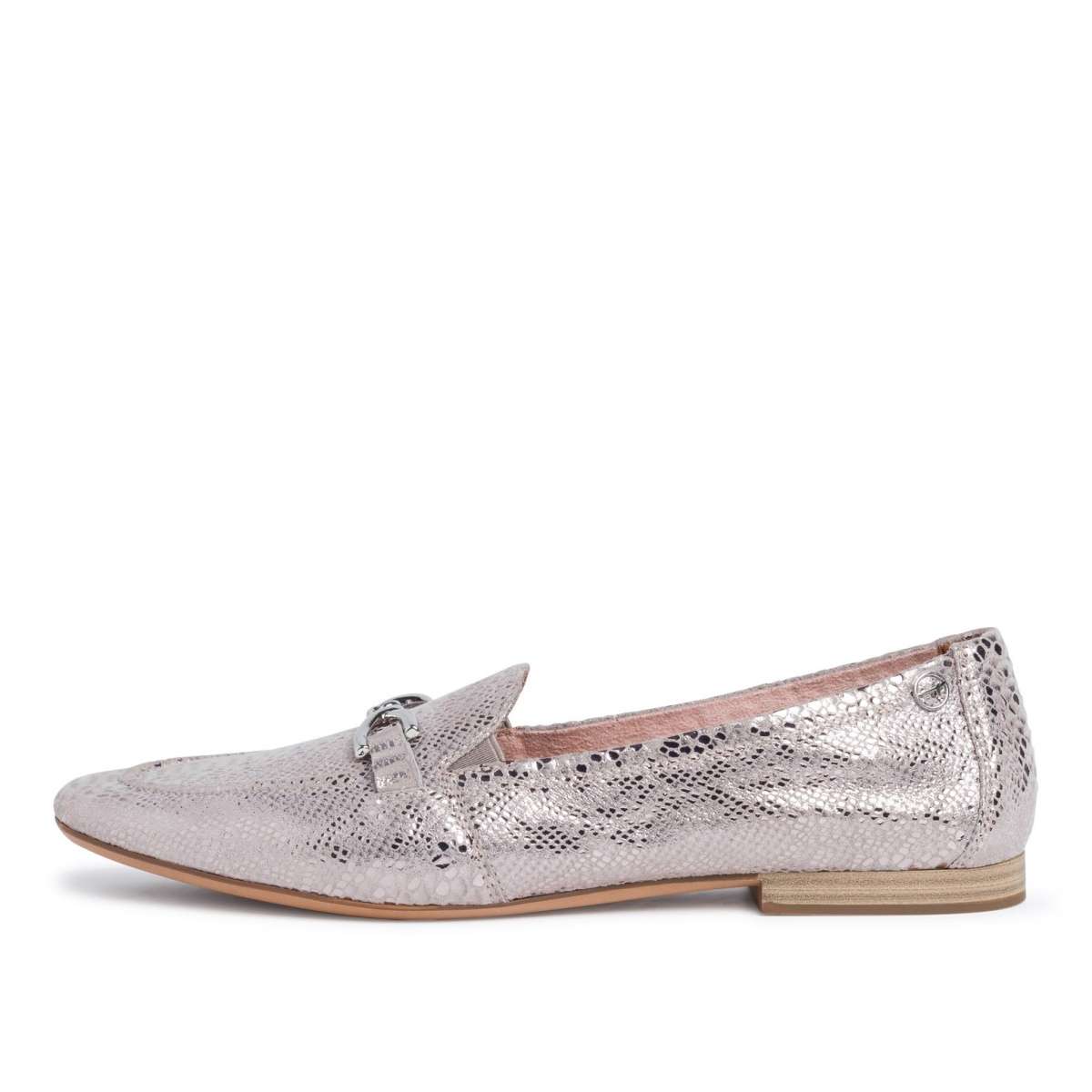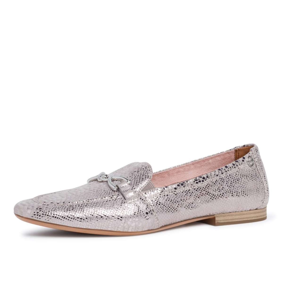 Dámské polobotky značky Tamaris z pravé kůže jsou zdobené páskem s kovovou aplikací v oblasti nártu a výrazným švem na špici. Po stranách jazyka jsou vsazeny pružné gumičky pro snadné obutí. Tento model je vhodný jak do práce k sukni, tak na běžné pochůzky po městě.