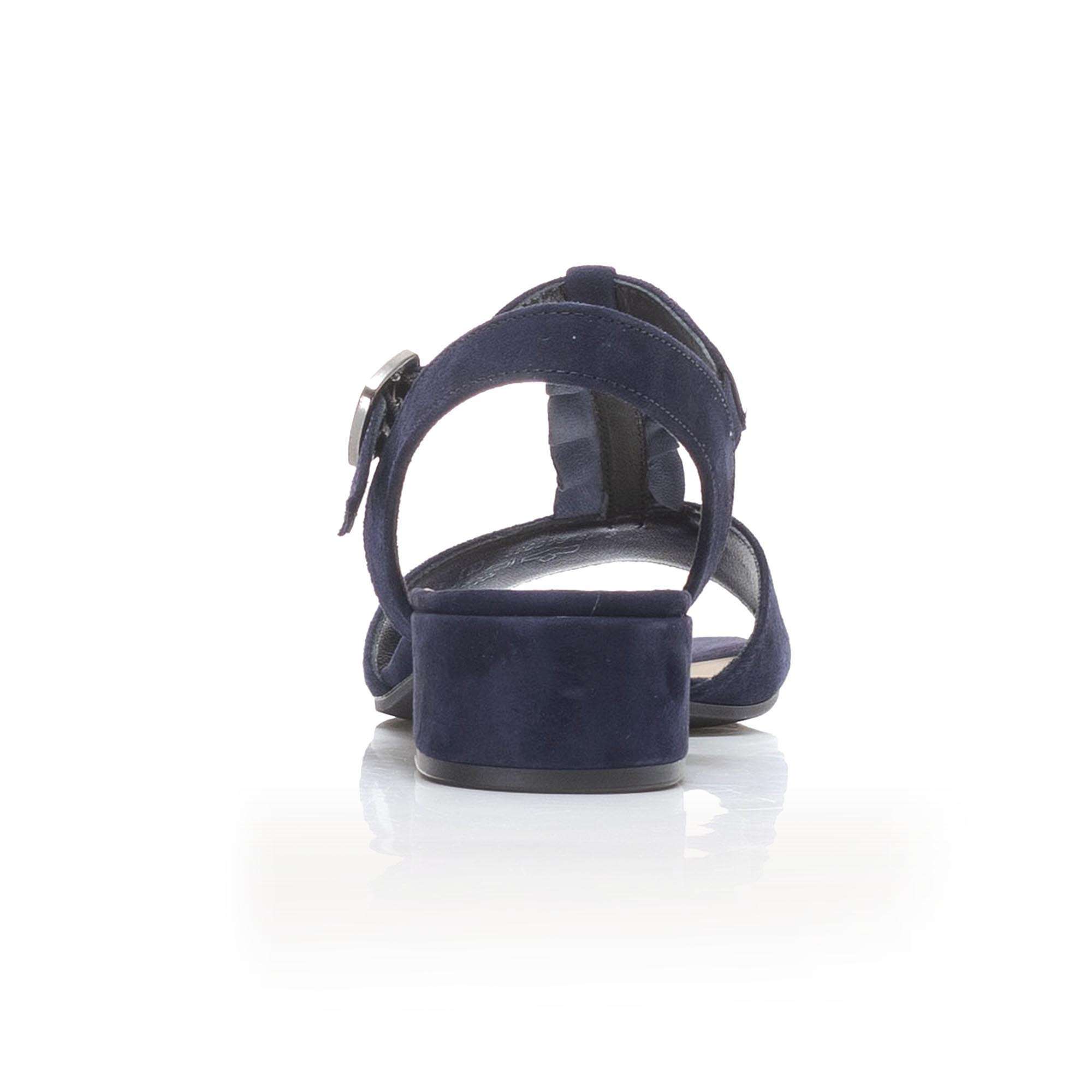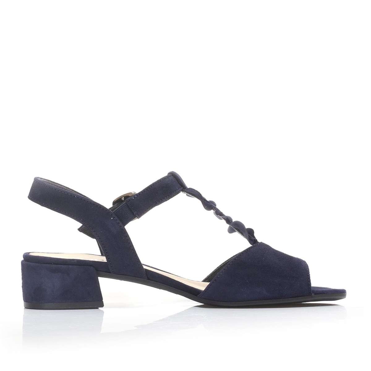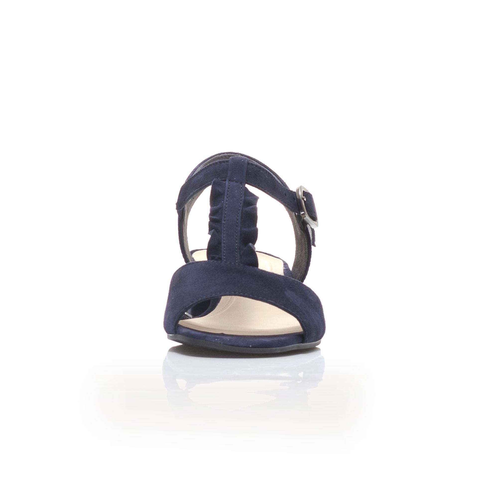 Dámské sandály šité z pravé kůže jsou zdobené volánky na nártu. Mají semišový vzhled a kulatou špičku. Na vnitřní straně je pružná gumička a na vnější straně zapínání přezkou pro dokonalou úpravu dle Vašich požadavků. Tento model dokonale doladí každý Váš outfit do práce či do města.