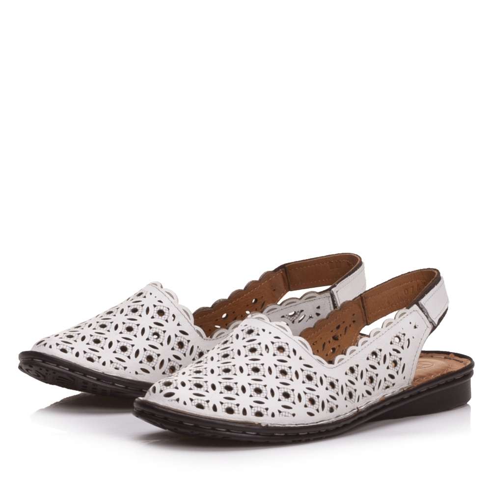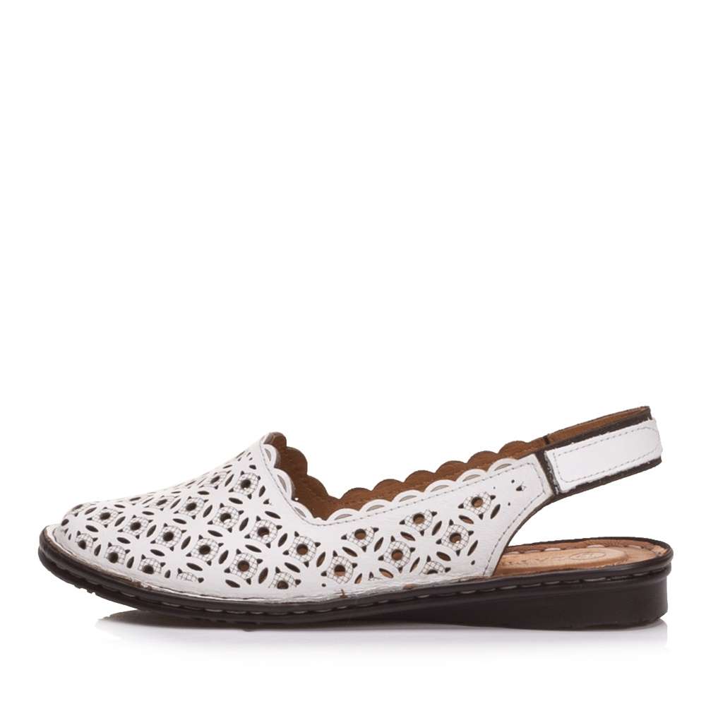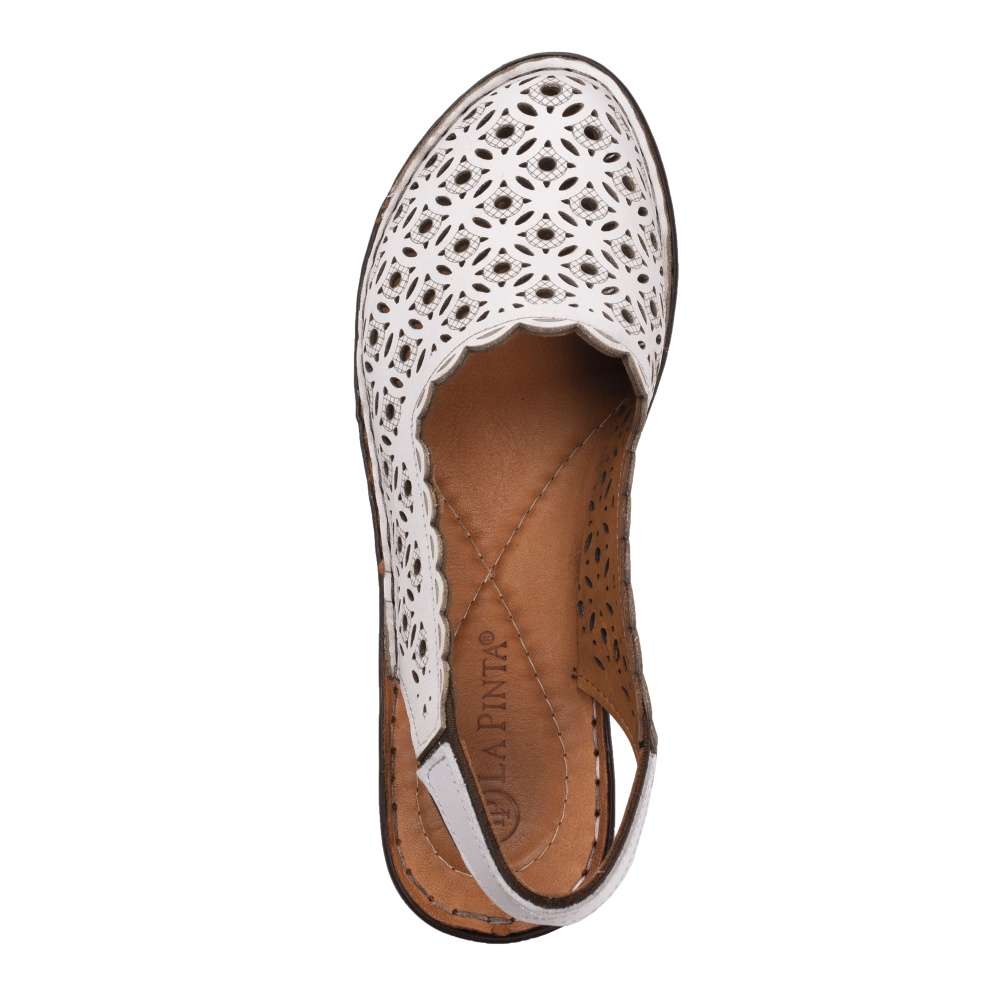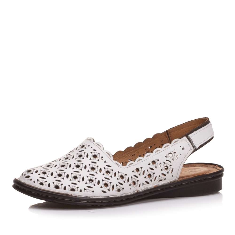Kožený svršek je zdobný designovou perforací, která zajistí potřebnou cirkulaci vzduchu. Pásek kolem paty je pro snadné nazouvání a přizpůsobení obuvi dle požadavků vybaven všitými pružnými gumičkami.