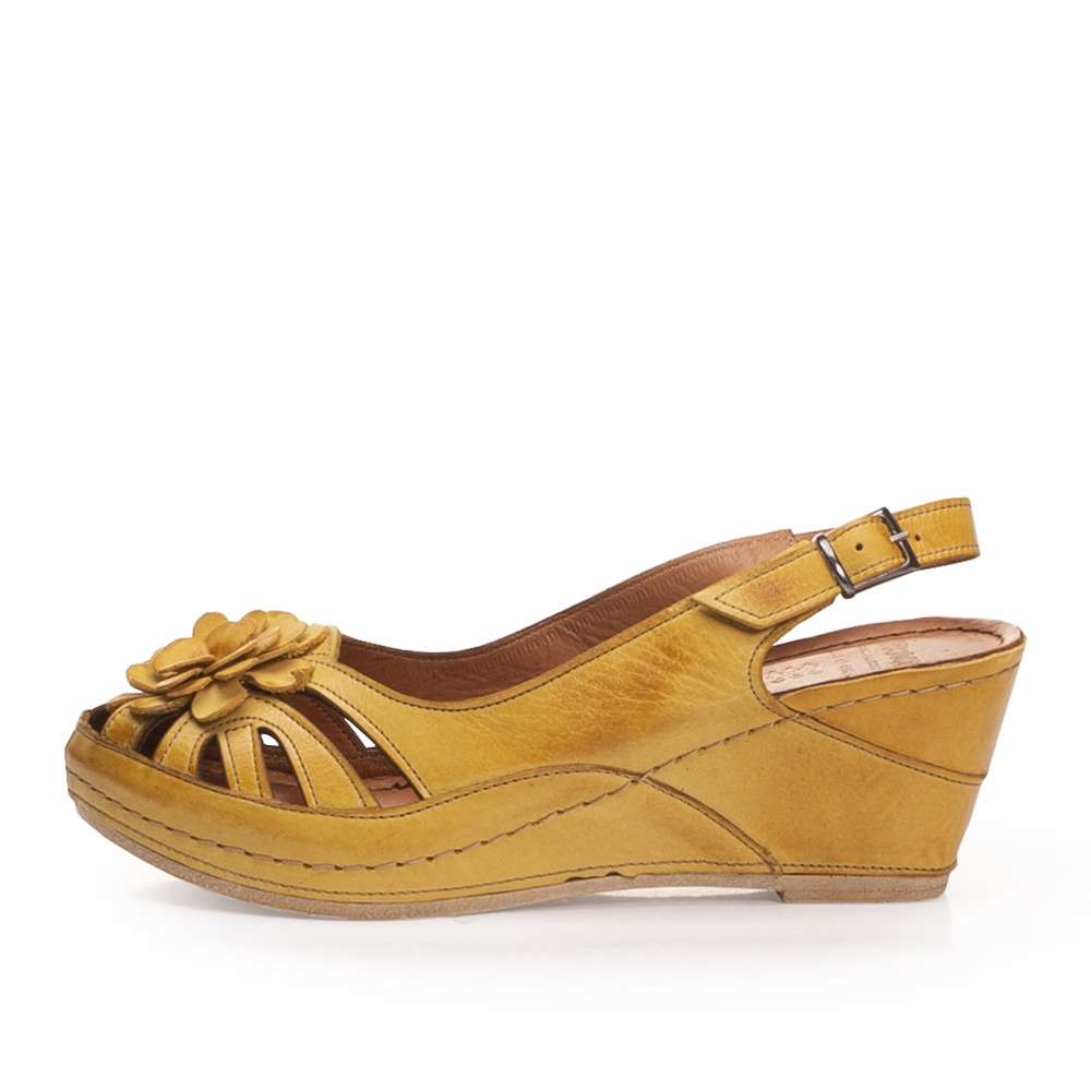 V přední perforované části jsou sandály zdobené květinovou aplikací. Na pásku kolem paty je zapínání, kterým si upravíte obuv přímo k Vaší noze.