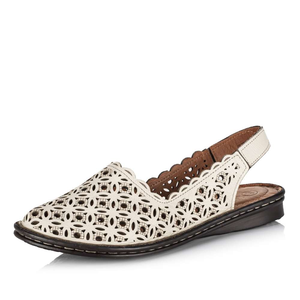 Detailní informace Chtěli byste zaujmout na první pohled? Tak s těmito botami značky IBERIUS se Vám to určitě vydaří. Kožený svršek je zdobný designovou perforací, která zajistí potřebnou cirkulaci vzduchu. Pásek kolem paty je pro snadné nazouvání a přizpůsobení obuvi dle požadavků vybaven všitými pružnými gumičkami. Kožená stélka je pro Vaše pohodlí na každém kroku měkká. Tyto sandálky díky svému vzhledu skvěle doladí Vaše letní outfity.