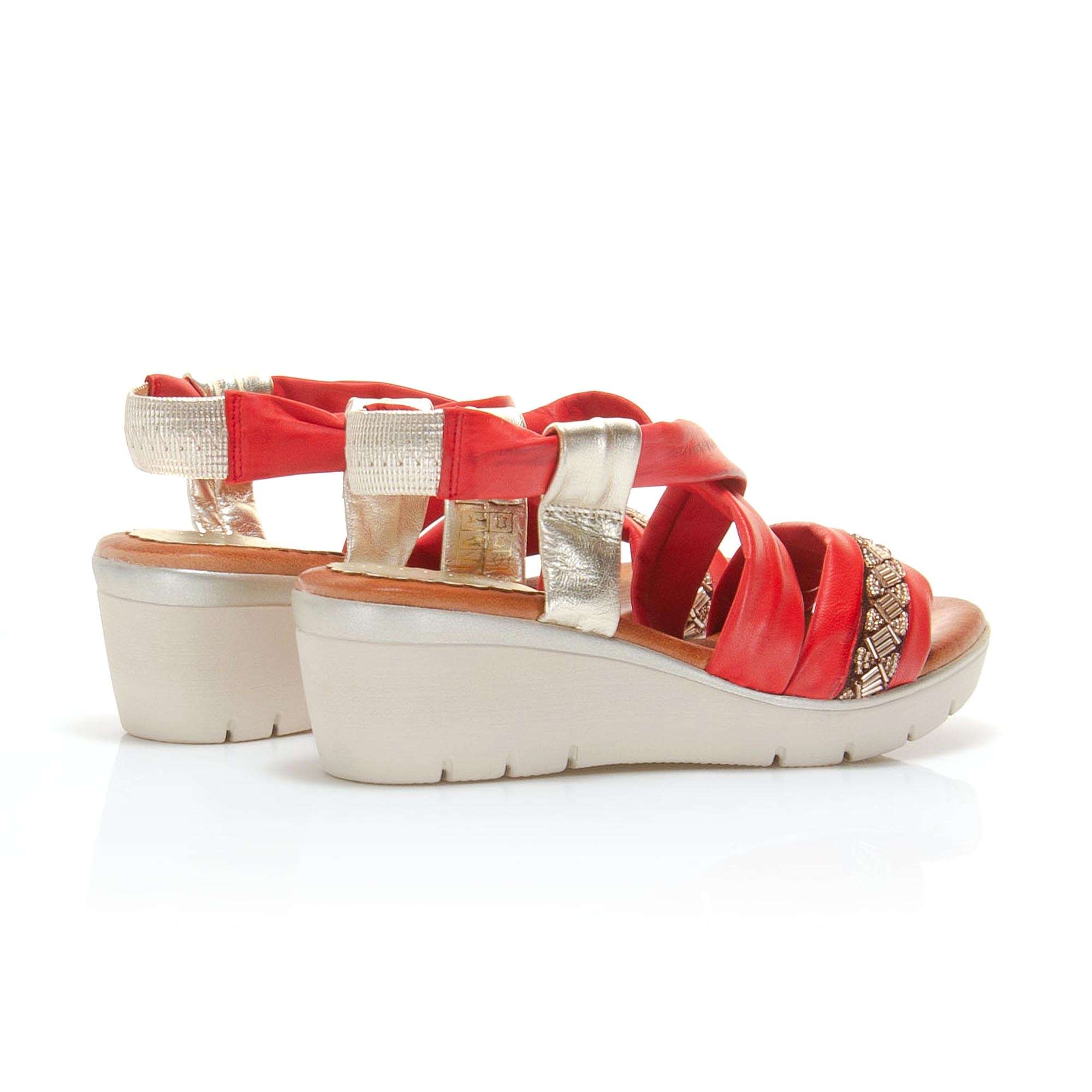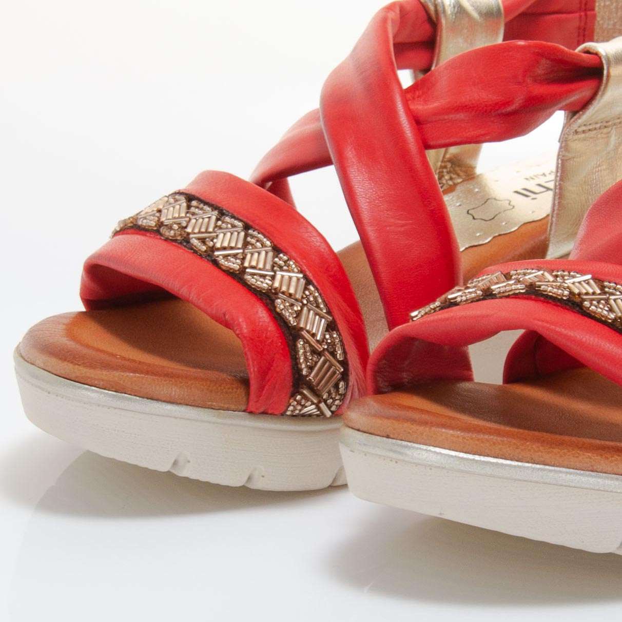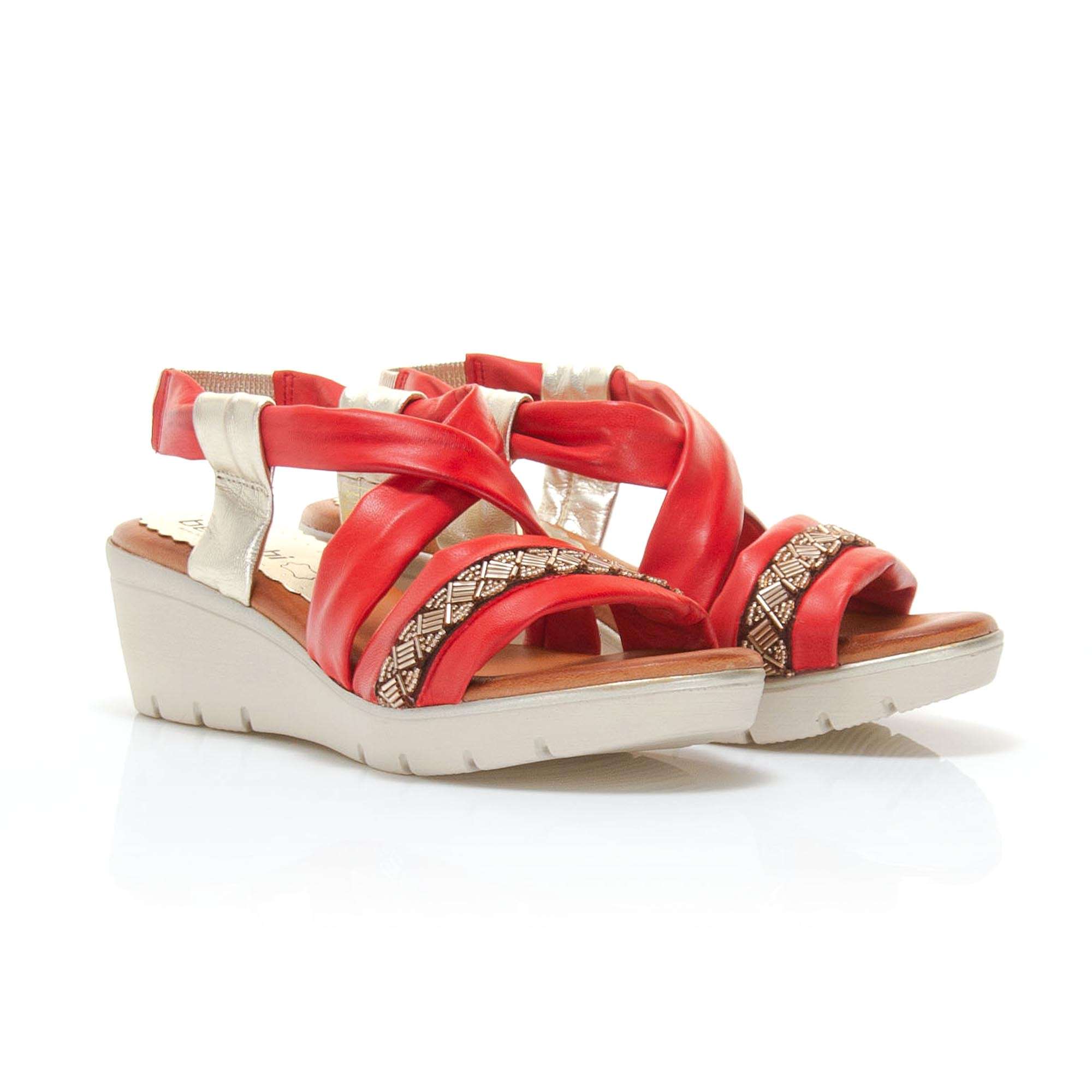 Dámské sandály vyrobené z pravé kůže jsou zdobené korálky v přední části boty i křížením pásků na nártu. V patě je pak vložena pružná gumička pro snadné obutí a dokonalé přizpůsobení přímo k Vaší noze. Tento model nabízíme ve více barevných variantách pro všechny Vaše příležitosti.