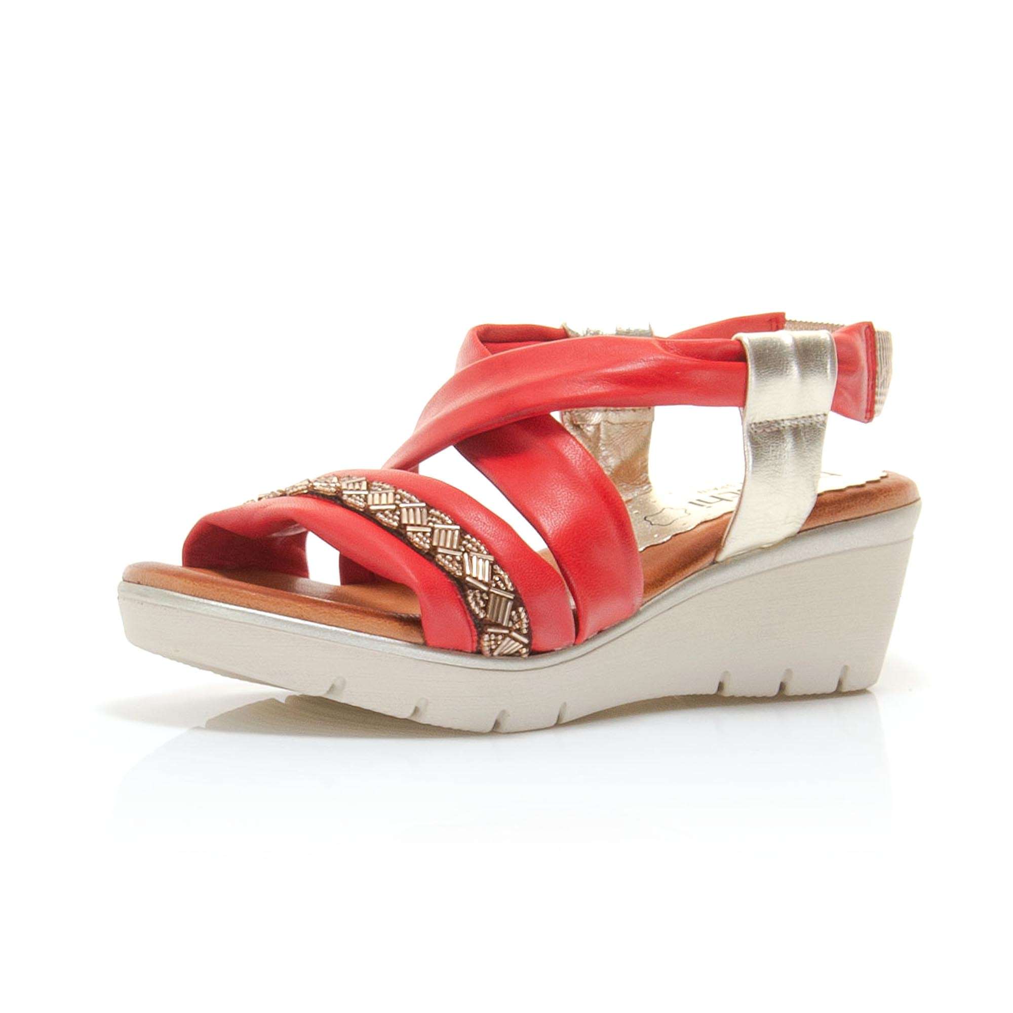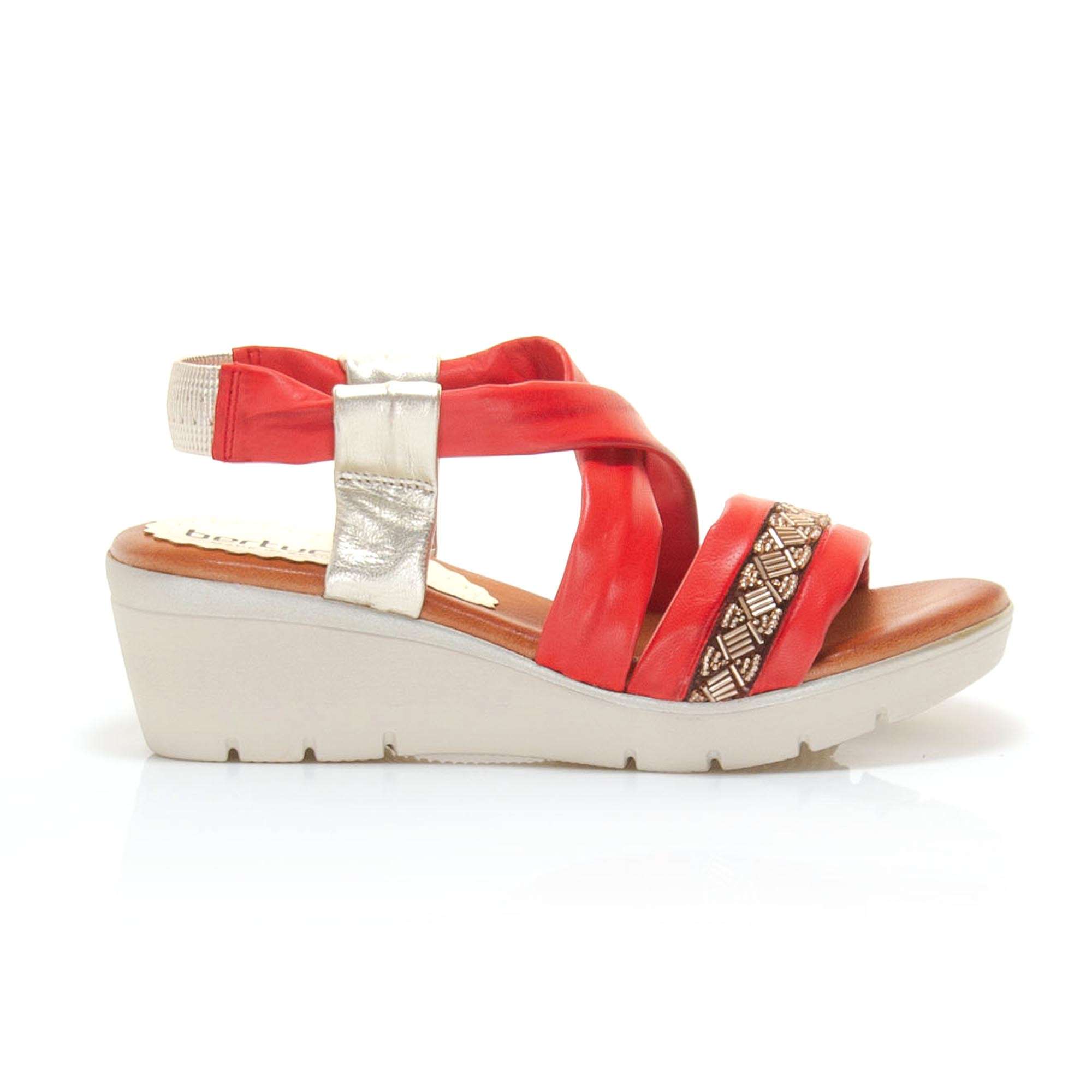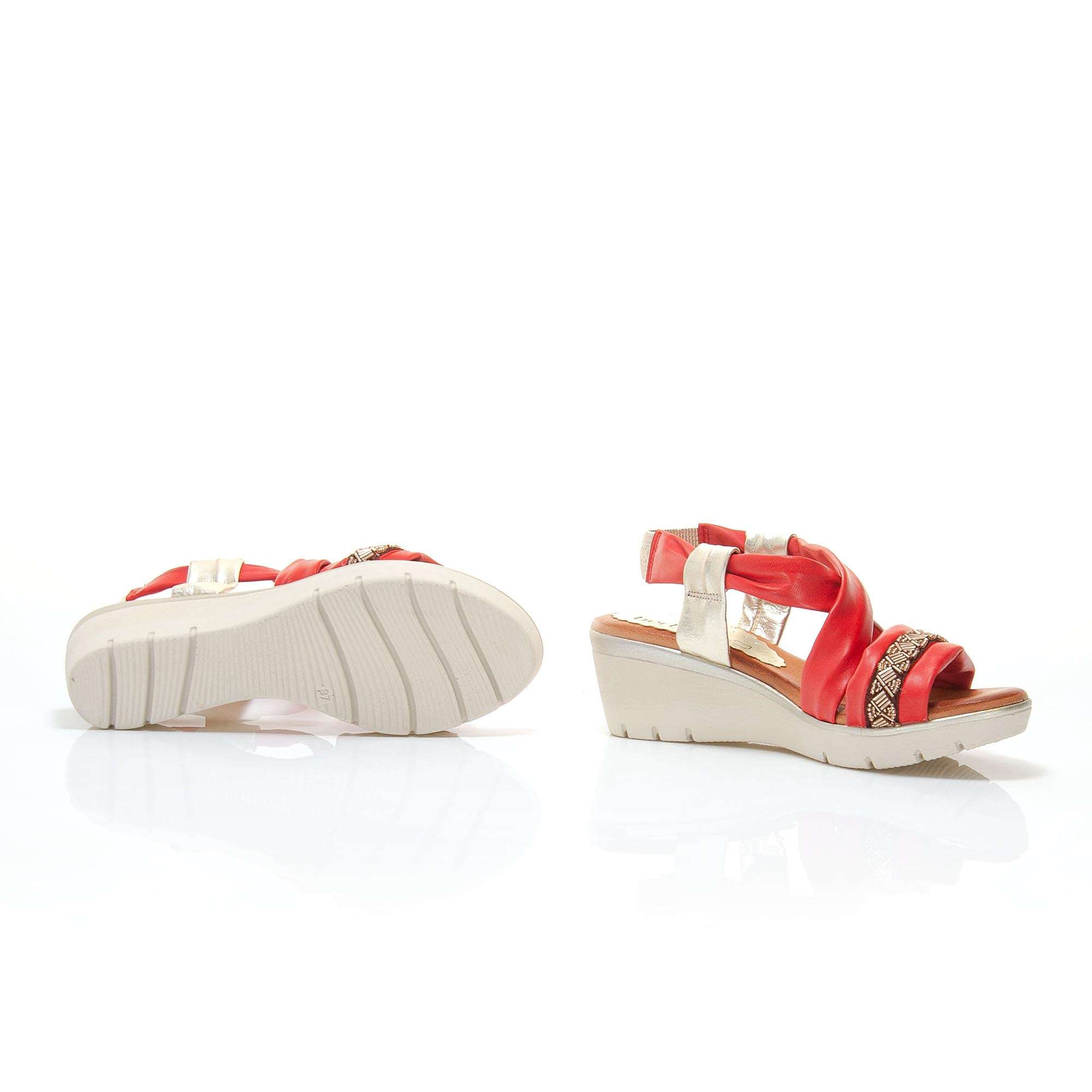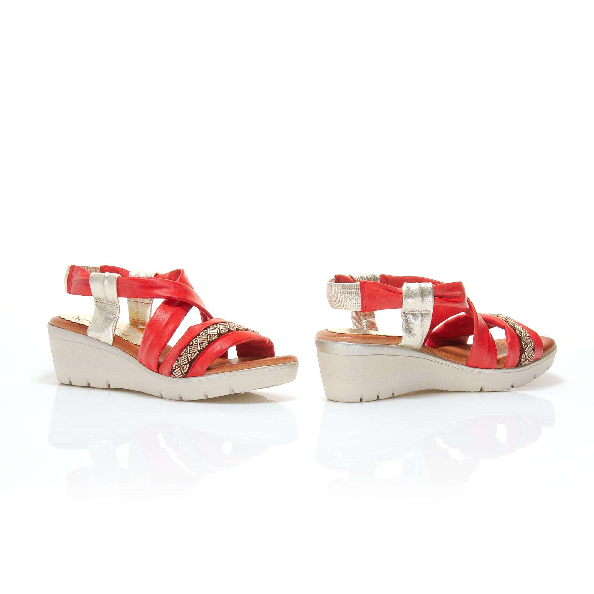 Dámské sandály vyrobené z pravé kůže jsou zdobené korálky v přední části boty i křížením pásků na nártu. V patě je pak vložena pružná gumička pro snadné obutí a dokonalé přizpůsobení přímo k Vaší noze. Tento model nabízíme ve více barevných variantách pro všechny Vaše příležitosti.