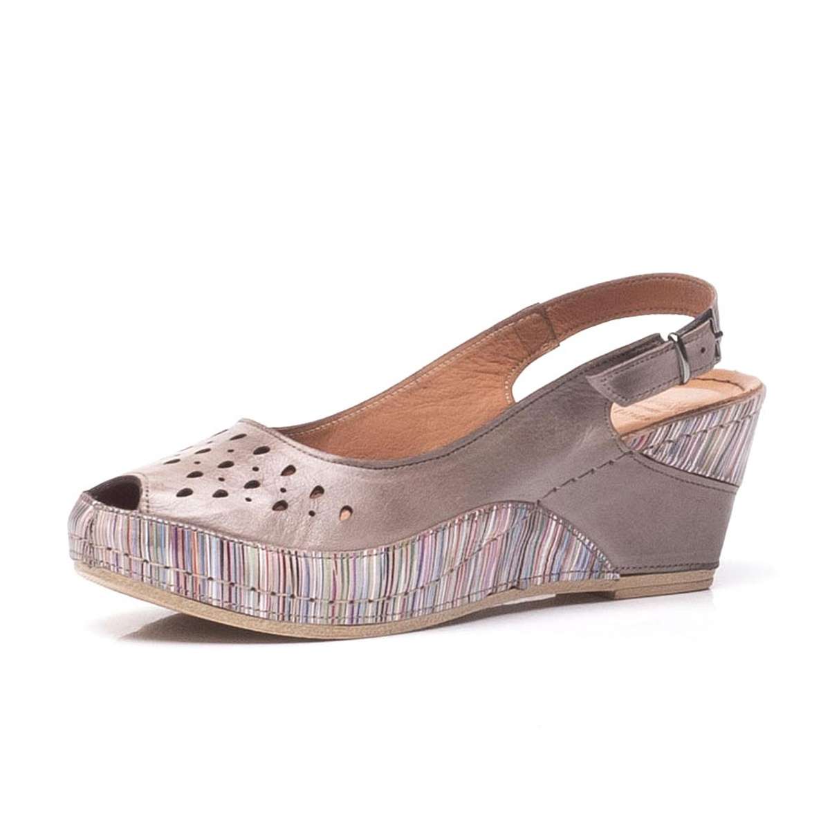 Zajímavé dámské kožené sandály značky IBERIUS, s perforovanou špicí a originálně zakončeným svrškem přes podešvi. Ta je nepřehlédnutelná svým barevným provedením a Vašemu outfitu dodá tu správnou image. Na pásku za patou je sponka, pro úpravu přímo k Vaší noze. Tento model unosíte do práce, města ale i na posezení s přáteli, nikdy Vás nezklame.