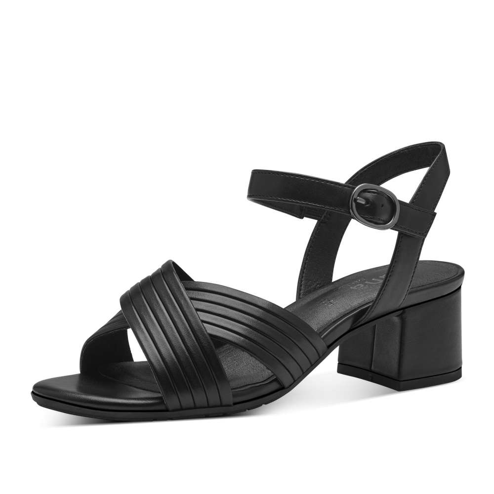 Detailní informace Tyto půvabné sandály od značky JANA zaujmou svým elegantním provedením. Překřížené pásky na nártu nejenom vytvářejí působivý vzhled, ale také zajišťují stabilní a pohodlnou chůzi. Pásek kolem kotníku se suchým zipem vám umožňuje přizpůsobit si sandály pro maximální pohodlí. Pohodlí po celý den zajistí měkká stélka, zatímco vyšší podpatek zvýrazní vaši ženskost. Tyto černé sandály jsou skvělou volbou pro každou z Vás, přinesou vám pohodlí a eleganci do každodenního života.