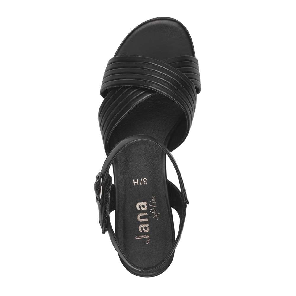 Tyto půvabné sandály od značky JANA zaujmou svým elegantním provedením. Překřížené pásky na nártu nejenom vytvářejí působivý vzhled, ale také zajišťují stabilní a pohodlnou chůzi. Pásek kolem kotníku se suchým zipem vám umožňuje přizpůsobit si sandály pro maximální pohodlí. Pohodlí po celý den zajistí měkká stélka, zatímco vyšší podpatek zvýrazní vaši ženskost. Tyto černé sandály jsou skvělou volbou pro každou z Vás, přinesou vám pohodlí a eleganci do každodenního života. Technologie: SoftLine – boty s touto technologií mají lehké, měkké a současně mimořádně flexibilní podešve, použitím speciálních materiálu a jedinečného složení podešve byl vyvinut nový druh flexibility.