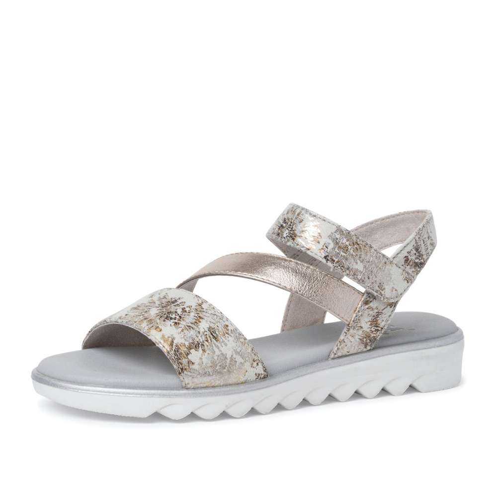 Detailní informace Tyto krásné sandálky od značky Jana představují pohodlnou a zároveň elegantní obuv na každodenní nošení. Tři pásky na nártu a jeden v oblasti kotníku Vaši nožku dokonale obepnou a ozdobí díky vzoru a lesklým odleskům. Uzavírání na suchý zip Vám usnadní a urychlí obouvání. Tyto sandály jednoduše zkombinujte s Vašimi letními outfity a skvěle budou vypadat třeba i s delší sukní.