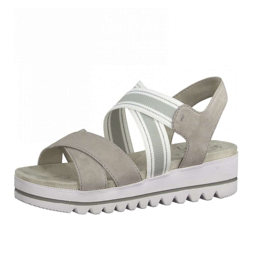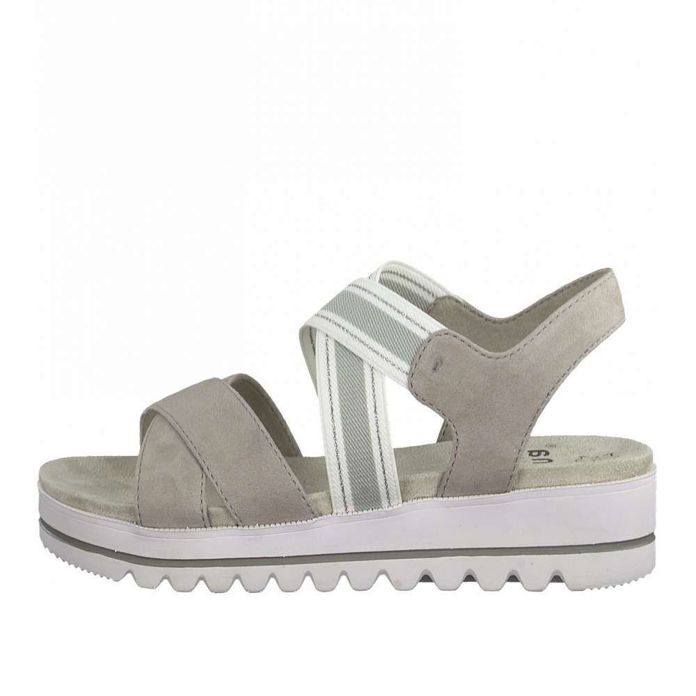 Svršek je vyroben v kombinaci šedých kožených a pružných gumičkových pásků, které Vám usnadní nejen nazouvání, ale i díky nim Vám sandálek bude skvěle sedět na noze.