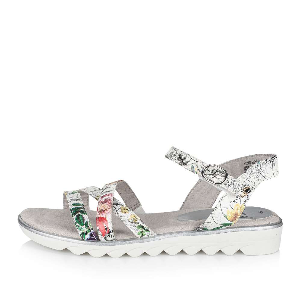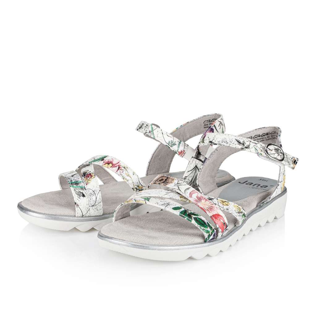 Dámské decentní sandálky značky JANA rozhodně musíte mít. Tento pohodlný model je tvořen několika pásky a řemínkem kolem kotníku, pomocí kterého si obuv skvěle přizpůsobíte dle svých potřeb. Měkká stélka a pohodlná nízká podešev zajistí komfort na každém kroku. S těmito botkami sladíte nejeden letní outfit do města i na posezení s přáteli.