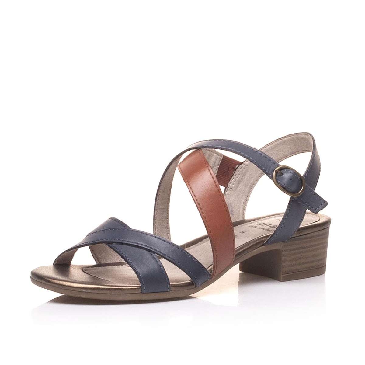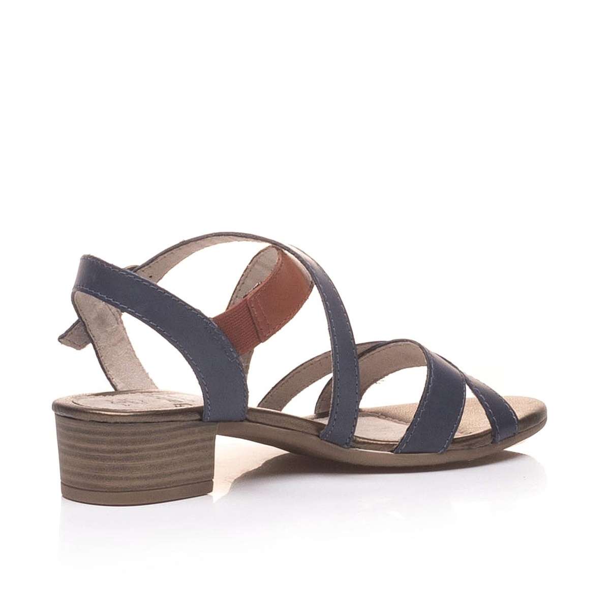 U těchto dámských sandálů značky JANA, určitě oceníte, že jsou kožené. Modrá, bronzová a hnědá barva tvoří stylový harmonický celek. Mají otevřenou špičku a patu, kterou obepíná decentní nastavitelný pásek. Všité pružení na bočních stranách vám zpříjemní obouvání i samotné nošení. Stélka je po celý den příjemně měkká, zajistí Vám maximální pohodlí po celý den. Podešev má jemný vzorek a s širším podpatkem vysokým cca 4 cm budete mít jistější krok. Objevte jeden z modelů módních trendů, které podtrhnou vaši jedinečnost.