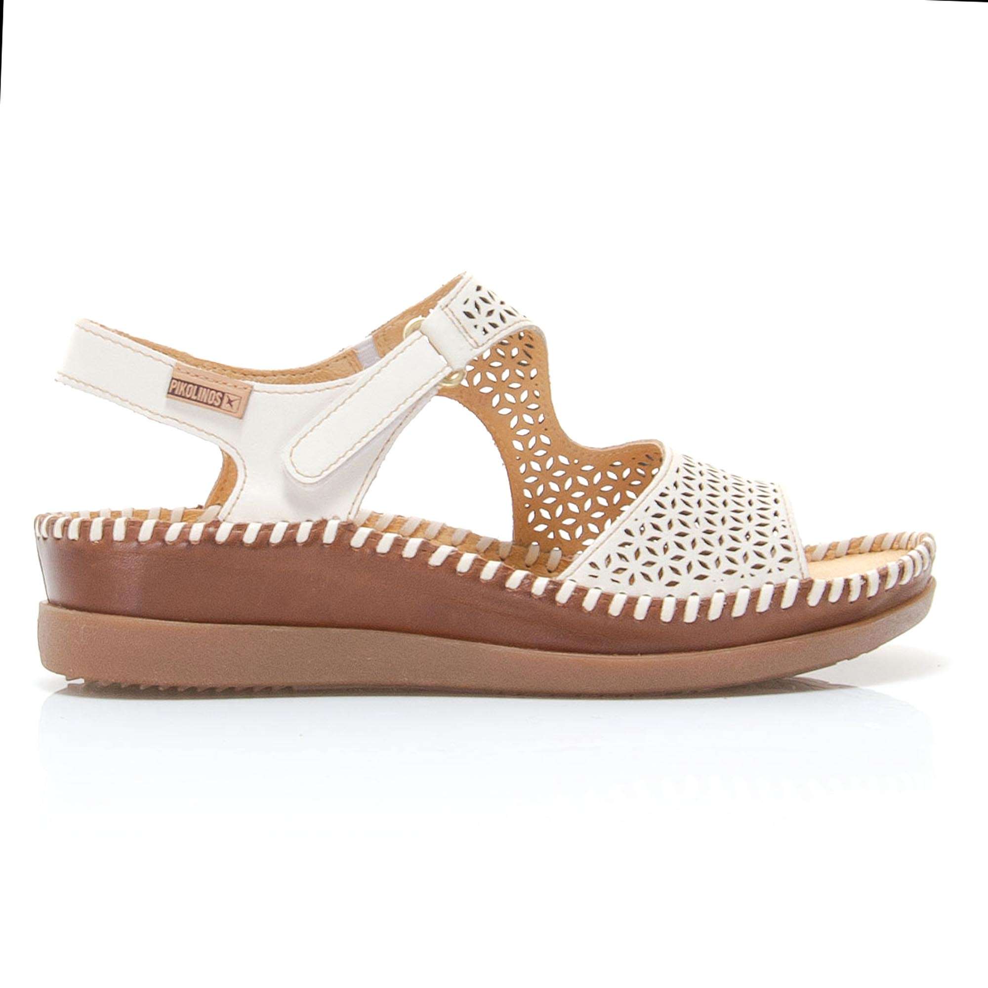 Dámský sandál značky PIKOLINOS je vyroben z pravé kůže. Přední pásek je s páskem kolem kotníku elegantně spojen a po celém povrchu perforován. Pro snadné nazouvání pak slouží pásek na suchý zip a pružná gumička na vnitřní straně obuvi. Tento elegantní a velmi pohodlný sandál nabízíme hned ve dvou barvách.