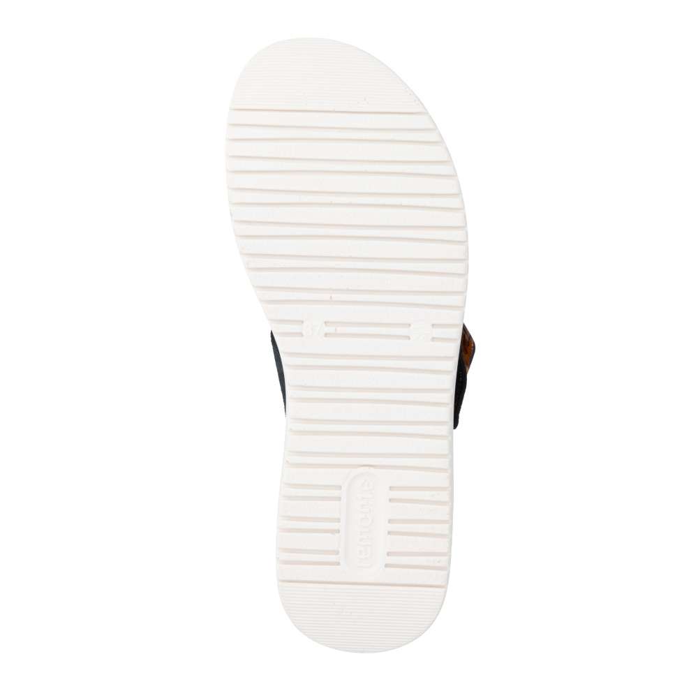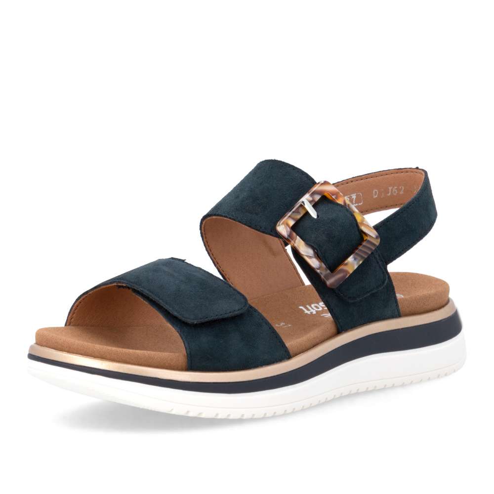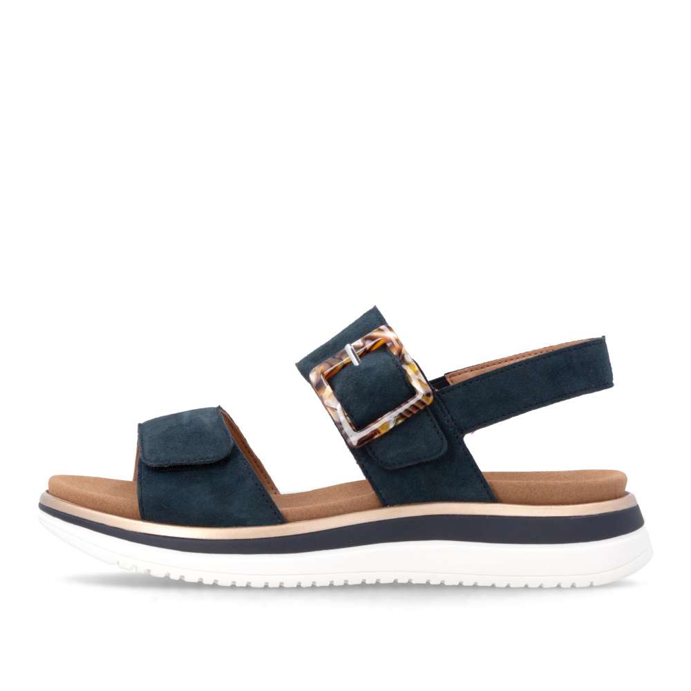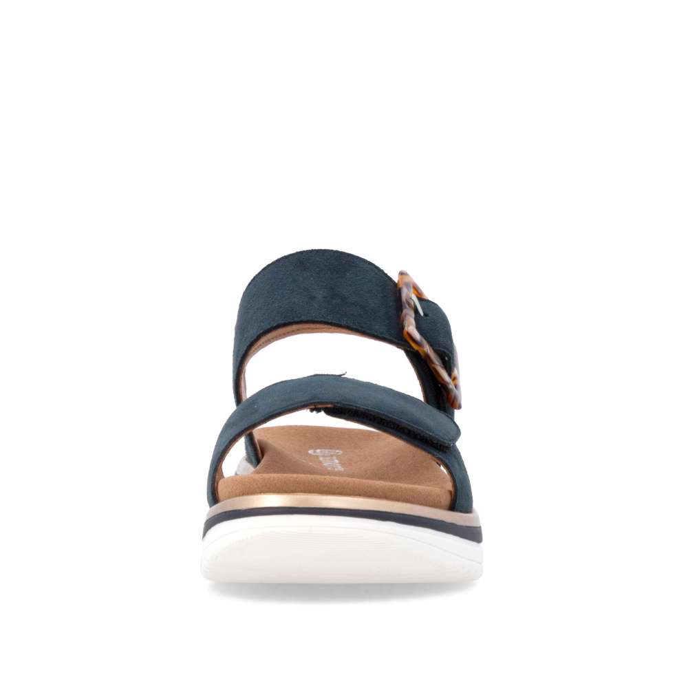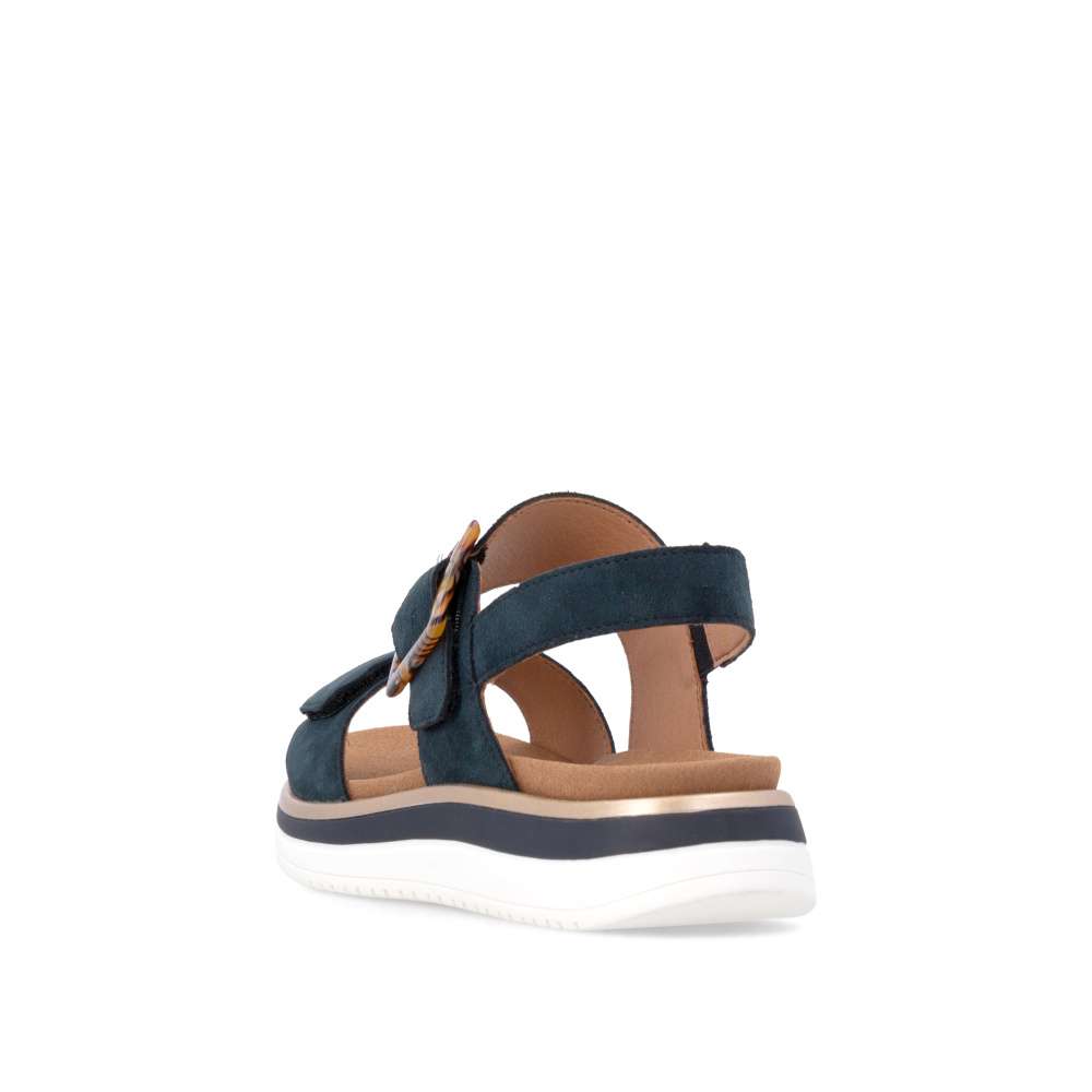Obuv REMONTE představuje prémiovou řadu značky RIEKER, která se vyznačuje vysokou kvalitou použitých materiálů a precizním zpracováním. Tyto sandály RIEKER zaujmou již na první pohled svým stylovým designem a následně poskytovaným výjimečným komfortem, který oceníte při každém kroku. Tmavě modrý kožený svršek působí elegantně a nadčasově, díky čemuž sandály snadno zkombinujete s různými letními outfity. Jedinečným detailem, který okamžitě upoutá pozornost, je výrazná spona na pásku u kotníku, která dodává obuvi osobitý charakter. Oba pásky jsou vybaveny praktickým suchým zipem, který umožňuje rychlé a pohodlné obouvání, a zároveň zajišťuje optimální přizpůsobení noze. Díky tomu se sandály příjemně přizpůsobí tvaru chodidla a nabídnou maximální pohodlí při celodenním nošení. Vyjímatelná textilní stélka poskytuje nejen komfort při každém došlapu, ale také mimořádnou praktičnost. Možnost snadného vyjmutí a očištění zajišťuje, že obuv zůstává svěží, hygienická a připravená k dalšímu nošení – což oceníte zejména v horkých letních dnech. Vyšší podešev s atraktivním, moderním designem dodává sandálům stabilitu a příjemné tlumení, přičemž esteticky zvýrazňuje jejich elegantní vzhled. Tyto sandály RIEKER představují dokonale vyváženou kombinaci esteticky přitažlivého designu, promyšlených praktických detailů a vysoké úrovně pohodlí. Jsou ideální volbou pro každodenní nošení, volnočasové aktivity io něco elegantnější příležitosti, kde se chcete cítit stylově a zároveň pohodlně.