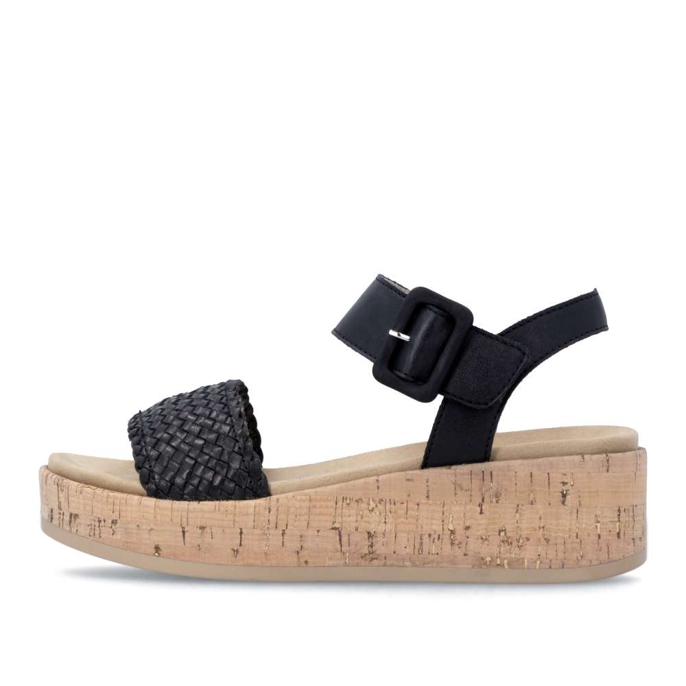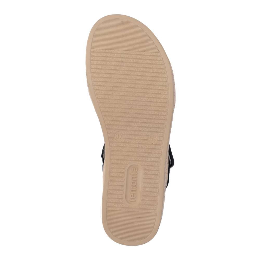 Obuv REMONTE představuje prémiovou řadu značky RIEKER, která se vyznačuje vysokou kvalitou použitých materiálů a precizním zpracováním. Tyto sandály RIEKER přinášejí dokonalou kombinaci moderního designu, pohodlí a nadčasového stylu, který okamžitě zaujme svojí vizuální přitažlivostí. Atraktivní vzhled je výsledkem pečlivě propracované kombinace hladkého materiálu a materiálu se strukturovaným vzorem proplétání, která dodává obuvi sofistikovaný vizuální efekt. Oba pásky jsou vybaveny praktickými suchými zipy, které usnadňují obouvání a umožňují přesné přizpůsobení noze podle individuálních potřeb. Pásek u kotníku je navíc doplněn sponou, která působí jako stylový akcent. Vyšší podešev s originálním designem poskytuje jistotu a stabilitu při chůzi, přičemž její módní kontrast vizuálně zvýrazňuje celý model a dodává sandálům nezaměnitelný charakter. Vyjímatelná a tvarovaná stélka přináší příjemný pocit při každém kroku, podporuje správné držení chodidla a výrazně zvyšuje pohodlí při dlouhodobém nošení. Tyto sandály RIEKER jsou ideální volbou pro letní dny, volnočasové aktivity, procházky po městě či elegantnější příležitosti.