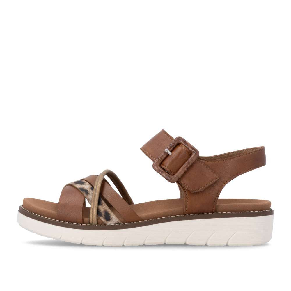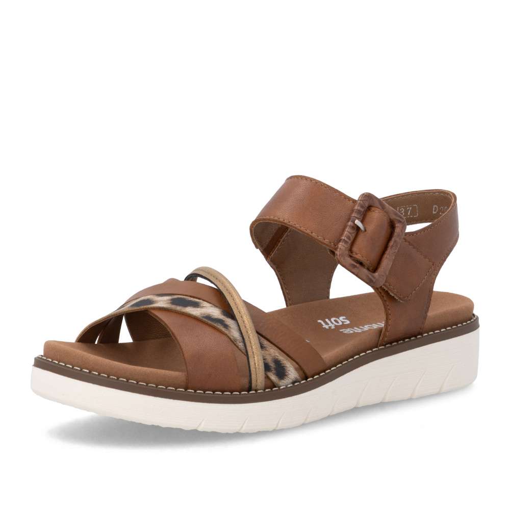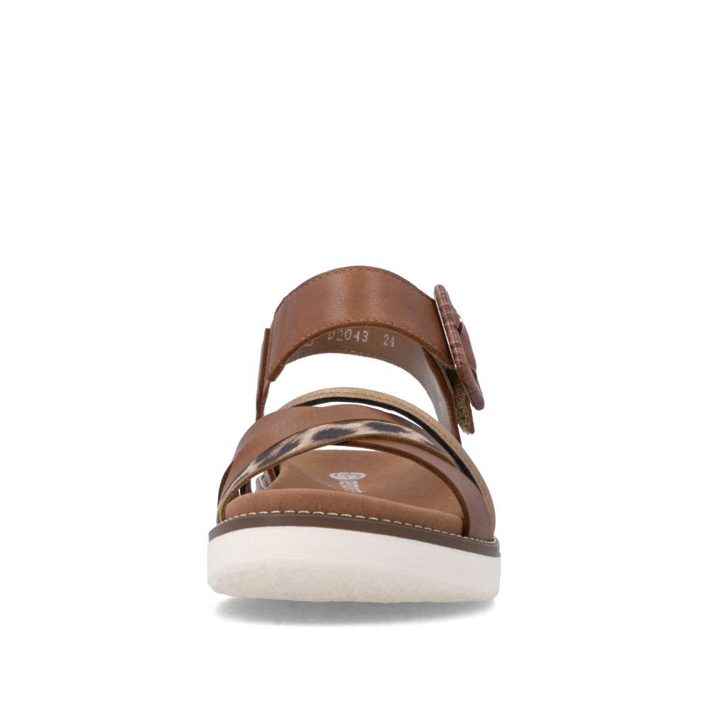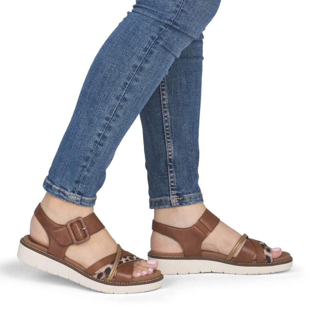 Obuv REMONTE představuje prémiovou řadu značky RIEKER, která se vyznačuje vysokou kvalitou použitých materiálů a precizním zpracováním. Tyto sandály jsou ukázkou toho, jak lze spojit výrazný design s mimořádně pohodlným zpracováním. Pásky svršku jsou elegantně poskládány do atraktivní barevné kombinace, která dodává modelu moderní vzhled a působivým prvkem je i spona umístěna u kotníku. Pro snadné a pohodlné zapínání je pásek kolem kotníku opatřen praktickým suchým zipem, díky kterému si obuv snadno přizpůsobíte přesně podle svých potřeb. Vnitřní textilní stélka příjemně kopíruje tvar chodidla a stabilní podešev poskytuje jistotu při každém kroku, zároveň podtrhuje stylový vzhled sandálů. Tyto sandály jsou stvořeny pro letní dny, kdy toužíte po půvabném vzhledu a zároveň po dokonalém pohodlí, na které se můžete spolehnout.