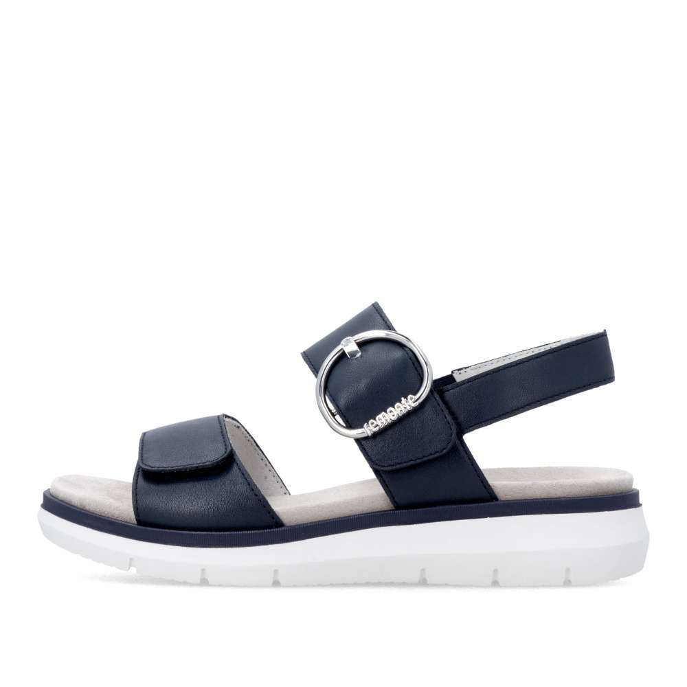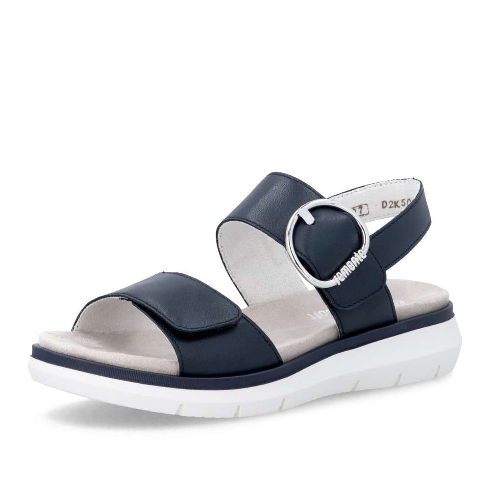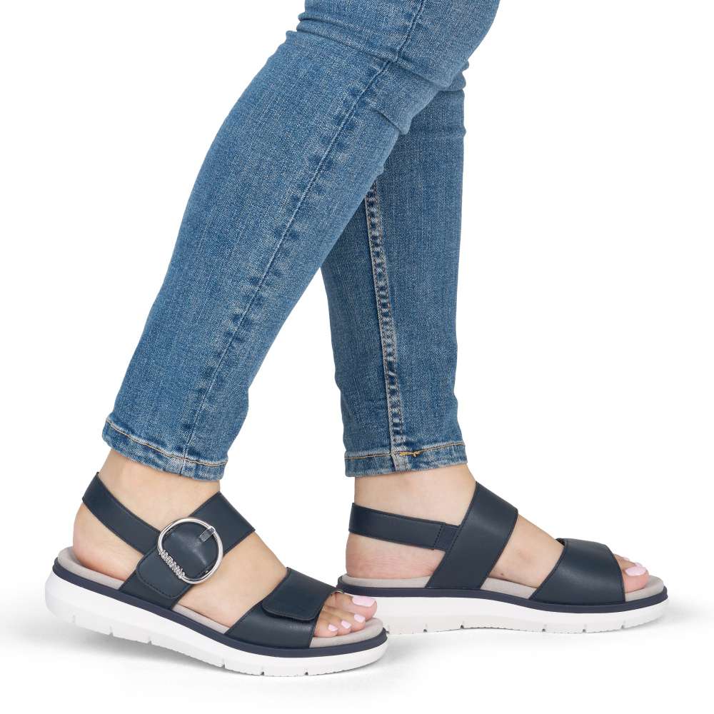 Obuv REMONTE představuje prémiovou řadu značky RIEKER, která se vyznačuje vysokou kvalitou použitých materiálů a precizním zpracováním. Tyto sandály v tmavě modré kožené variantě představují dokonalou kombinaci nadčasového stylu a maximálního komfortu při nošení. Pásky jsou pečlivě navrženy s důrazem na funkčnost i estetiku – opatřeny praktickými suchými zipy, které umožňují rychlé obouvání a snadné přizpůsobení obuvi tvaru chodidla. Výrazná spona umístěná u kotníku působí jako stylový detail, který okamžitě upoutá pozornost a dodává sandálům jedinečný charakter. Textilní stélka je pro dokonalý komfort vyjímatelná a podešev zajišťuje přirozený pohyb chodidla, zatímco pevnost a stabilita podešve poskytuje jistotu při chůzi. Promyšlené detaily, kvalitní materiály a sofistikovaný design dělají z tohoto modelu univerzální a nezaměnitelný doplněk vhodný pro každodenní nošení, volnočasové aktivity, letní procházky či elegantnější příležitosti.