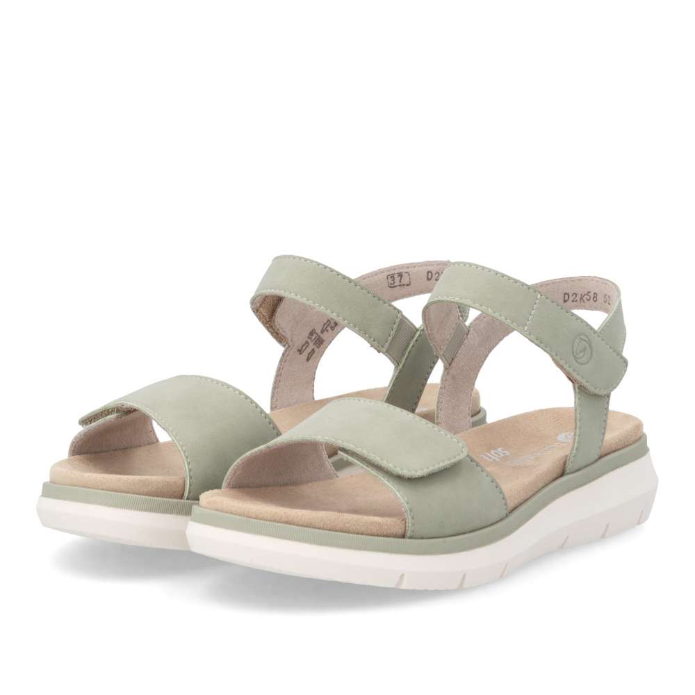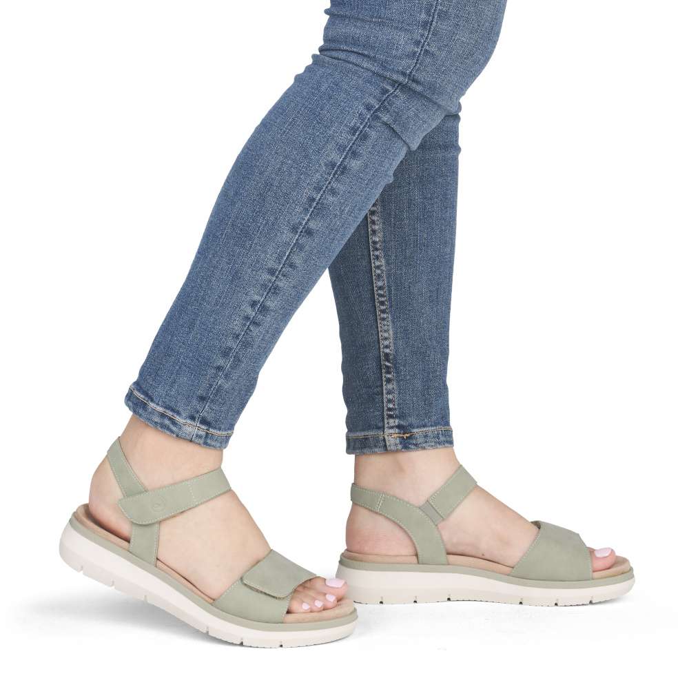 Obuv REMONTE představuje prémiovou řadu značky RIEKER, která se vyznačuje vysokou kvalitou použitých materiálů a precizním zpracováním. Tyto kožené sandály RIEKER v nadčasovém provedení představují dokonalou kombinaci stylu, komfortu a precizního zpracování. Zelený odstín dodává sandálům svěží vzhled, který snadno doplní jakýkoli outfit – od ležérních letních šatů až po elegantnější kalhoty. Pásky sandálů jsou nastavitelné díky praktickým suchým zipům, které zajišťují snadné obouvání a zároveň umožňují přesné přizpůsobení obuvi individuálnímu tvaru chodidla. Textilní stélka podporuje přirozený pohyb chodidla a přispívá k celodenní pohodě při nošení, její praktická vyjímatelnost umožňuje snadné čištění. Stabilní podešev sandálů zaručuje optimální podporu a flexibilitu, zároveň vytváří vizuálně harmonický kontrast se svrškem. Nadčasový styl, lehkost a vysoká funkčnost těchto sandálů zajišťují, že si je zamilujete nejen pro jejich estetiku, ale také pro praktické vlastnosti, které ocení každá moderní žena.