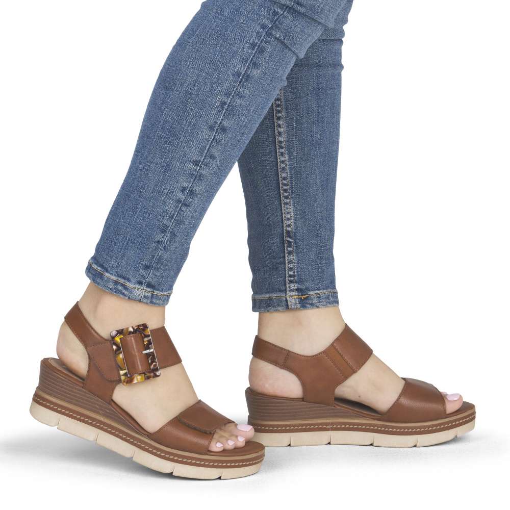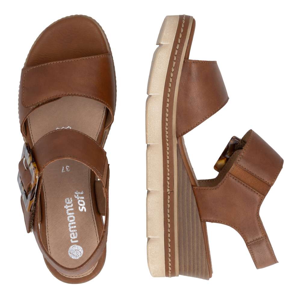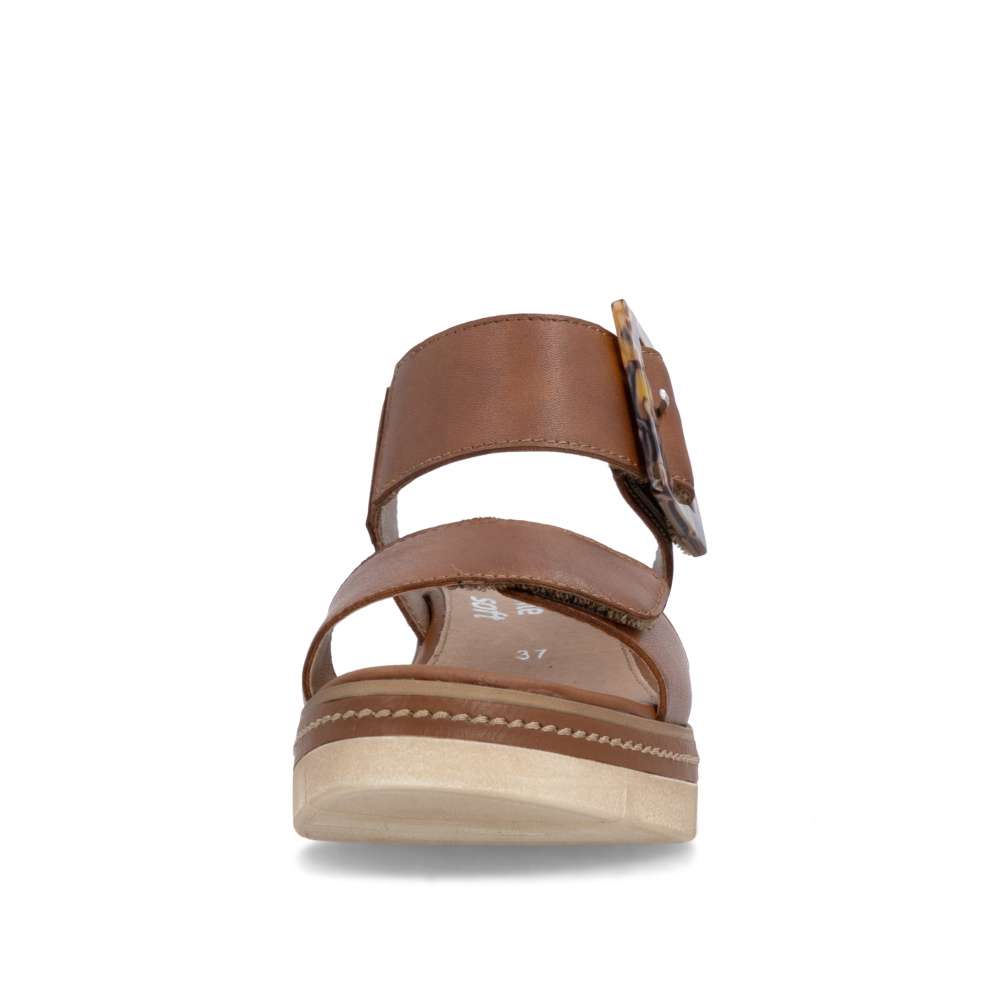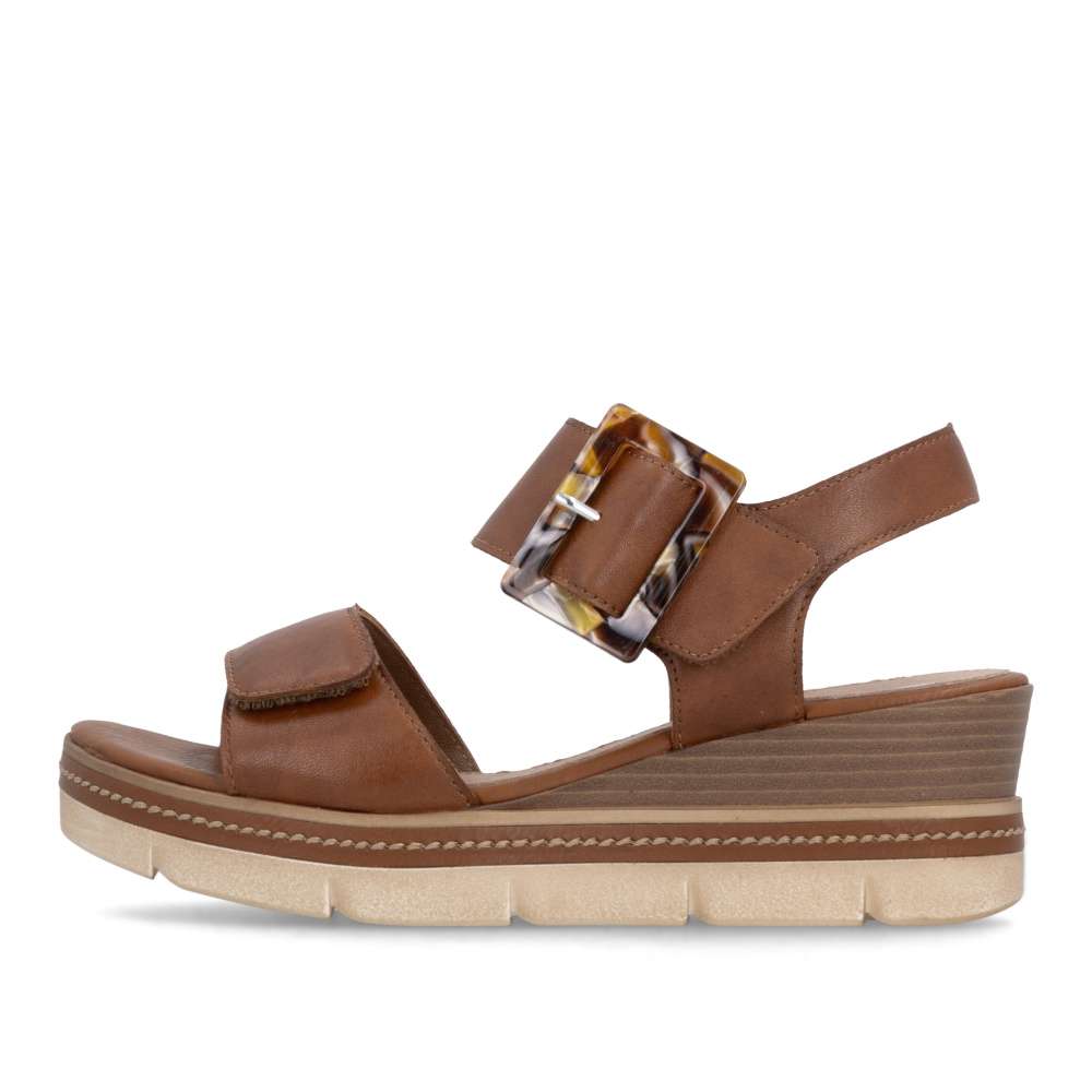 Obuv REMONTE představuje prémiovou řadu značky RIEKER, která se vyznačuje vysokou kvalitou použitých materiálů a precizním zpracováním. Tyto sandály v hnědé kožené variantě představují dokonalou kombinaci nadčasového stylu a maximálního komfortu při nošení. Pásky jsou pečlivě navrženy s důrazem na funkčnost i estetiku – opatřeny praktickými suchými zipy, které umožňují rychlé nazouvání a snadné přizpůsobení obuvi tvaru chodidla, čímž se zaručuje stabilita a komfort během celého dne. Výrazná spona umístěná u kotníku působí jako stylový detail, který okamžitě upoutá pozornost a dodává sandálům jedinečný charakter. Kožená stélka poskytuje měkký a příjemný kontakt s chodidlem, čímž zajišťuje pohodlí i při celodenním nošení. Dokonalý komfort při chůzi poskytne stabilní podešev, která svým atraktivním provedením s jemnými detaily podtrhuje charakter sandálů a činí z nich stylový doplněk k jakémukoli letnímu outfitu.