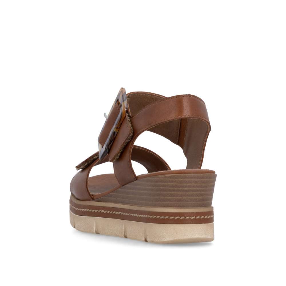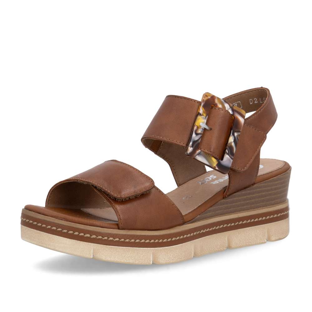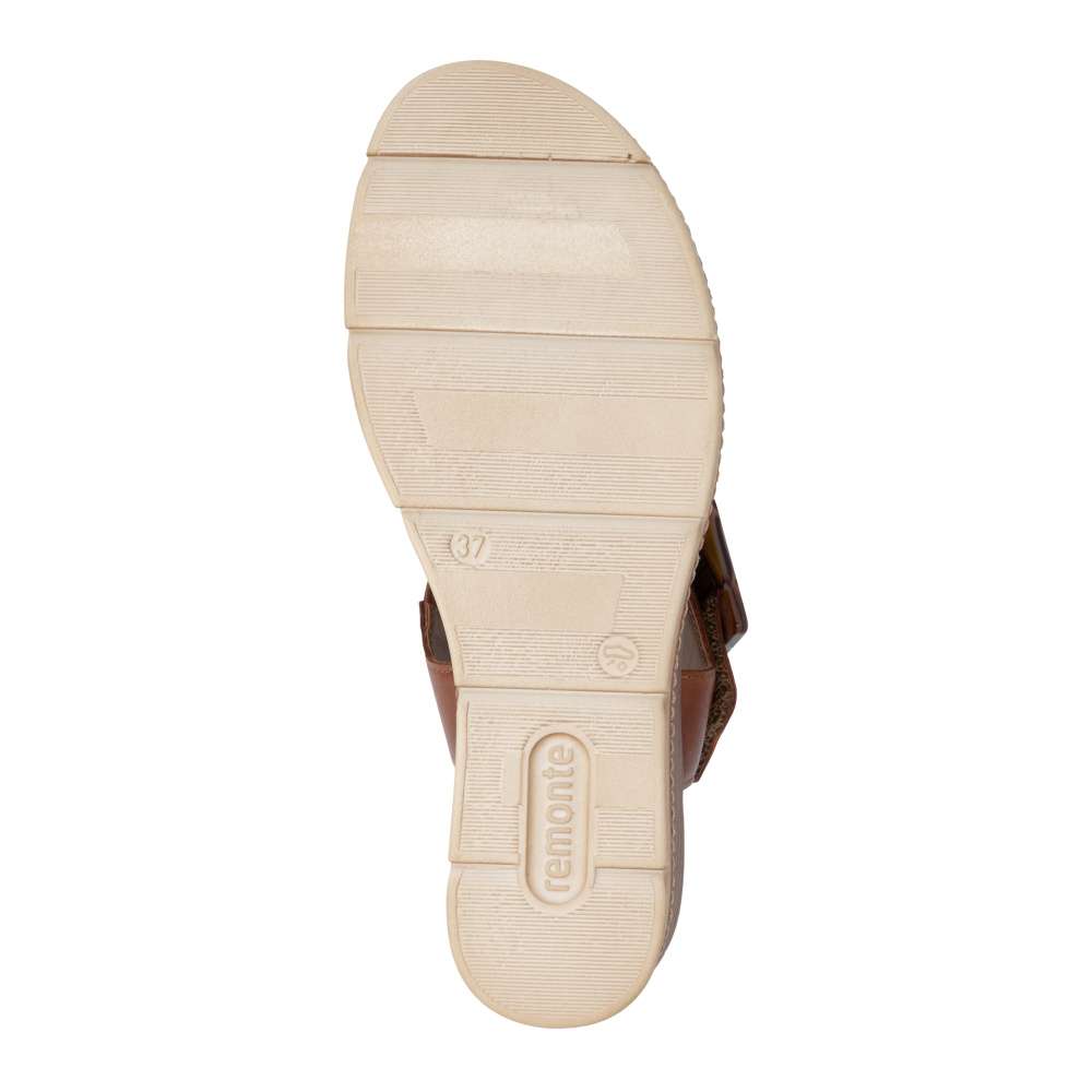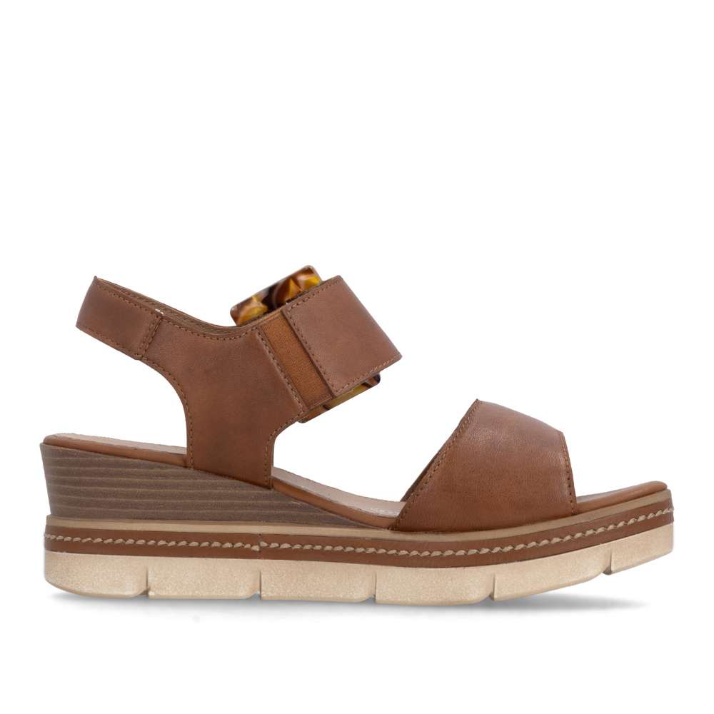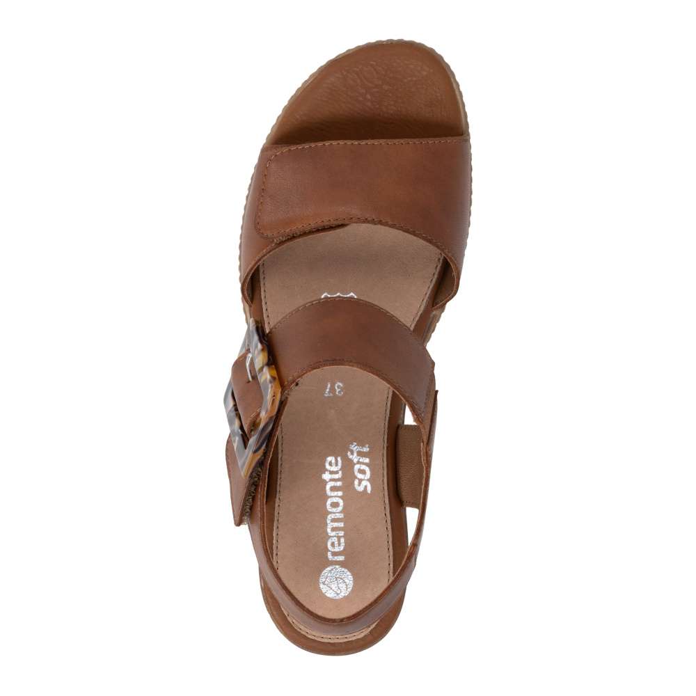 Obuv REMONTE představuje prémiovou řadu značky RIEKER, která se vyznačuje vysokou kvalitou použitých materiálů a precizním zpracováním. Tyto sandály v hnědé kožené variantě představují dokonalou kombinaci nadčasového stylu a maximálního komfortu při nošení. Pásky jsou pečlivě navrženy s důrazem na funkčnost i estetiku – opatřeny praktickými suchými zipy, které umožňují rychlé nazouvání a snadné přizpůsobení obuvi tvaru chodidla, čímž se zaručuje stabilita a komfort během celého dne. Výrazná spona umístěná u kotníku působí jako stylový detail, který okamžitě upoutá pozornost a dodává sandálům jedinečný charakter. Kožená stélka poskytuje měkký a příjemný kontakt s chodidlem, čímž zajišťuje pohodlí i při celodenním nošení. Dokonalý komfort při chůzi poskytne stabilní podešev, která svým atraktivním provedením s jemnými detaily podtrhuje charakter sandálů a činí z nich stylový doplněk k jakémukoli letnímu outfitu.